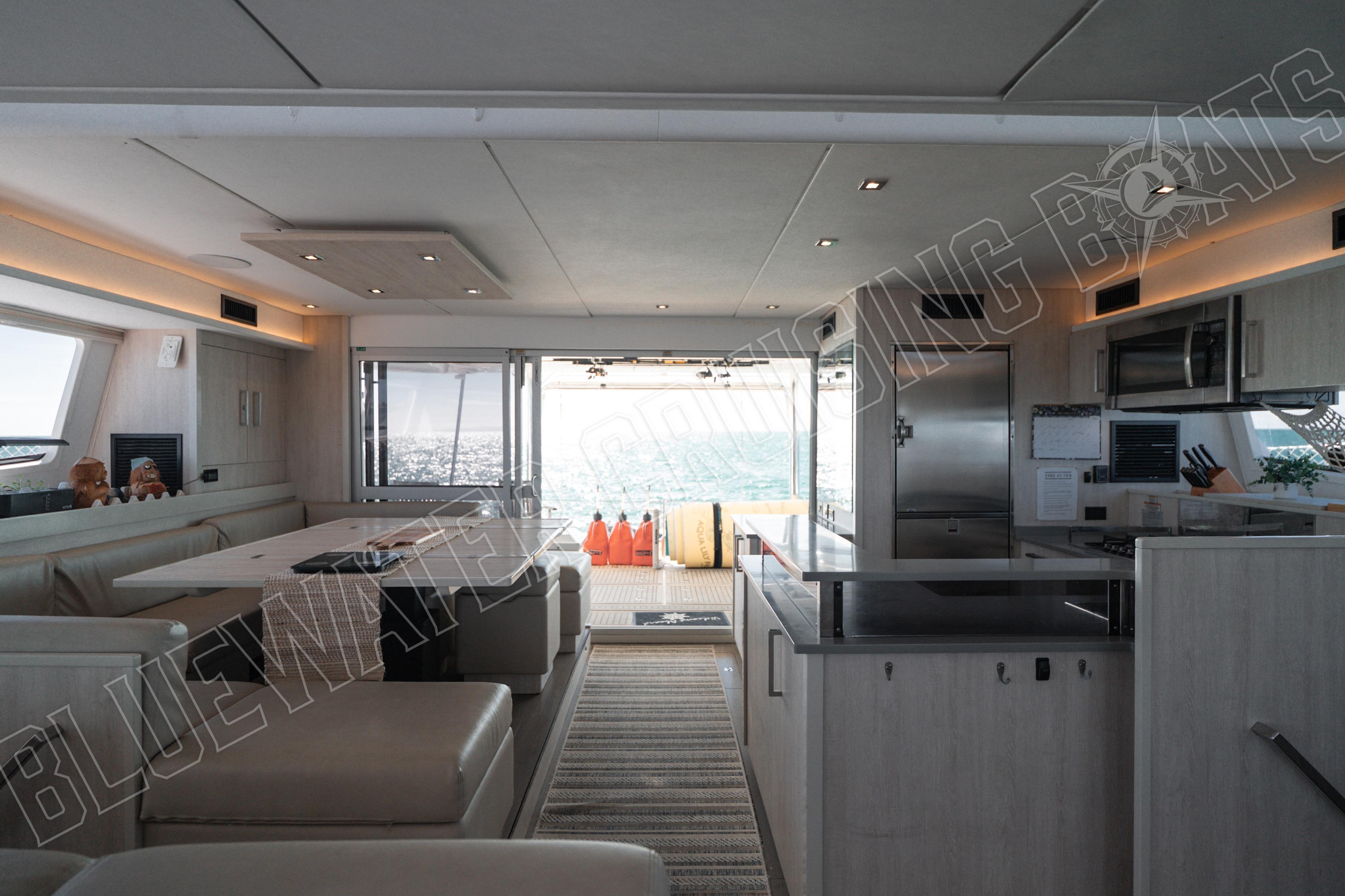 The heart of every sailing vessel, where the family goes to plan, to relax, and to enjoy each other’s company. Sea Dog’s Saloon has wraparound windows for natural lighting, an open galley that connects with the saloon, and a large sliding door that effortlessly connects the cockpit with the saloon itself.