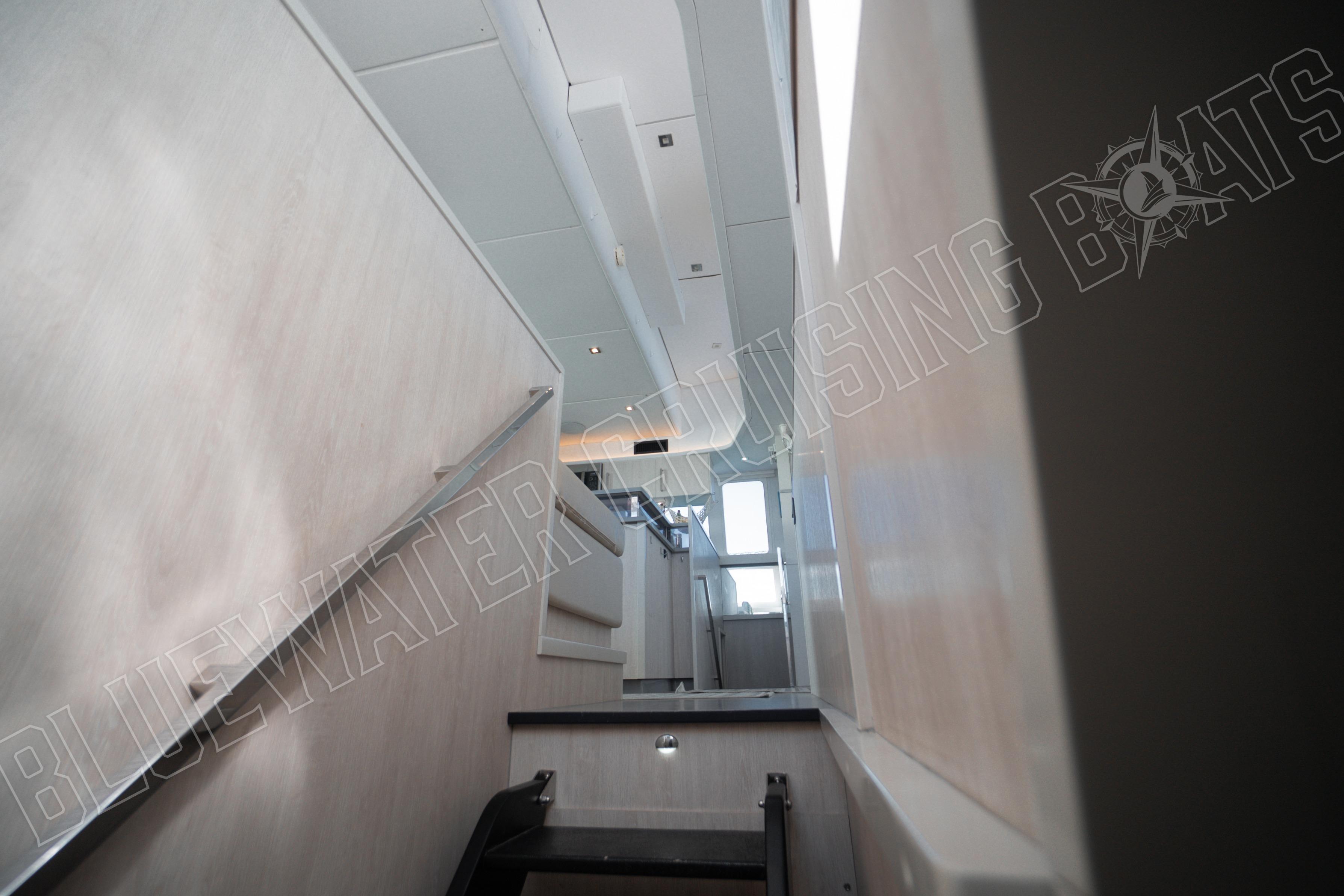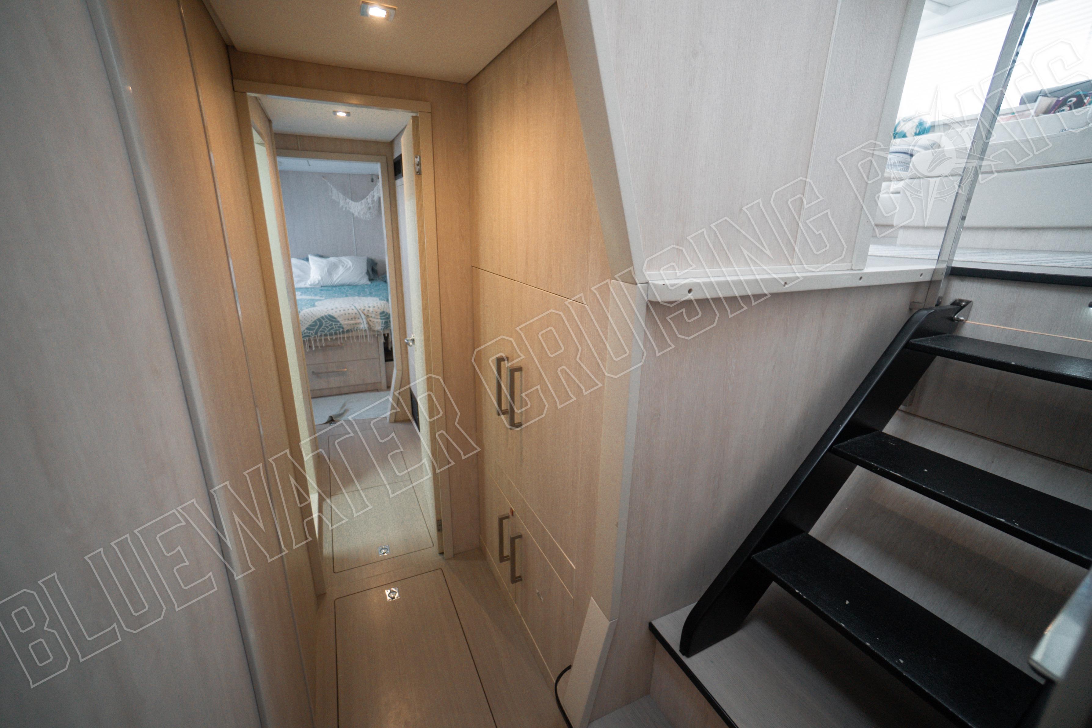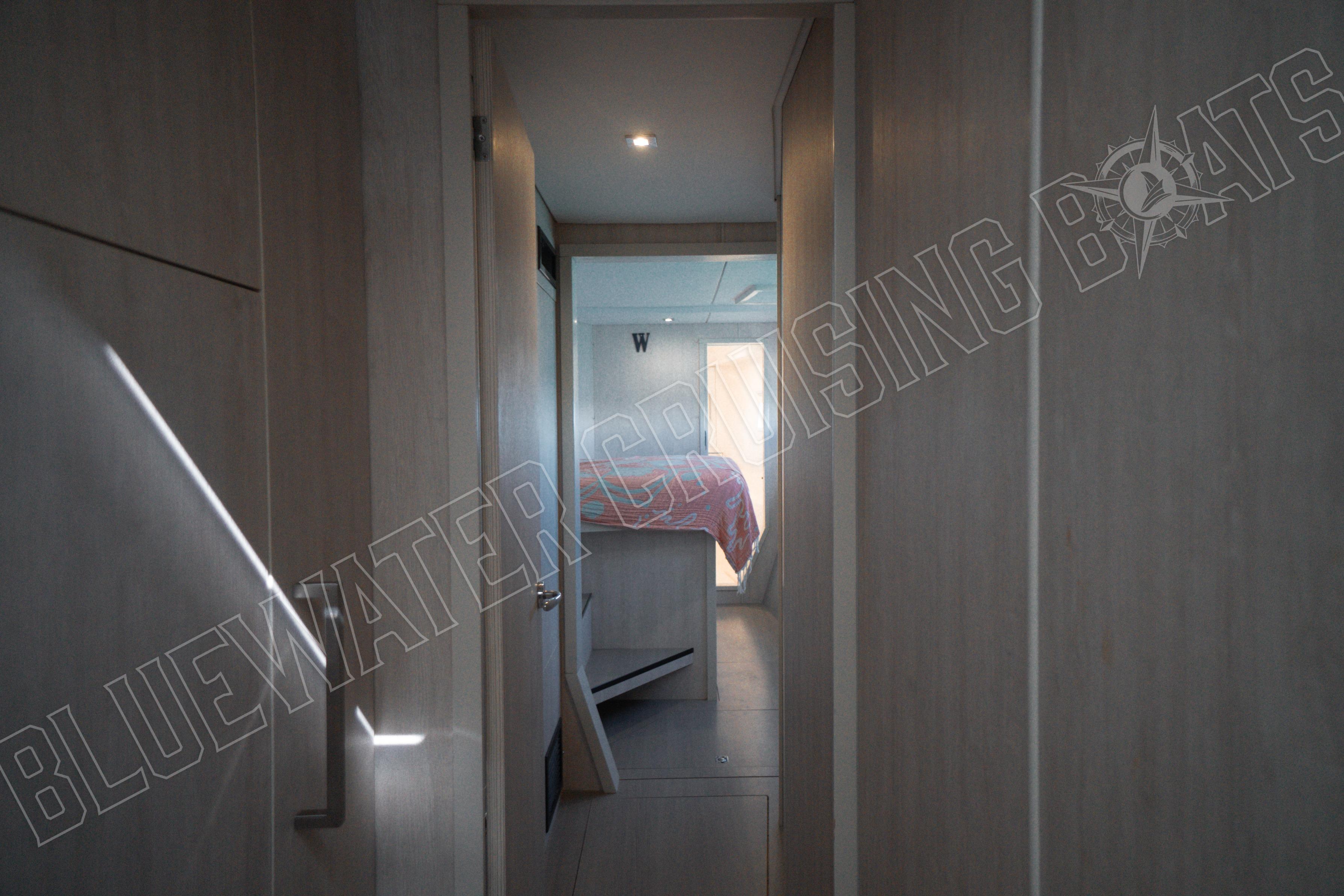 Sea Dog features a four-cabin, four-head layout, with the owner’s suite in the starboard hull. A room and a head for every person, ensuring privacy and removing the obligation to share a head with someone else.