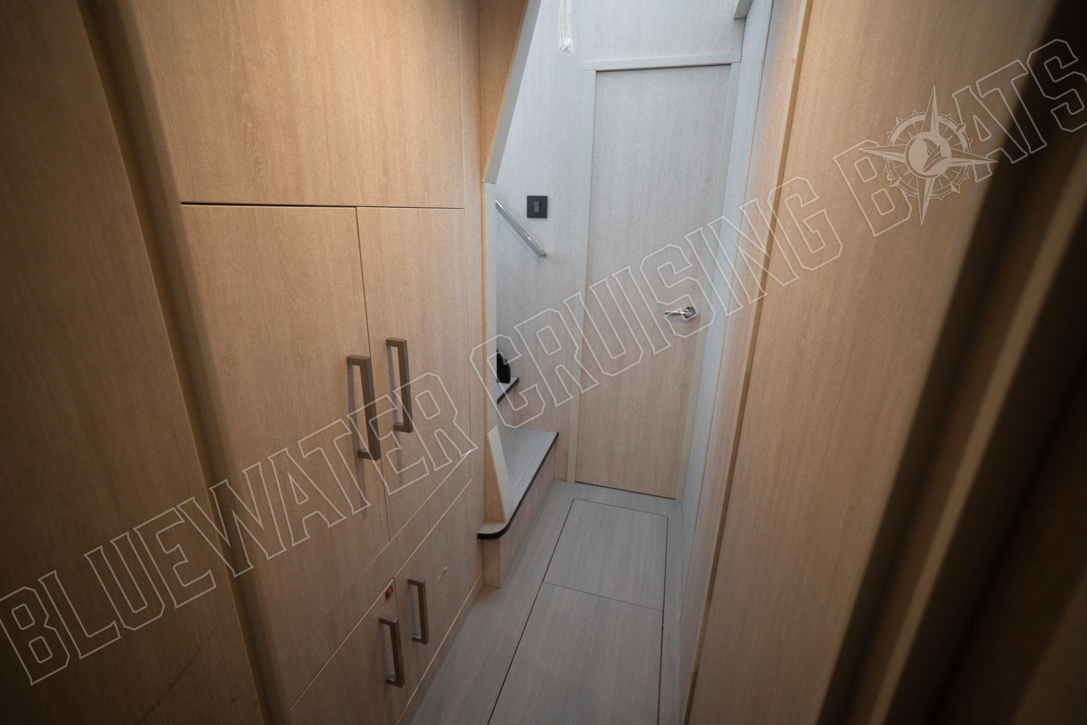 The owner’s suite occupies the starboard aft hull, offering a private retreat to rest and recover while also having generous storage and comfort for extended living aboard.