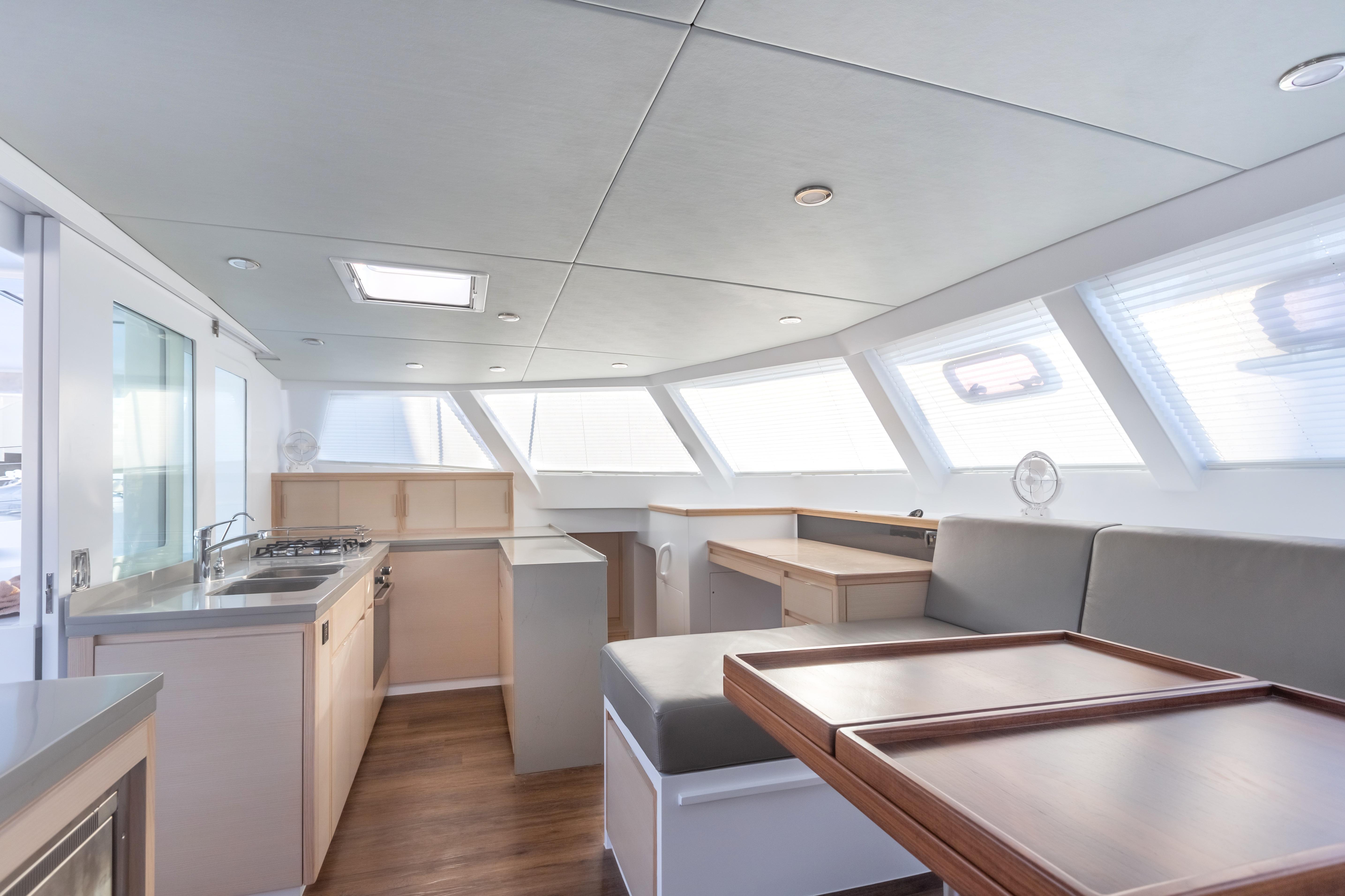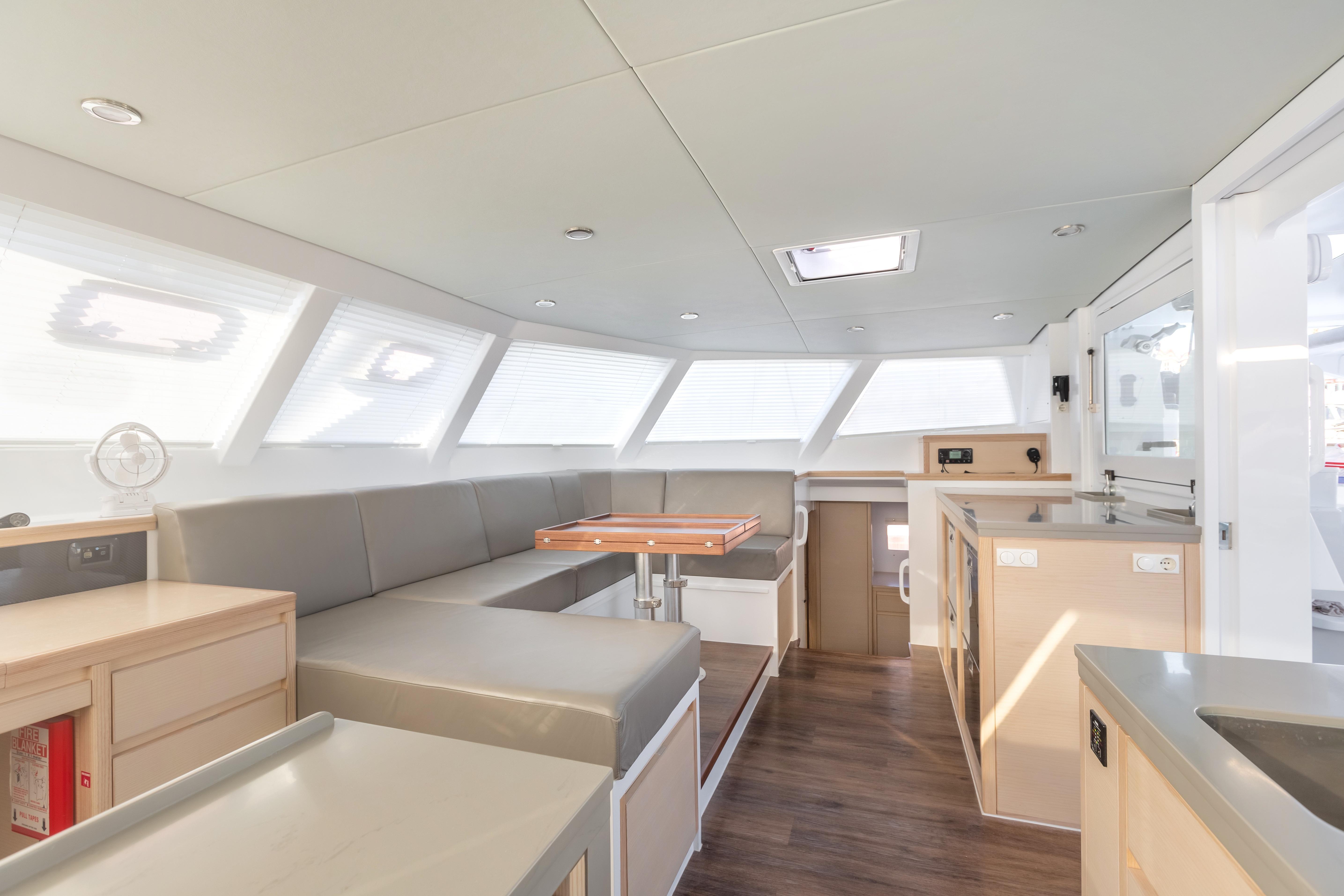 The Balance interior is widely praised for its warmth, craftsmanship, and practical luxury — built for long-term living aboard, not weekend use.