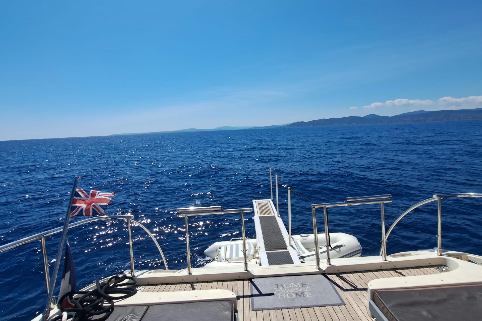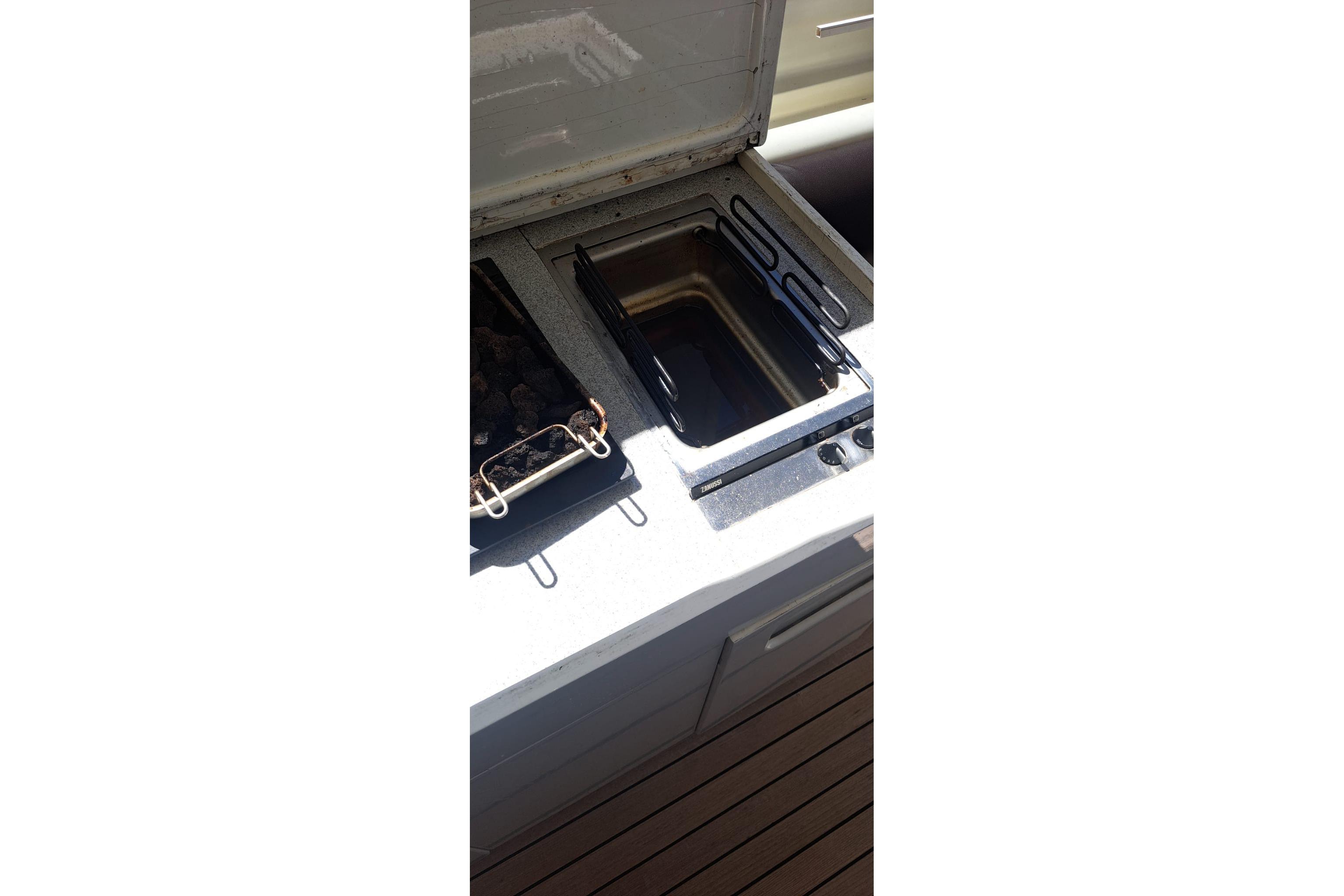 Les espaces extérieurs sont l’un des atouts majeurs de ce modèle. Le cockpit spacieux, protégé et parfaitement aménagé, offre un véritable espace de vie à ciel ouvert, idéal pour recevoir des invités ou profiter de moments conviviaux en mer. Le vaste bain de soleil avant permet de se détendre au mouillage, tandis que la plage arrière facilite l’accès à la mer et aux activités nautiques. Les circulations sont fluides et sécurisées, renforçant le confort d’utilisation au quotidien.