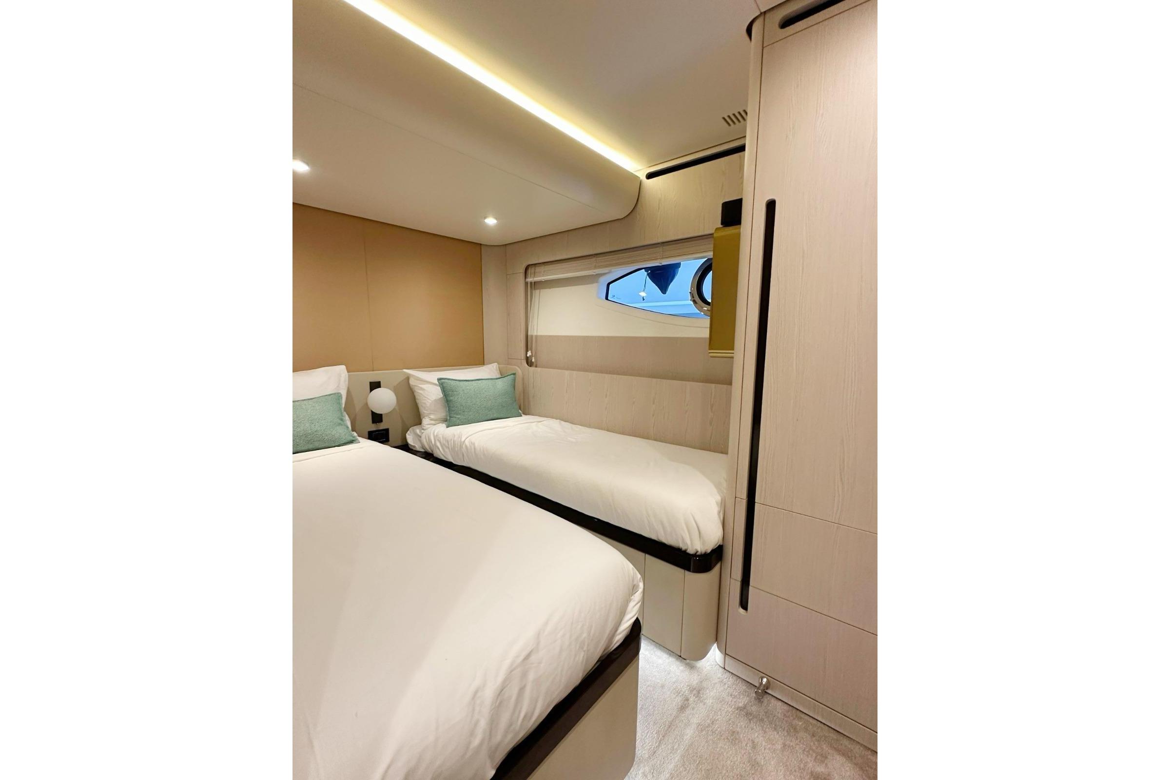 Accommodating up to 16 guests, the yacht features five well-appointed cabins and four heads, ensuring comfort for all. Enhanced with joystick control for effortless maneuvering, the Azimut Fly 78 is the perfect blend of sophistication and cutting-edge technology, ready to elevate your boating experience.