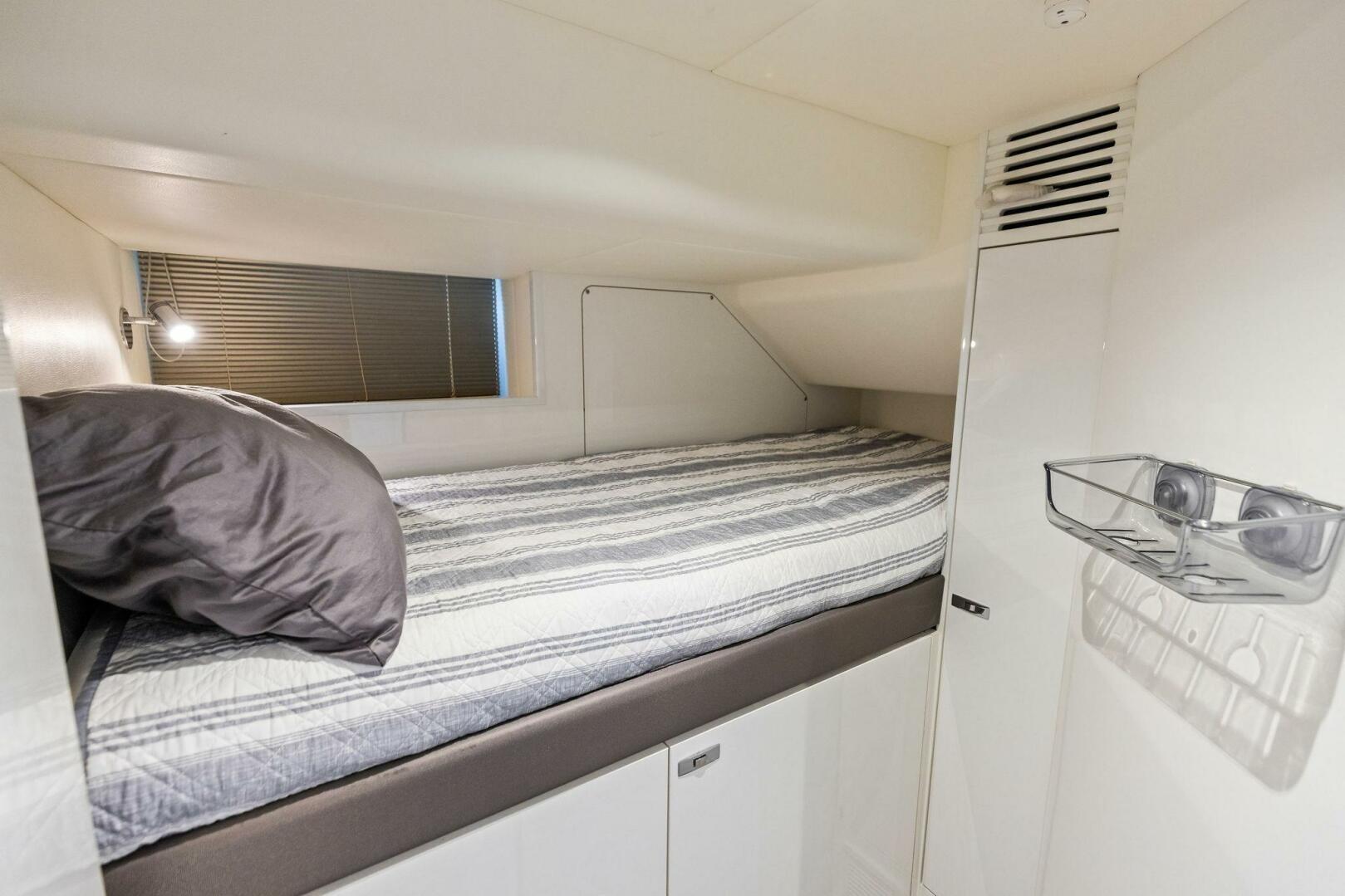 What sets this yacht apart is its layout and exterior functionality. The innovative Super Flybridge design delivers up to 30% more interior space than comparable yachts, creating expansive areas for entertaining and relaxation across all levels. This particular X80 features the highly sought-after main deck owner’s suite configuration, offering a private, full-time master stateroom with easy access and excellent separation from guest accommodations below. Five en-suite staterooms accommodate owners and guests comfortably, while crew quarters for four support seamless service and an easy ownership experience.