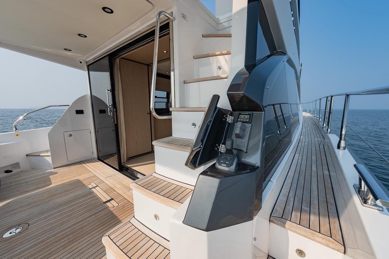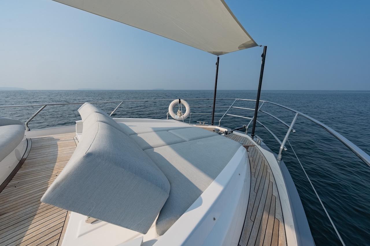 - Double Racor Filters, Extra Outlets, Watermaker Disposition, Electric Mooring Wenches, Additional helm control for Spotlight, Covers for all exterior cushions and helm, Miele Appliances, Decor upgrade (Riviera), Mesh covers for windows.