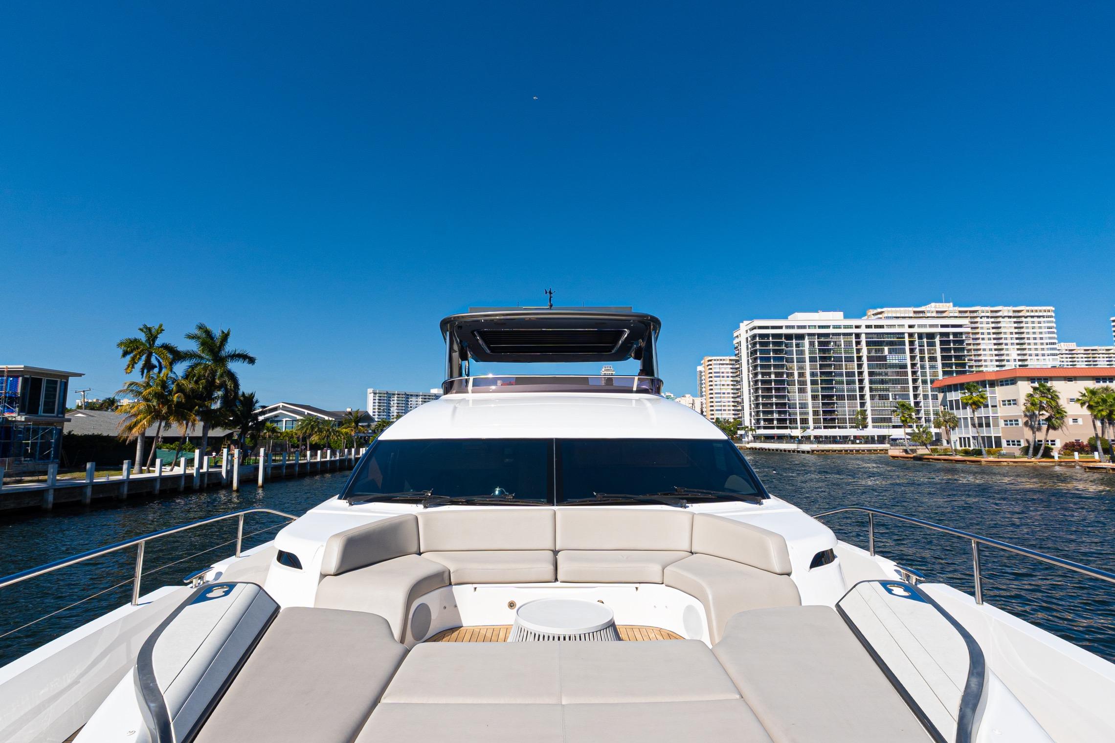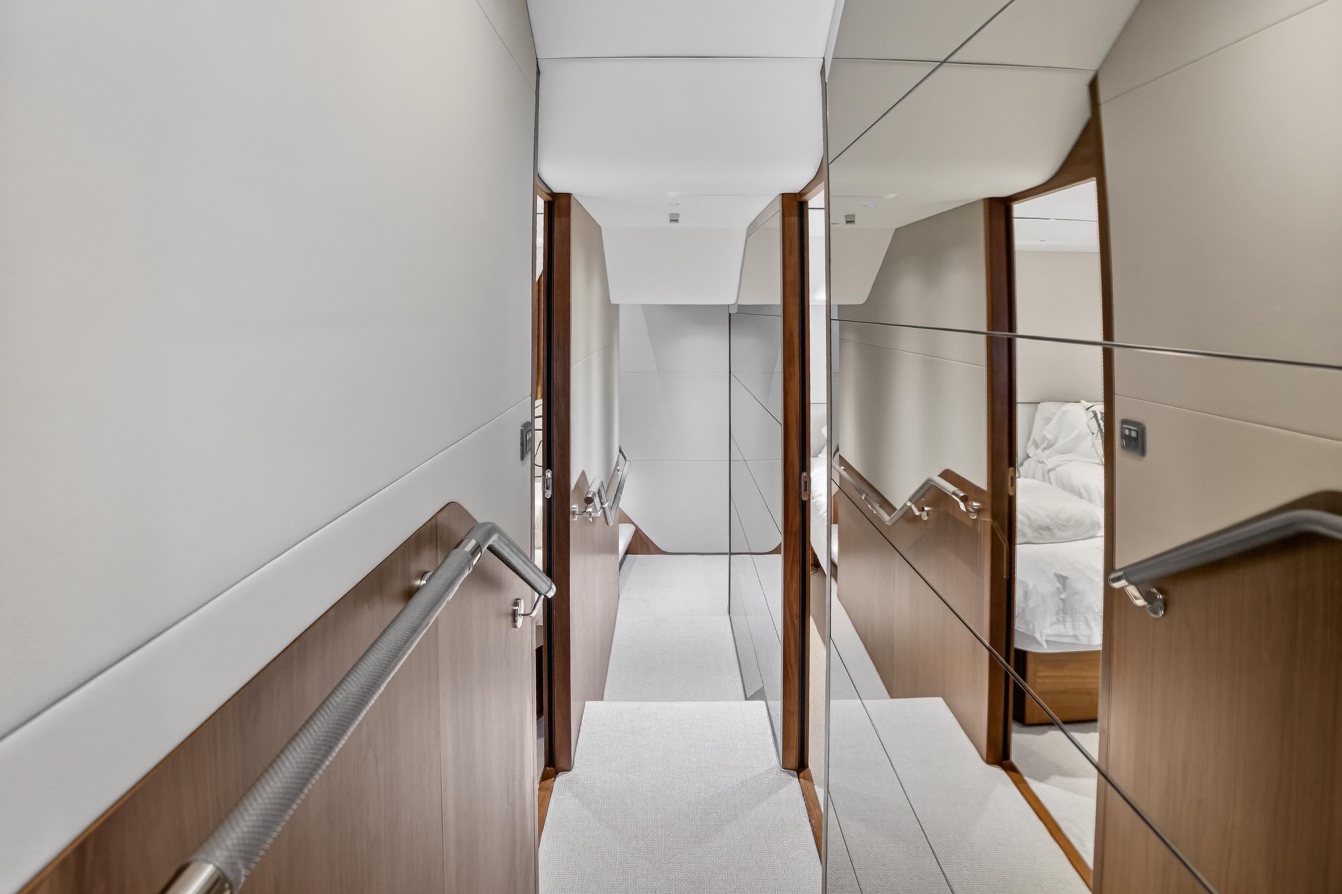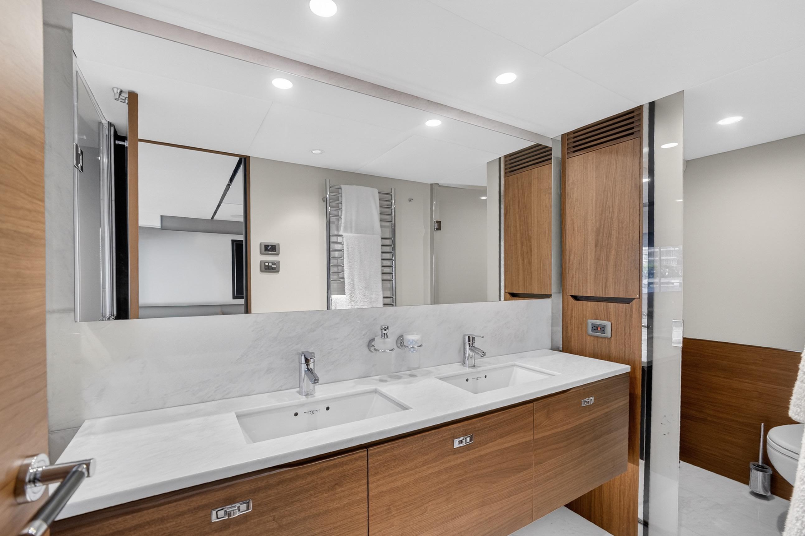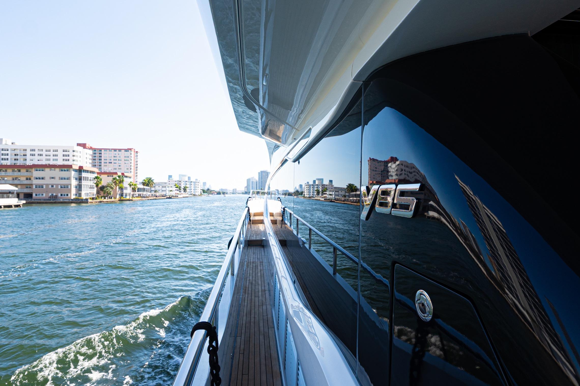 The all-new Y85 is a triumph of contemporary design. Her elegant sweeping profile houses an interior sanctuary that resets the benchmark for modern living. Her flybridge is an irresistible invitation to al fresco entertainment with a large dining area opposite a well-equipped wet bar further complemented by a large aft sunpad. With twin MAN V12 engines propelling her to a top speed of 33 knots, she flies past her contemporaries without looking back. An expansive single-level main deck provides ample entertaining space with a flexible galley arrangement. Three separate seating areas ensure the utmost privacy for guests with the crew able to move discretely around the yacht. Below deck, up to eight guests are accommodated across four beautifully appointed en suite cabins. Amidships, the full beam master suite is a champion of spacial design, whilst the en suite VIP cabin, forward, boasts a large double bed and walk-in-wardrobe. Furthermore, one double and one twin cabin (convertible into a double) complete her spacious accommodation. Unmissable, the all-new Y85 is unmistakably Princess.