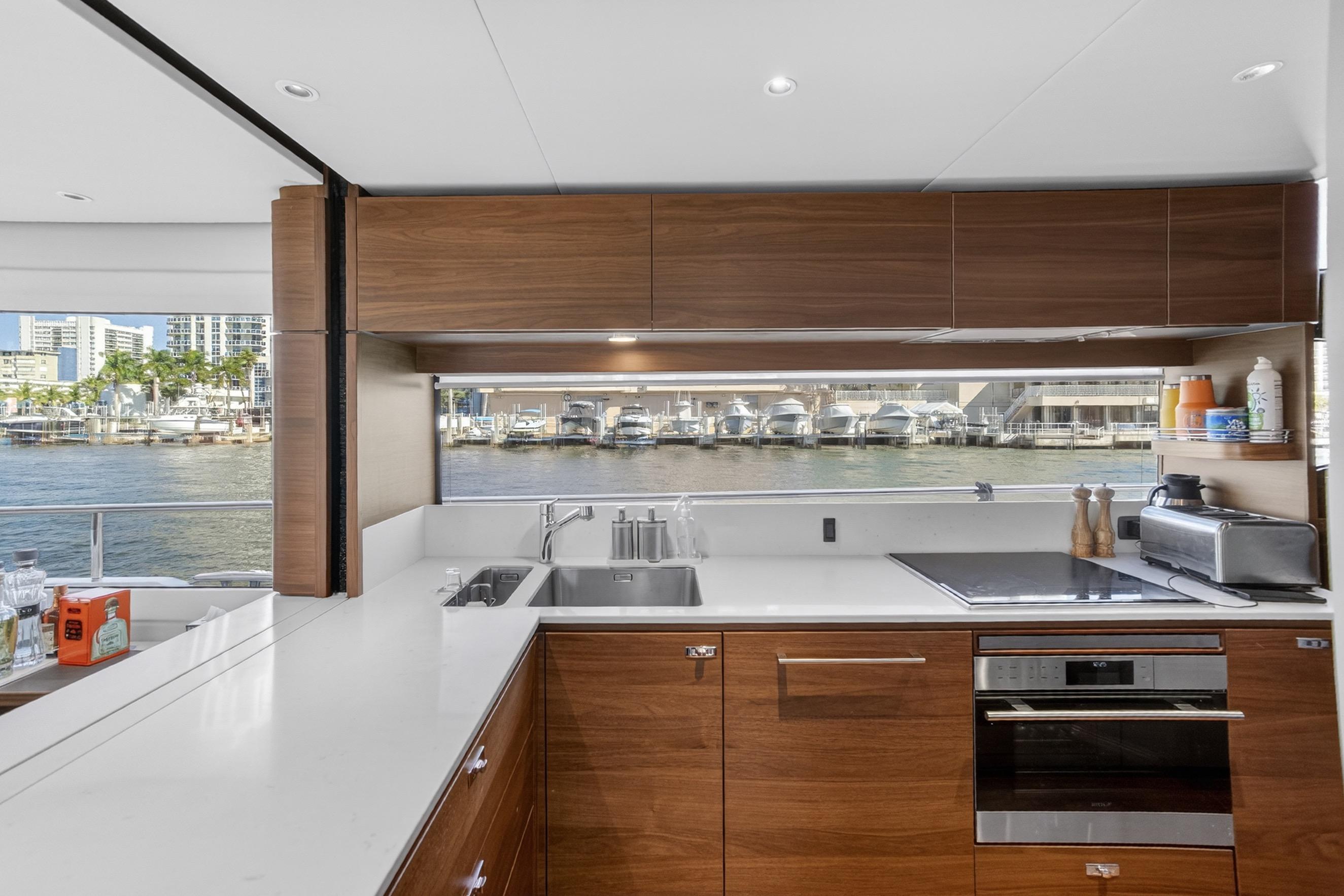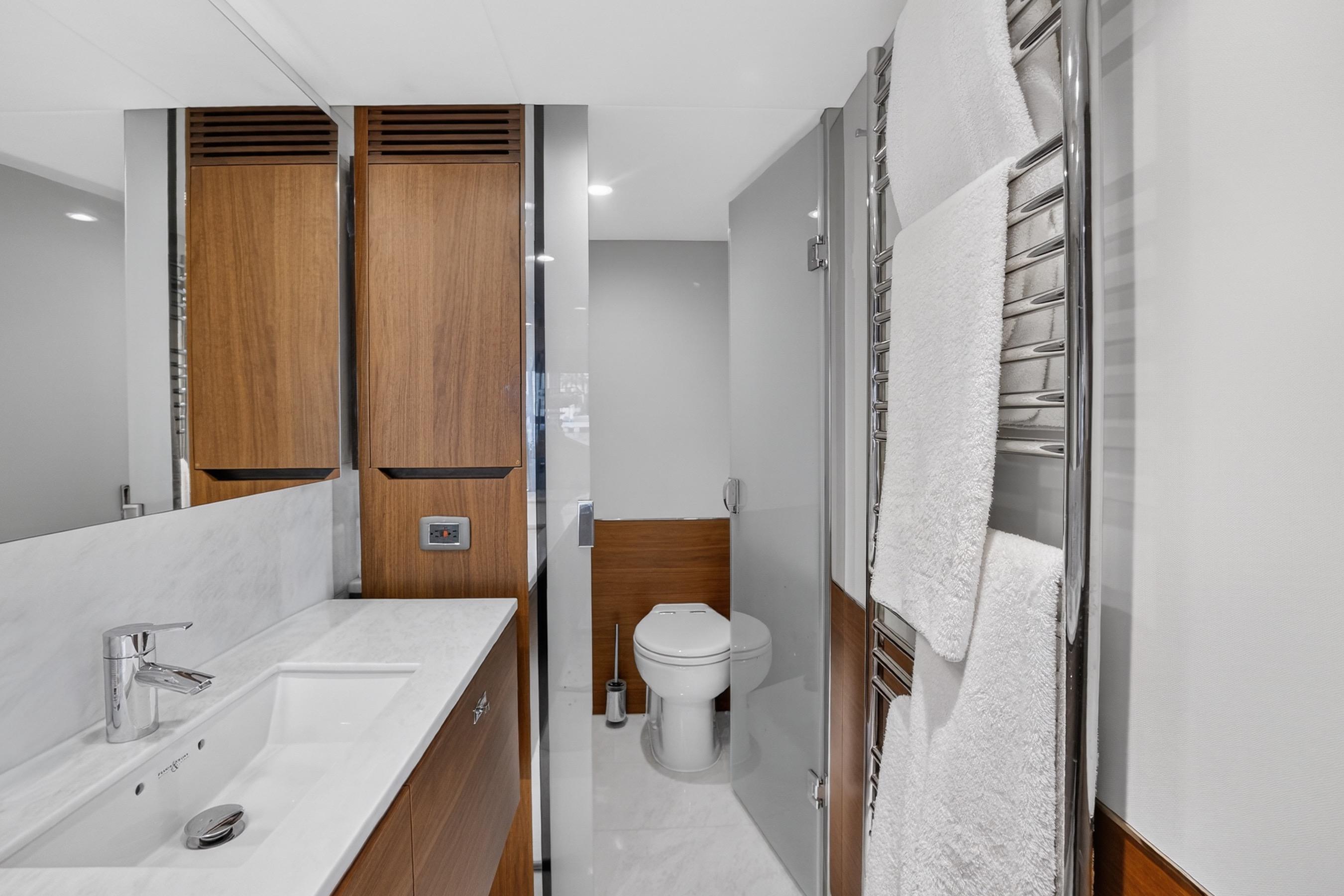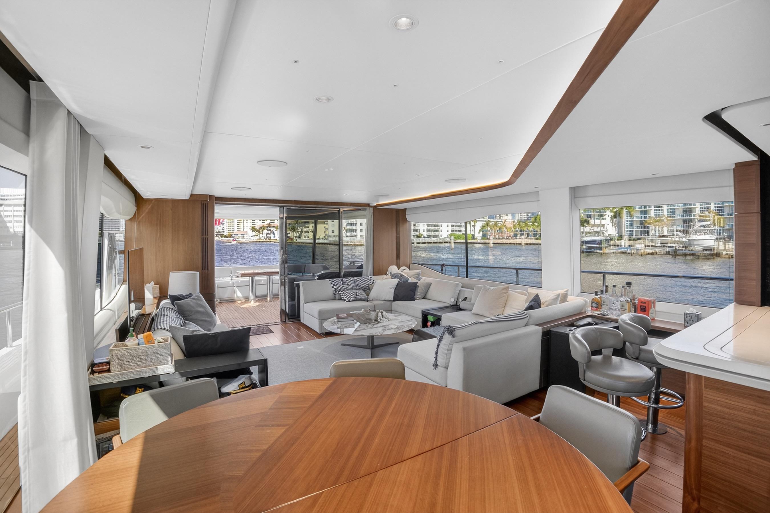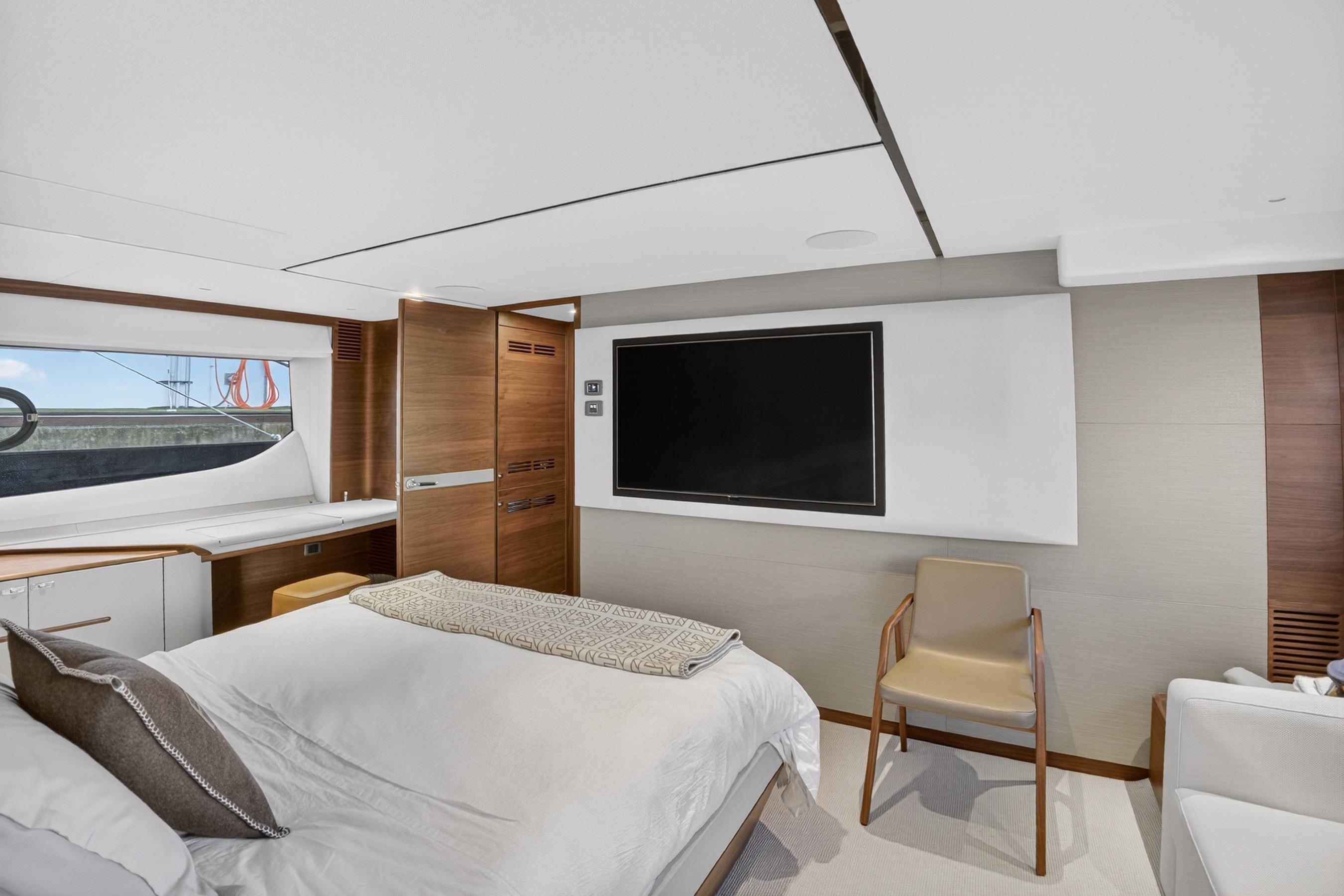 The all-new Y85 is a triumph of contemporary design. Her elegant sweeping profile houses an interior sanctuary that resets the benchmark for modern living. Her flybridge is an irresistible invitation to al fresco entertainment with a large dining area opposite a well-equipped wet bar further complemented by a large aft sunpad. With twin MAN V12 engines propelling her to a top speed of 33 knots, she flies past her contemporaries without looking back. An expansive single-level main deck provides ample entertaining space with a flexible galley arrangement. Three separate seating areas ensure the utmost privacy for guests with the crew able to move discretely around the yacht. Below deck, up to eight guests are accommodated across four beautifully appointed en suite cabins. Amidships, the full beam master suite is a champion of spacial design, whilst the en suite VIP cabin, forward, boasts a large double bed and walk-in-wardrobe. Furthermore, one double and one twin cabin (convertible into a double) complete her spacious accommodation. Unmissable, the all-new Y85 is unmistakably Princess.