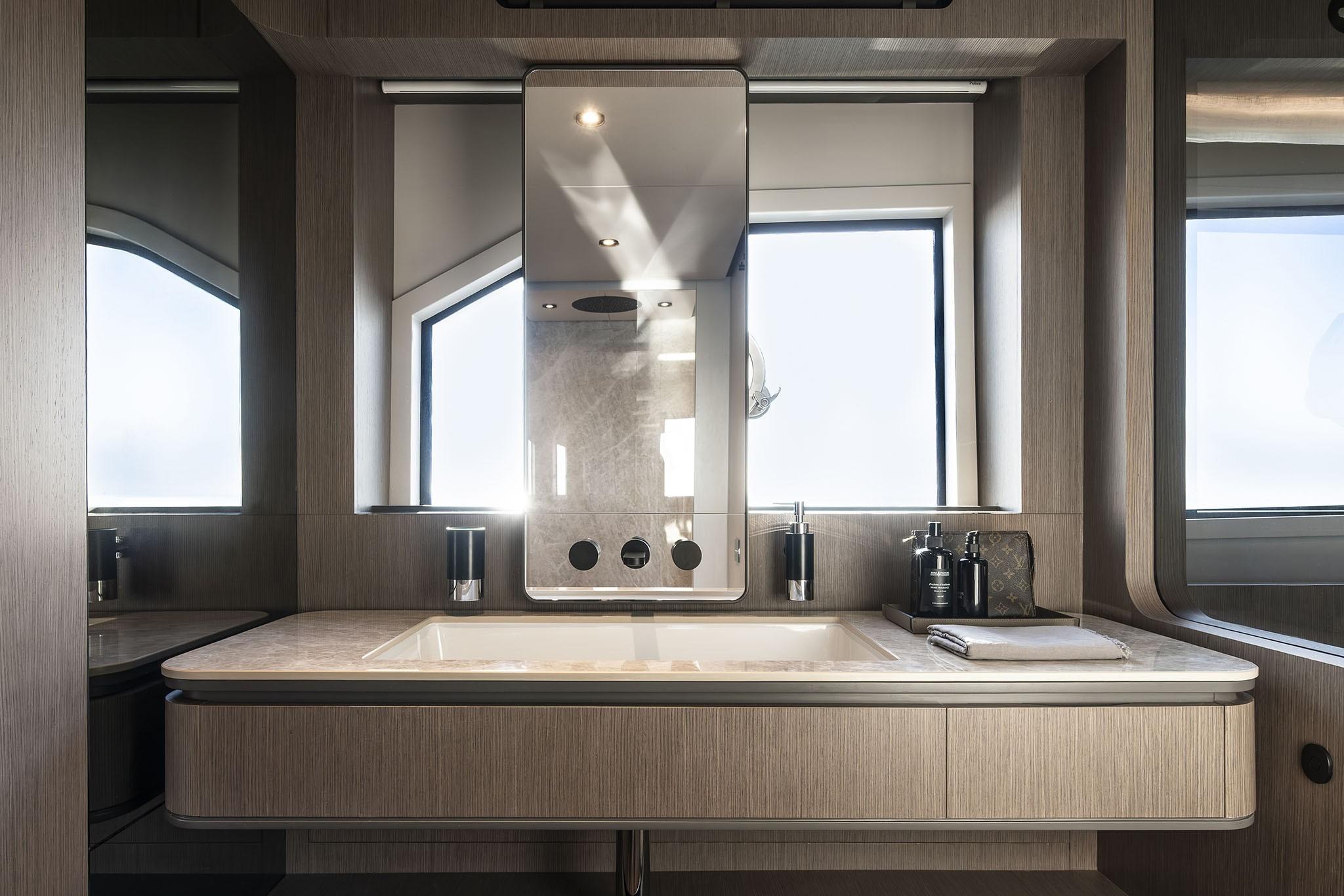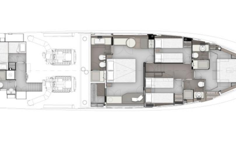 Il Ferretti Yachts 720 è un flybridge che unisce design moderno, comfort abitativo superiore e ottime prestazioni, caratterizzato da ampie vetrate, un salone open-space e una suite armatoriale a tutto baglio di 20m². , Raggiunge i 32 nodi, offrendo un'esperienza di navigazione silenziosa e confortevole. Frutto della collaborazione tra Filippo Salvetti e il Comitato Strategico di Prodotto Ferretti, presenta un profilo accattivante e volumi ottimizzati. Layout Interno: Quattro cabine sul ponte inferiore: armatoriale a centro barca (full beam), VIP a prua, e due cabine doppie. Salone e Cucina: Spazio unico con salone, zona pranzo e cucina, caratterizzato da un'elevata insonorizzazione e arredi personalizzabili.