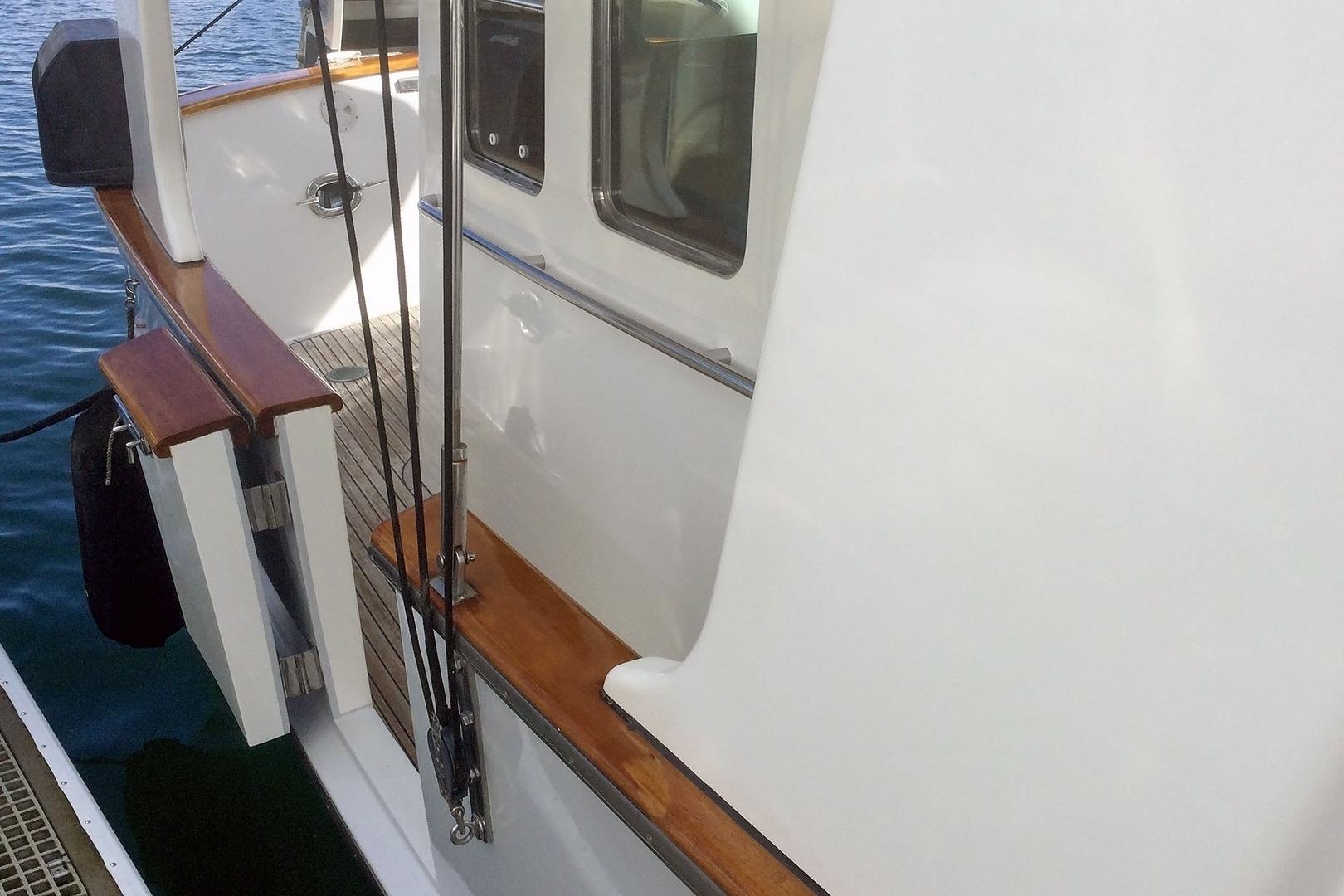 Mast and boom Forespar mast and boom (disassembled, stripped, epoxy primed, and Awlgrip painted 2018) | Paravane outriggers (regalvanized 2018 -- 2 sets) | Boom fitted with Warn DC-1000 winches (2018)