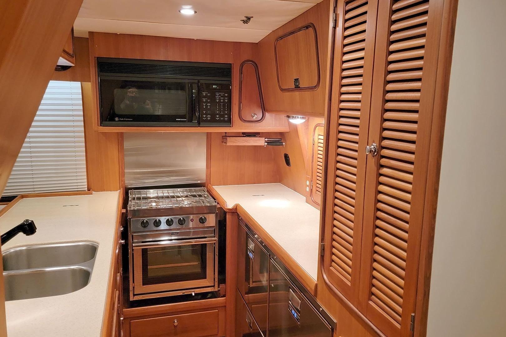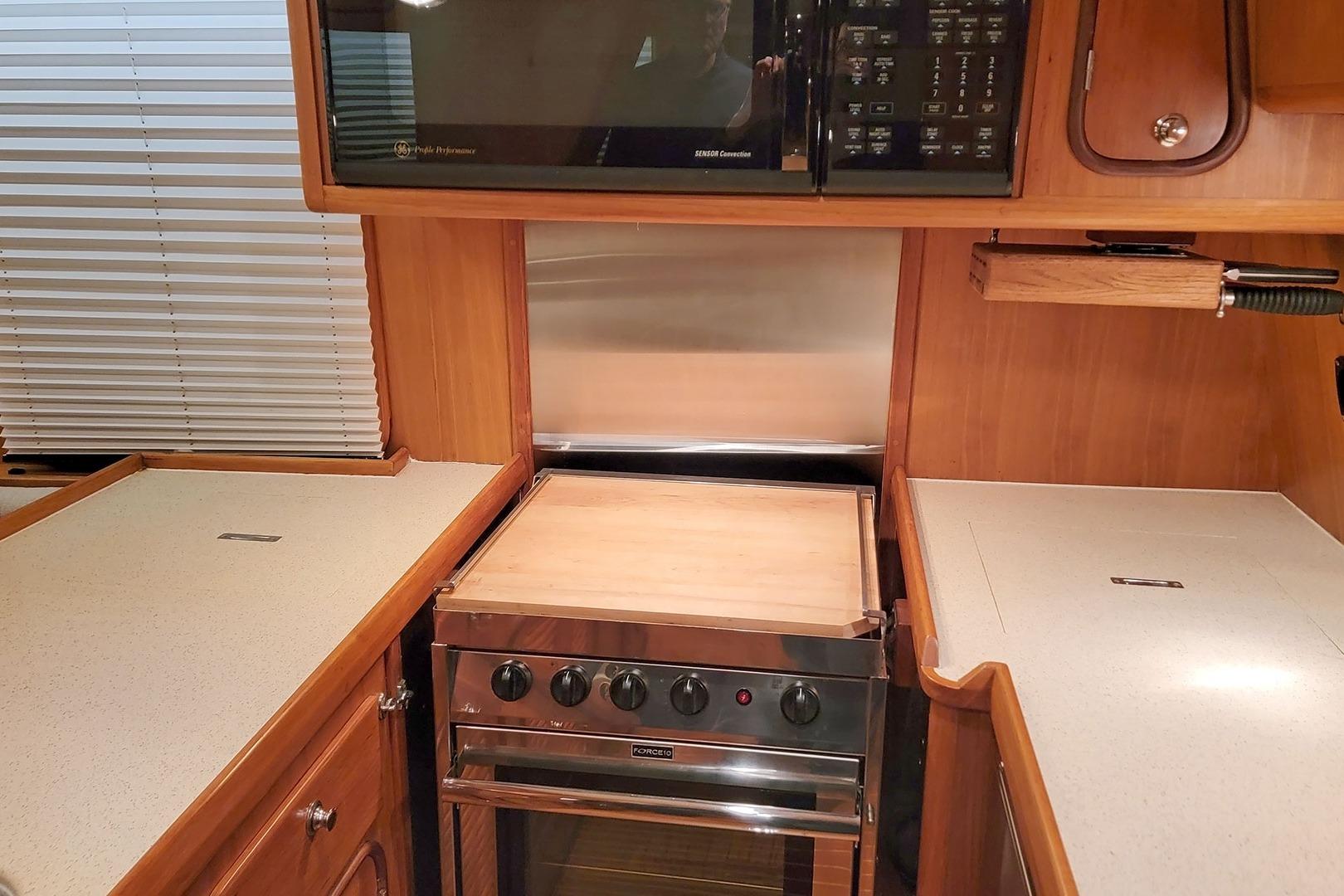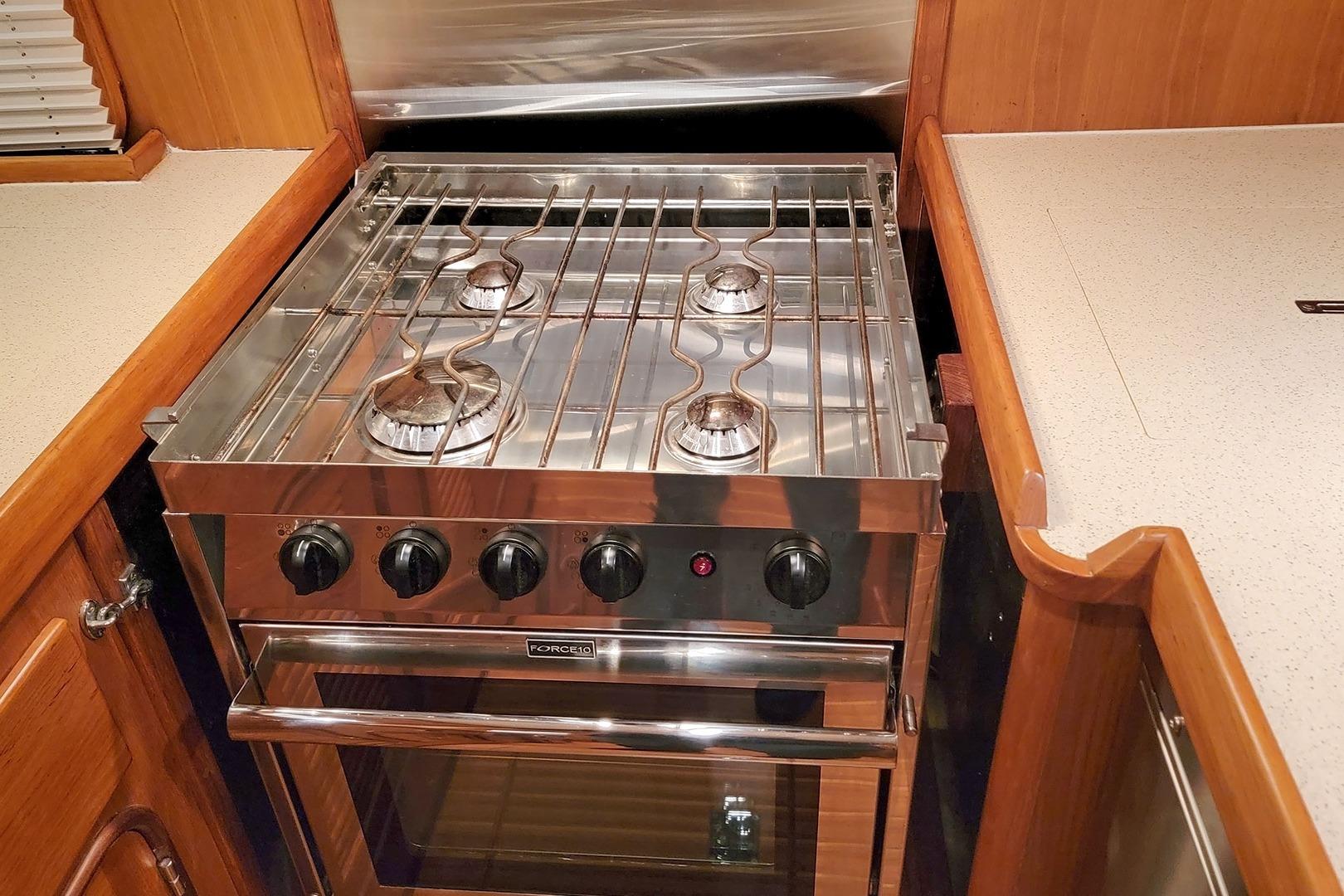 Galley (2) Vitrifrigo two-drawer refrigerator/freezers under counter in galley | Norcold freezer under section of starboard settee in saloon | Force 10 4-burner stainless steel propane stove and oven | GE profile microwave/ convection oven |Broan trash compactor