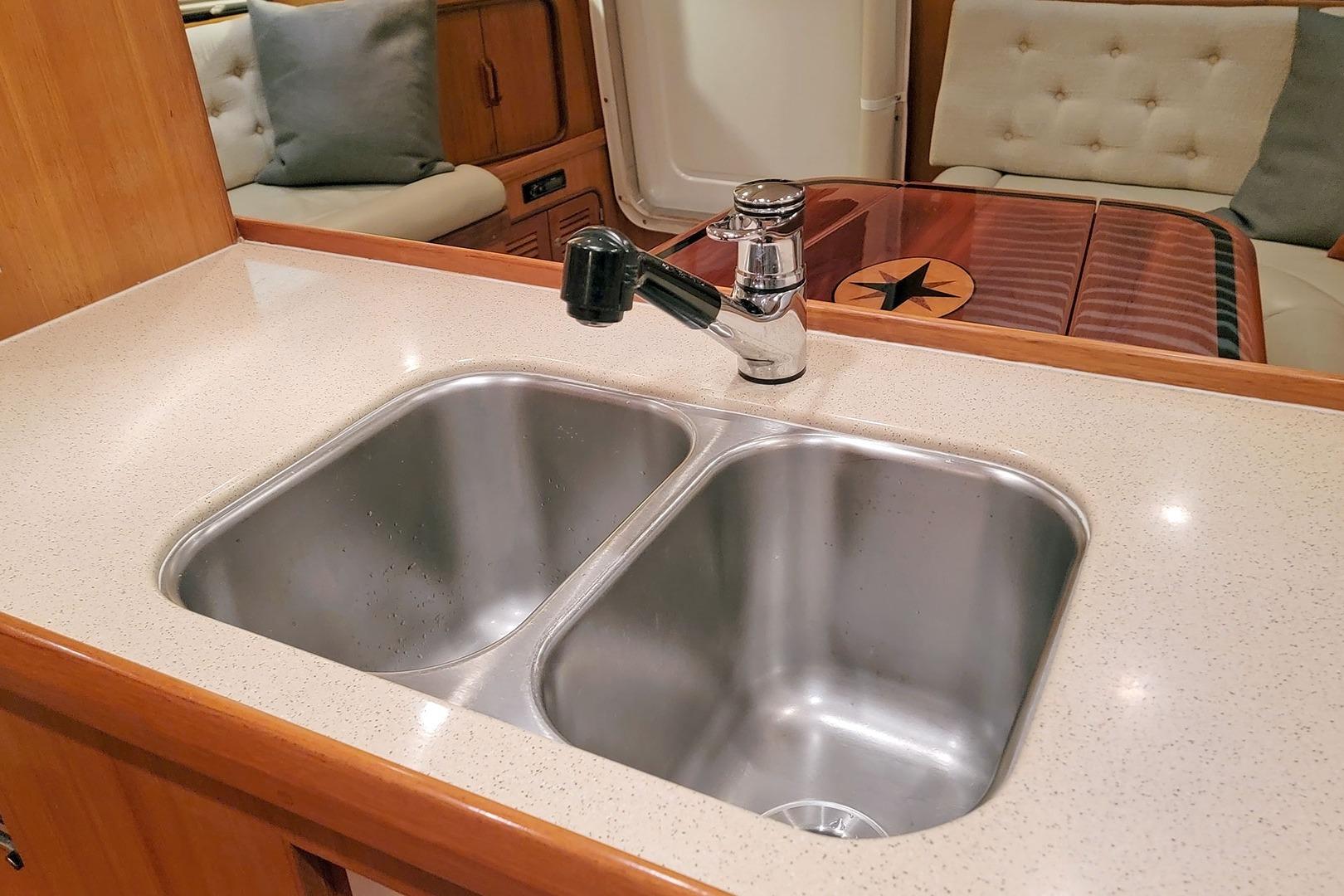Climate control Hurricane SCH25 hydronic heat system with engine heat and domestic hot water | Dometic reverse cycle AC/ heat 16,000 BTU in saloon (2018); Cruisair AC/ heat 12,000 BTU in pilothouse | Cruisair AC/ heat 10,000 BTU owners /guest staterooms