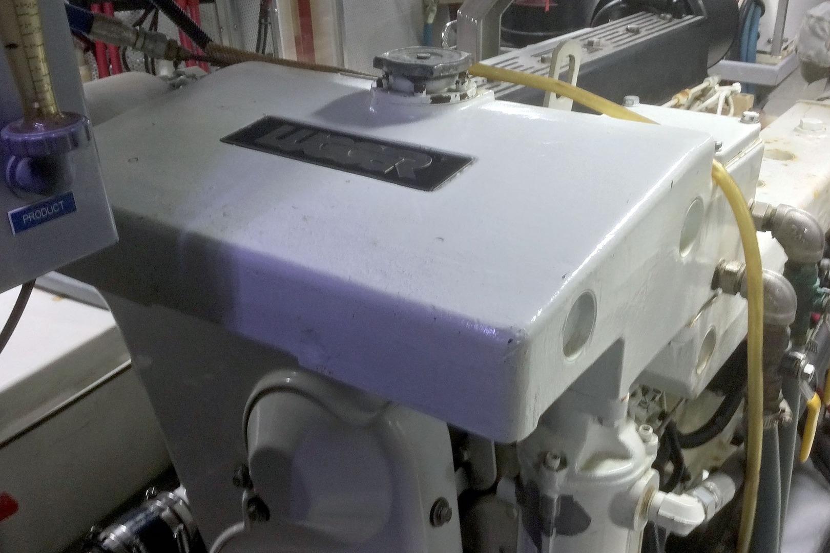 Main engine Lugger LP-668D 105 HP (hours 5673.3 February 2026 (Twin Disc MG -- 5050 transmission with 3.0:1 reduction gear |Mathers MicroCommander single lever controller