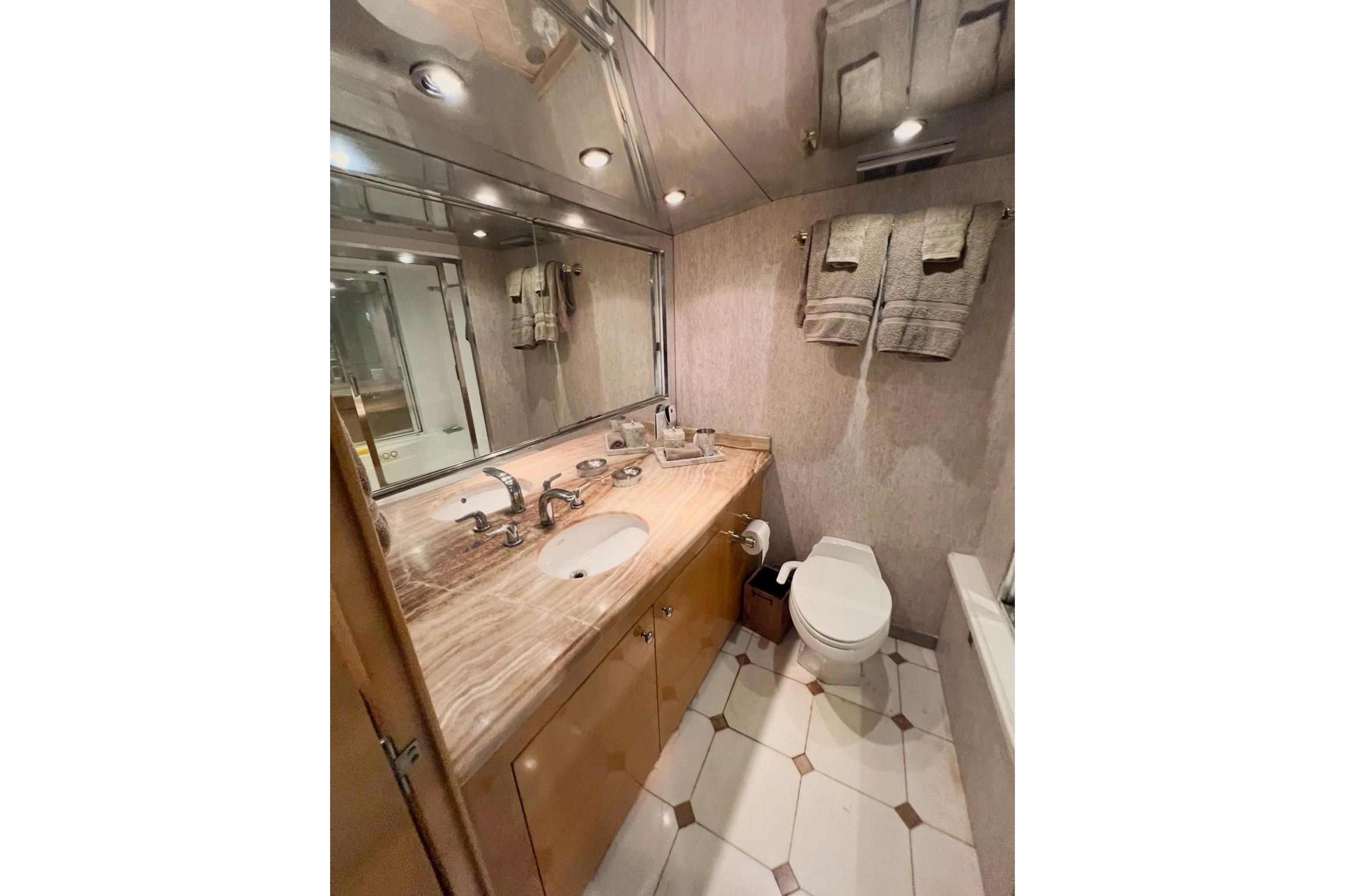Kristin Lee features a spacious four-stateroom layout highlighted by a spacious salon that flows seamlessly into the forward galley and dinette. Accommodations include a luxurious full-beam owner’s stateroom with private salon access and separate his-and-hers heads, two well-appointed VIP guest staterooms and a twin guest stateroom with two bunk beds.