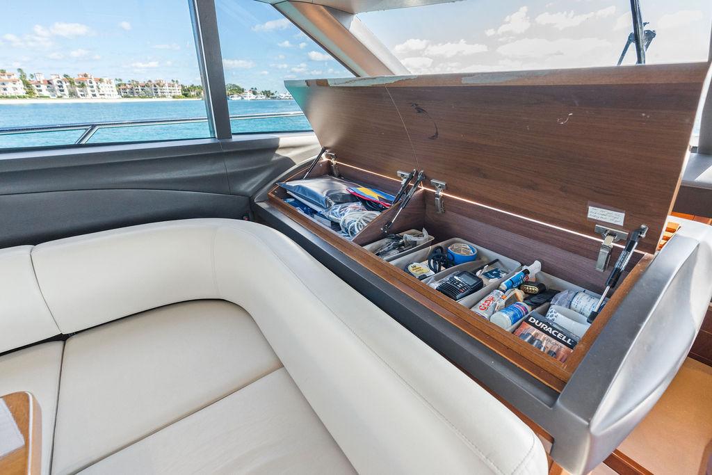- Storage compartment under seats