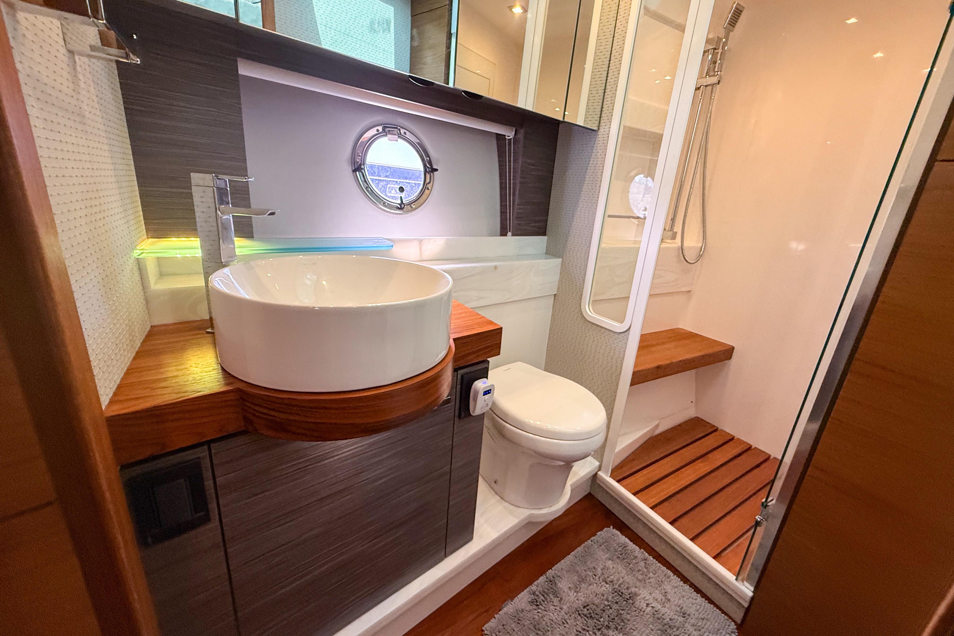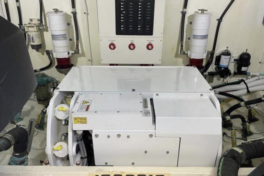 Powered by twin Volvo Penta D11 725HP diesel engines paired with IPS20 pod drives, this yacht offers effortless joystick maneuvering, dynamic positioning, smooth cruising, and impressive efficiency — all with only ~500 current hours.