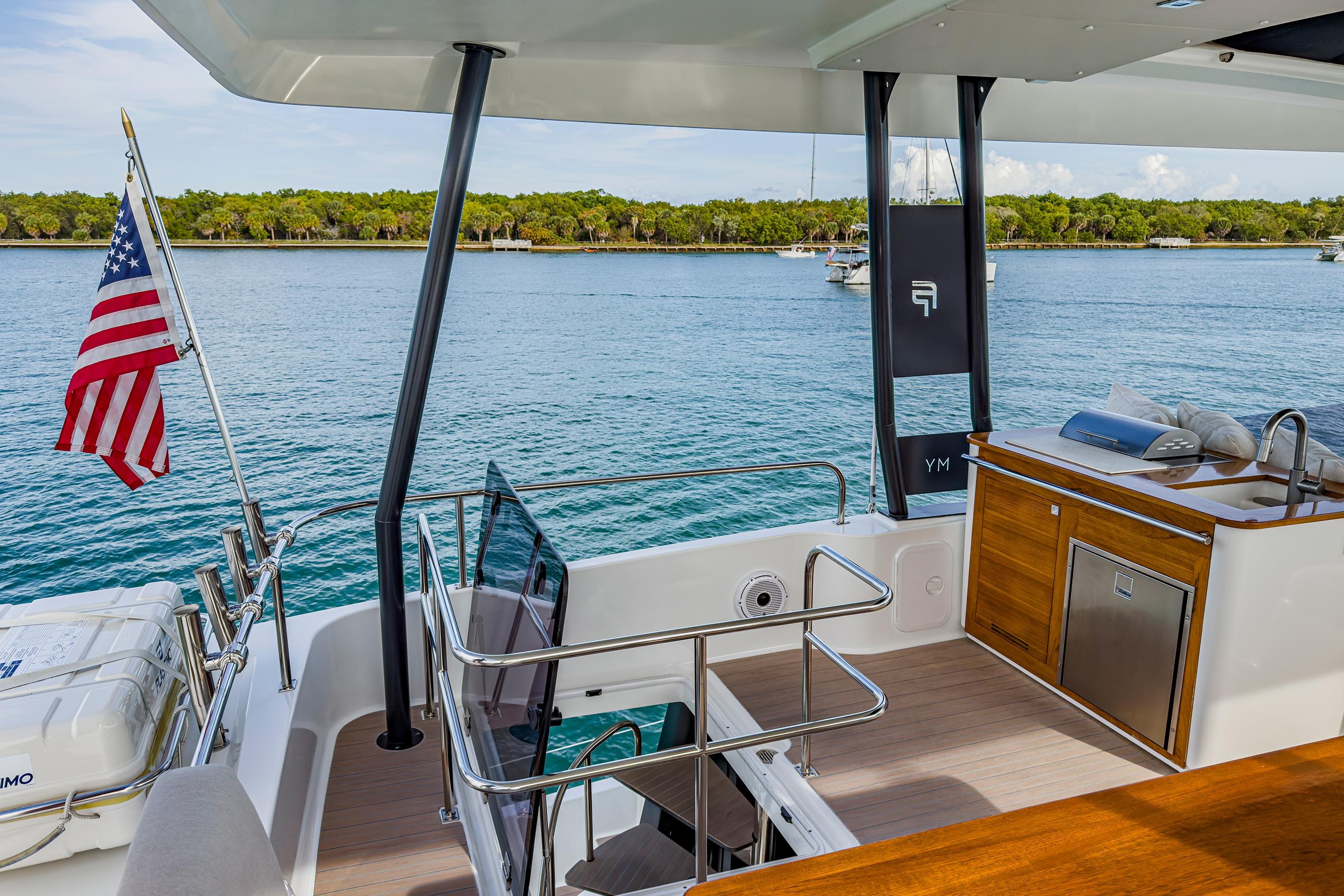 The flybridge with the grill and refrigerator make entertaining seamless. Operating from the bridge of course gives you greater visibility when operating and improves communication with your mate.