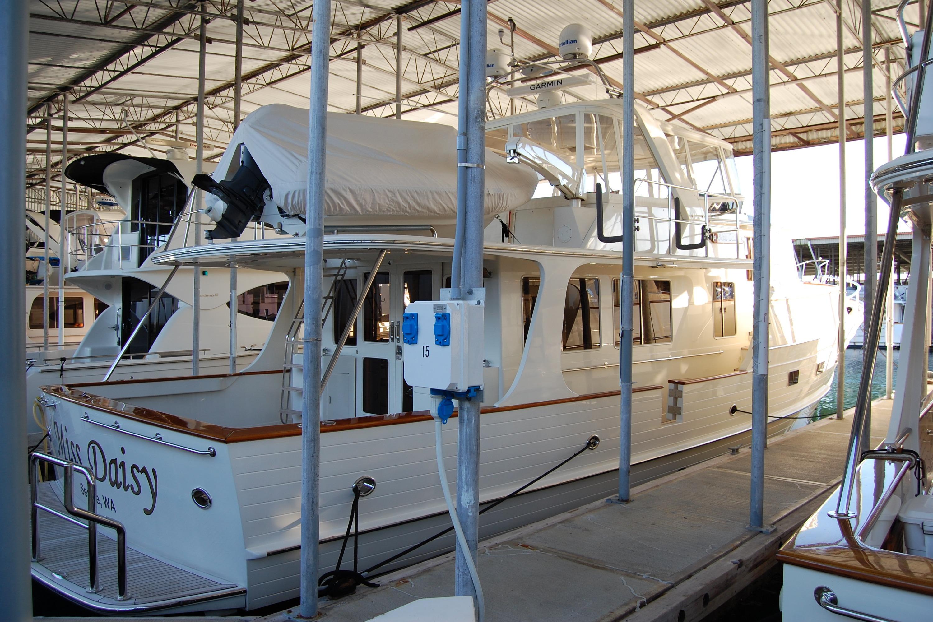 55 Fleming Pilothouse. She has benefitted from having an extremely knowledgeable owner. She is powered by a pair of low hour Cummins 450 diesels, which are kept and maintained in immaculate condition. She is set up for cruising the pacific northwest, Reverse cycle heat/AC ,full size washer and dryer, bow and stern thrusters, new Garmin complete navigation suite, watermaker, new lithium battery banks with mastervolt chargers inverters. New Full size refer. Mareton monitoring system, New electronic controls, Starlink. She has the extended boat deck allowing for a large newer 12 Walker Bay tender. Steelhead 1000lbs fully hydraulic davit, Full flybridge Hardtop enclosure, new upholstery, pop up flat screen tv, she shows in nearly Bristol condition and is truly turn key. Owners moving up to a larger Fleming. Covered condo slip available to purchase. Vessel is in a Washington state tax paid LLC.