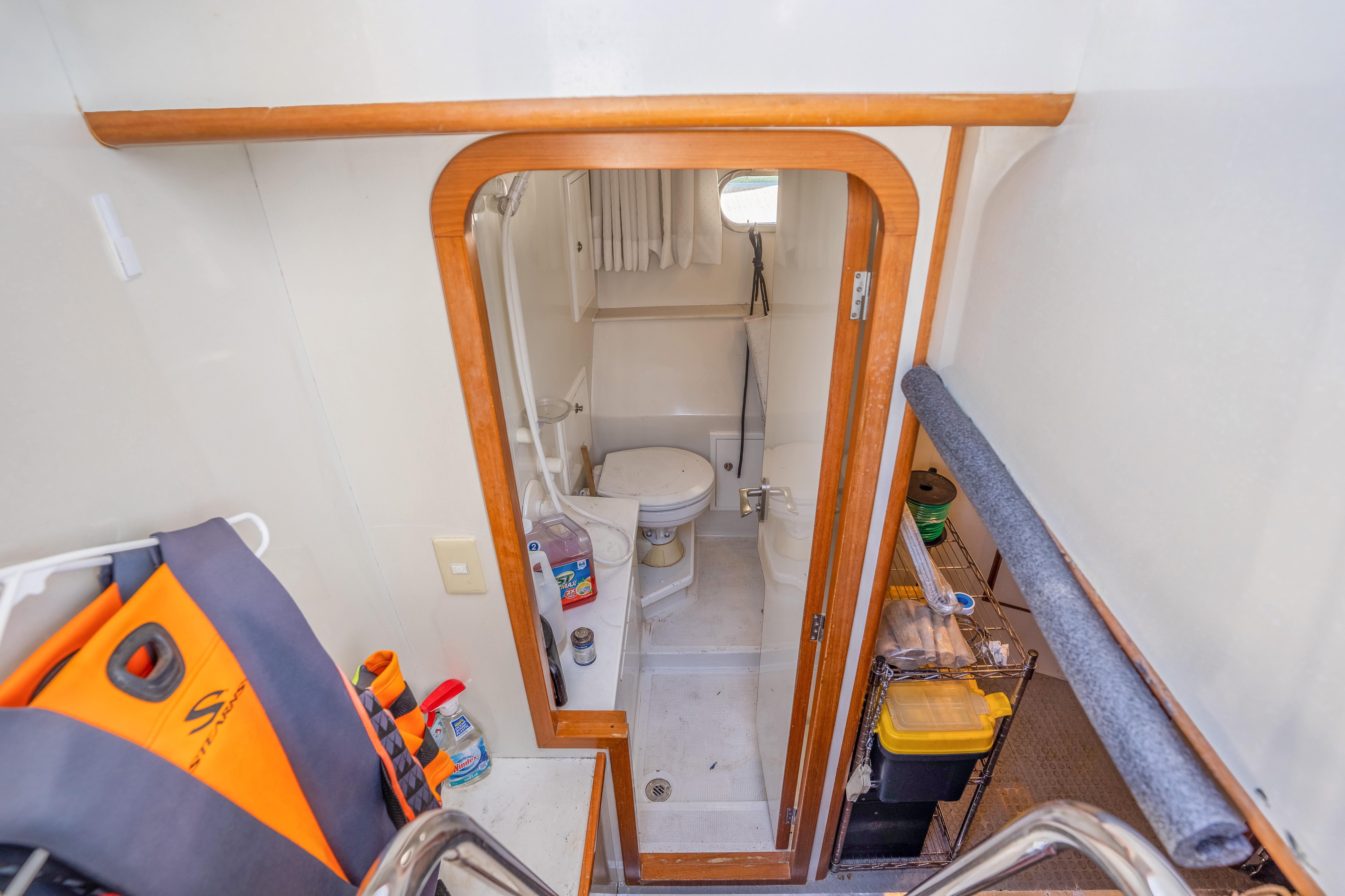 Access to the crews quarters / Third suite and engine room is accessed from the cockpit, where there is a third head and shower and storage