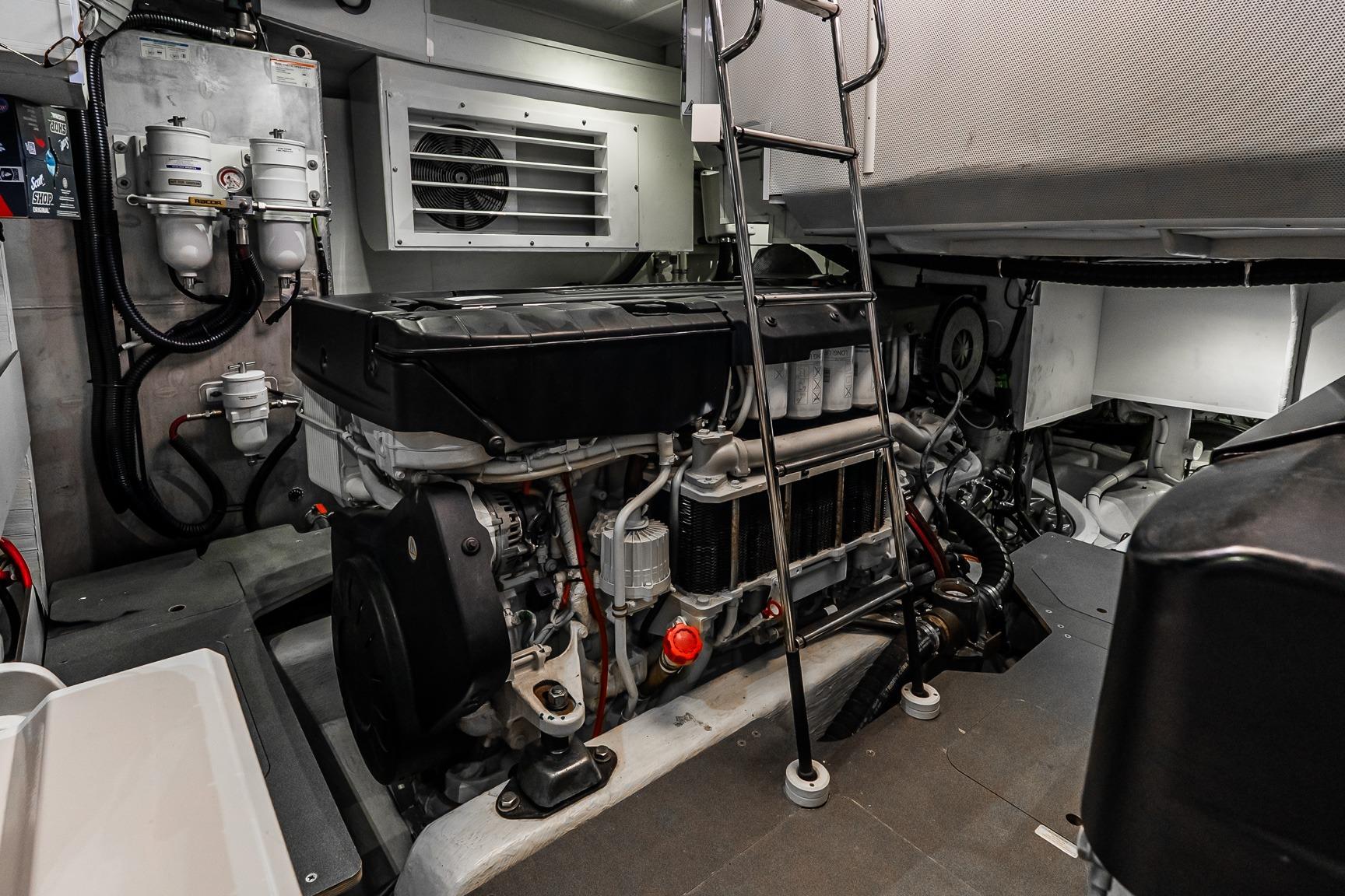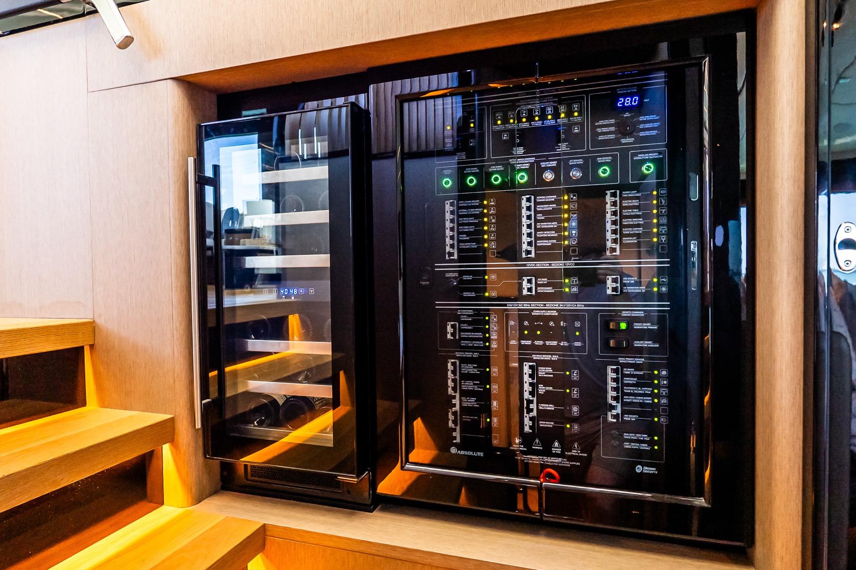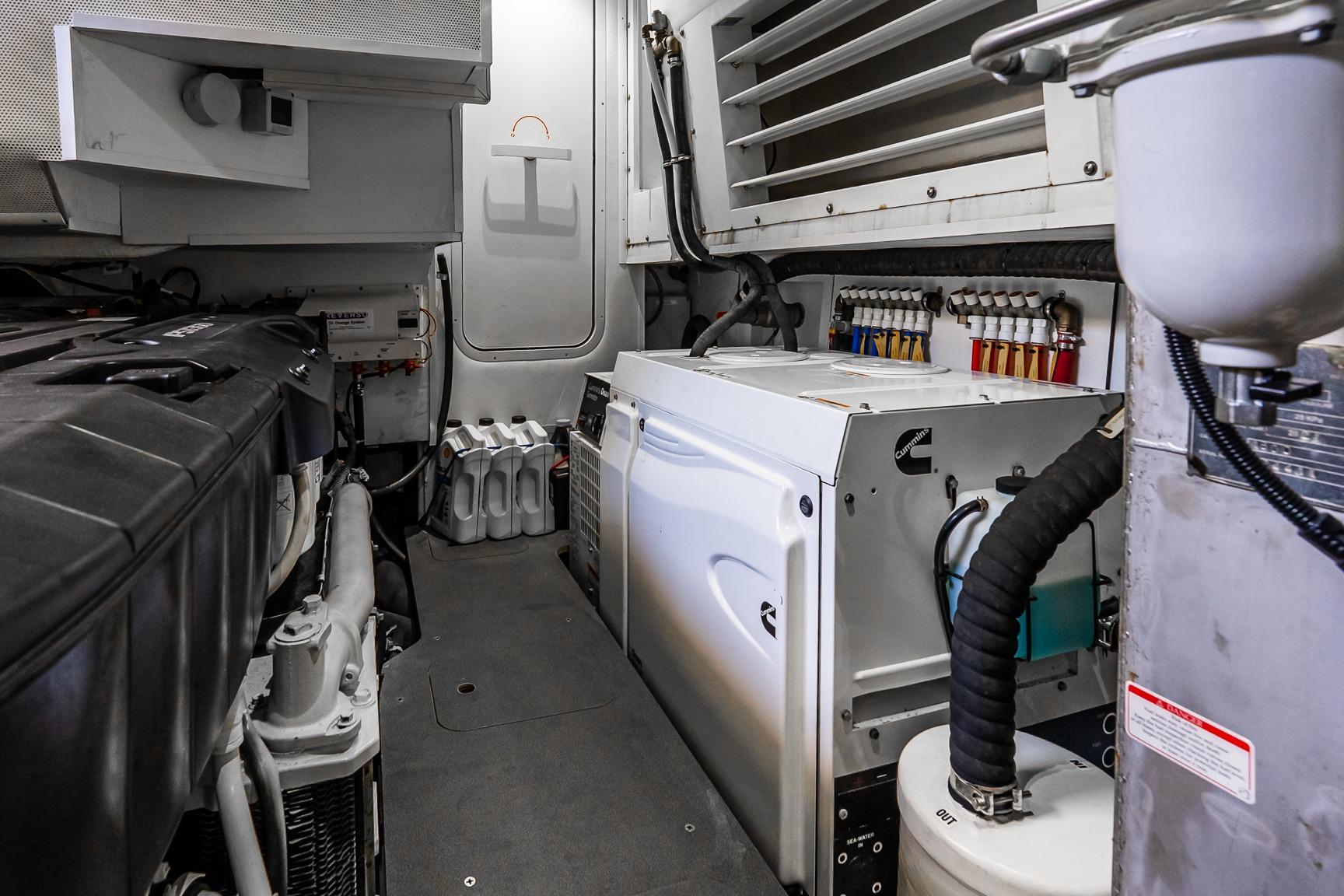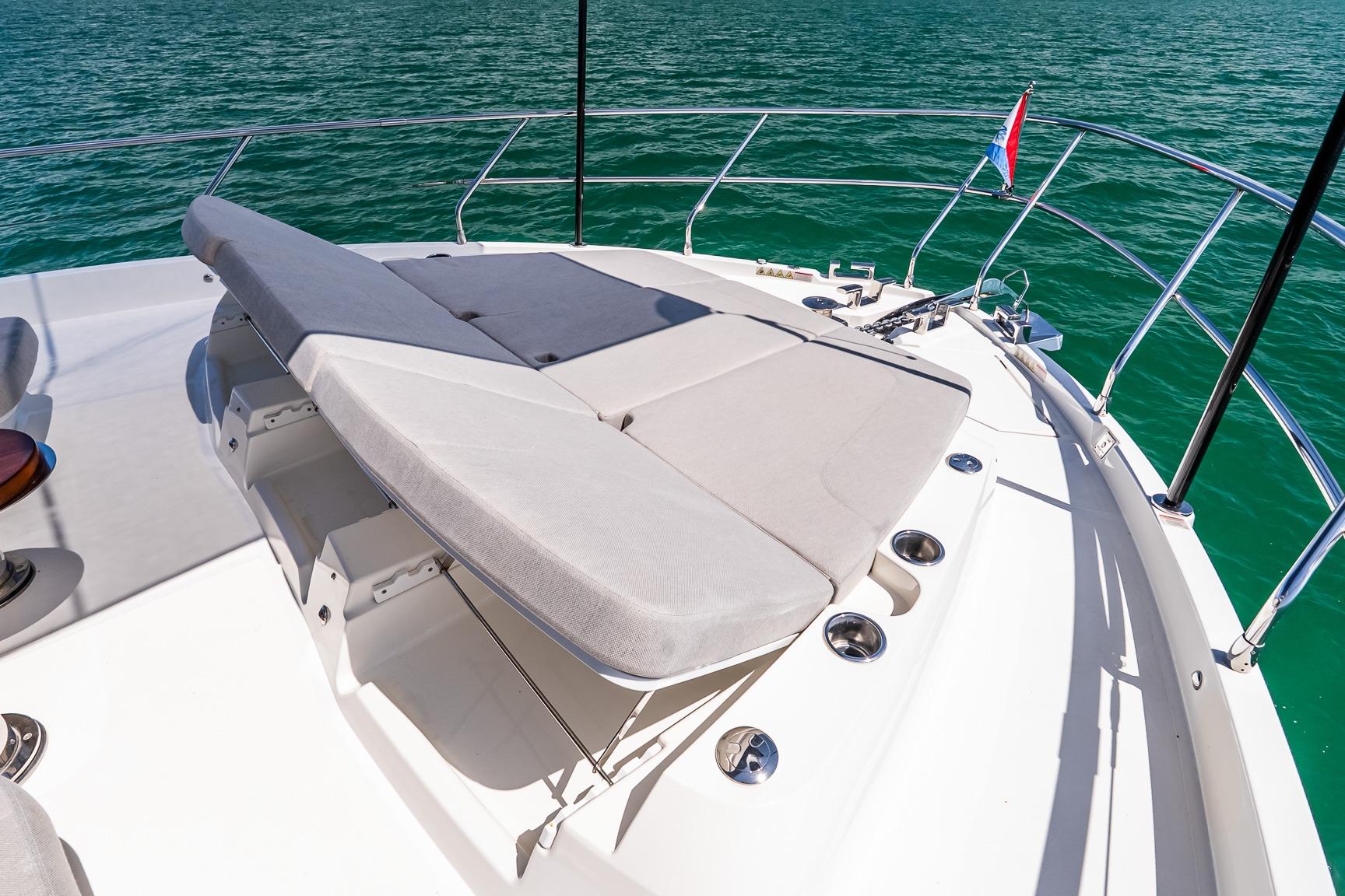 At the helm, four Garmin 22” displays, solid-state radar, AIS weather and identification system, monitoring system, and integrated cockpit and engine room cameras provide advanced navigation and full vessel awareness. Dual 21.5kW generators, a 3000W inverter, bow thruster, and double Racor fuel filtration system support confident cruising and onboard reliability.