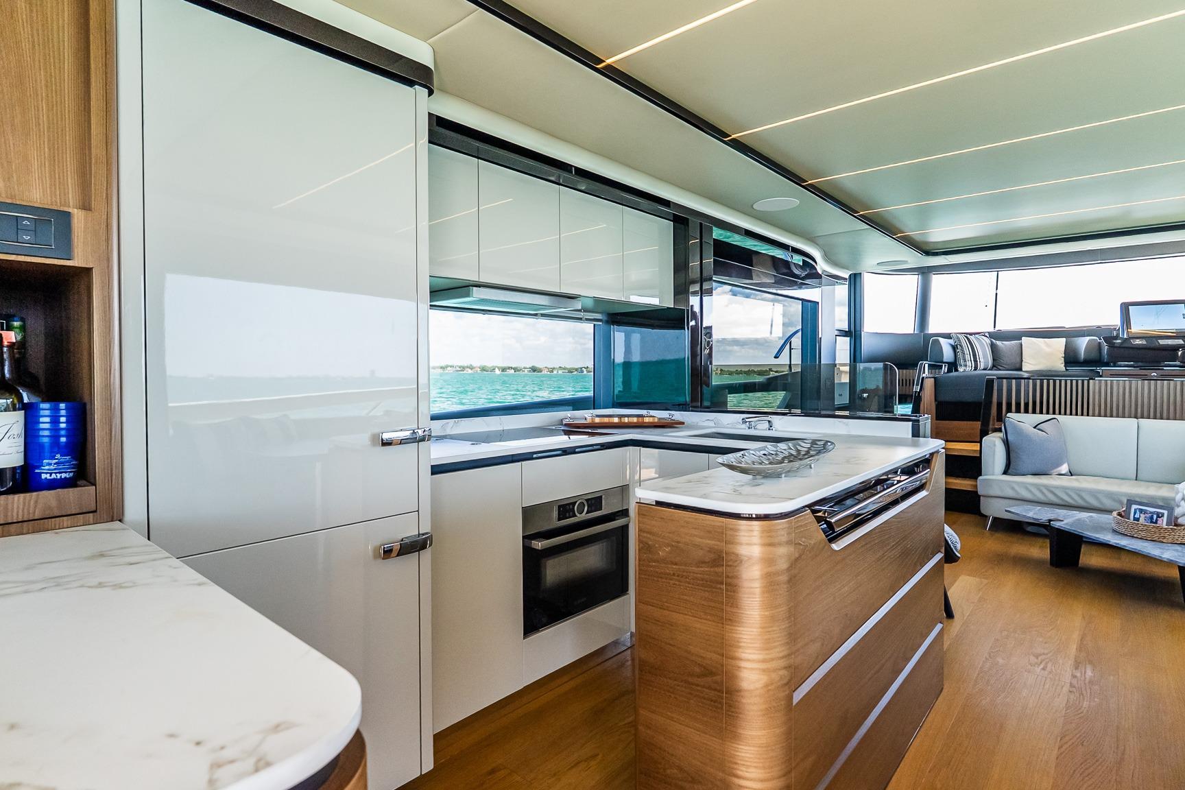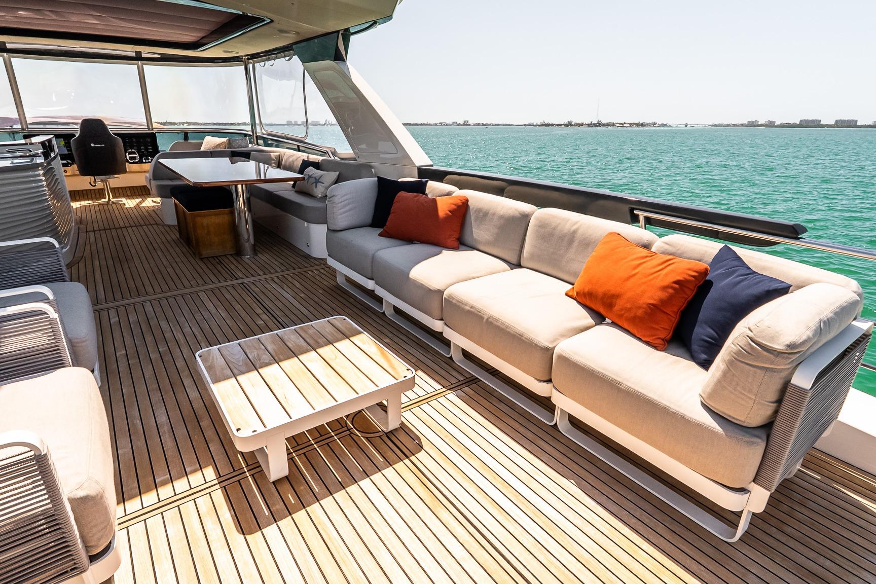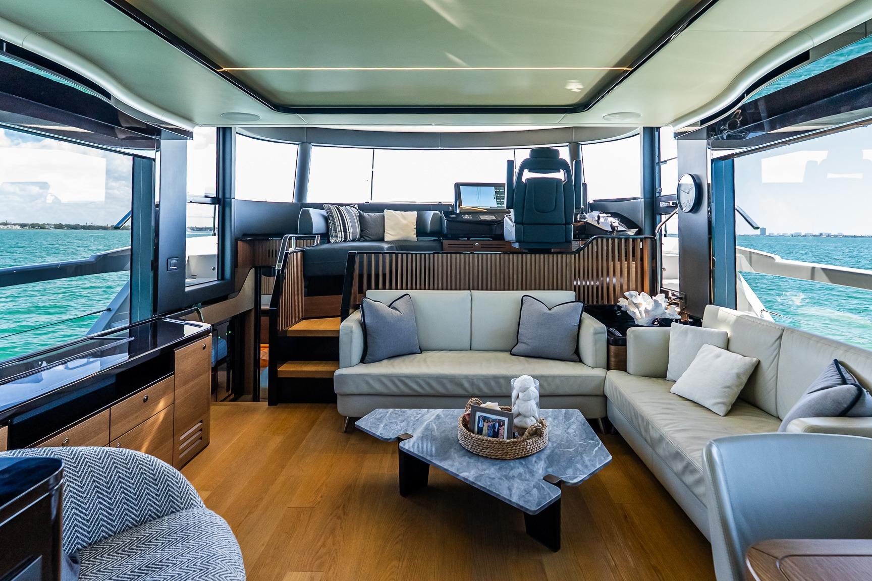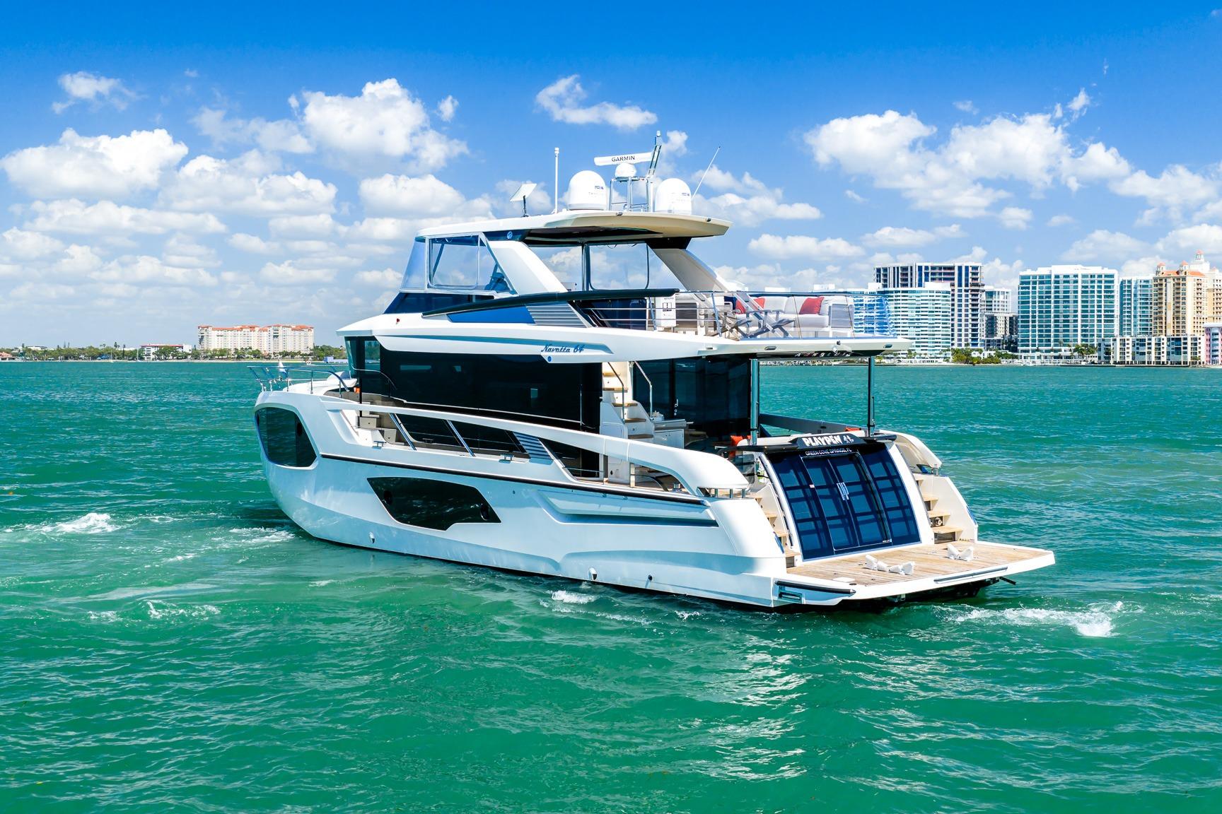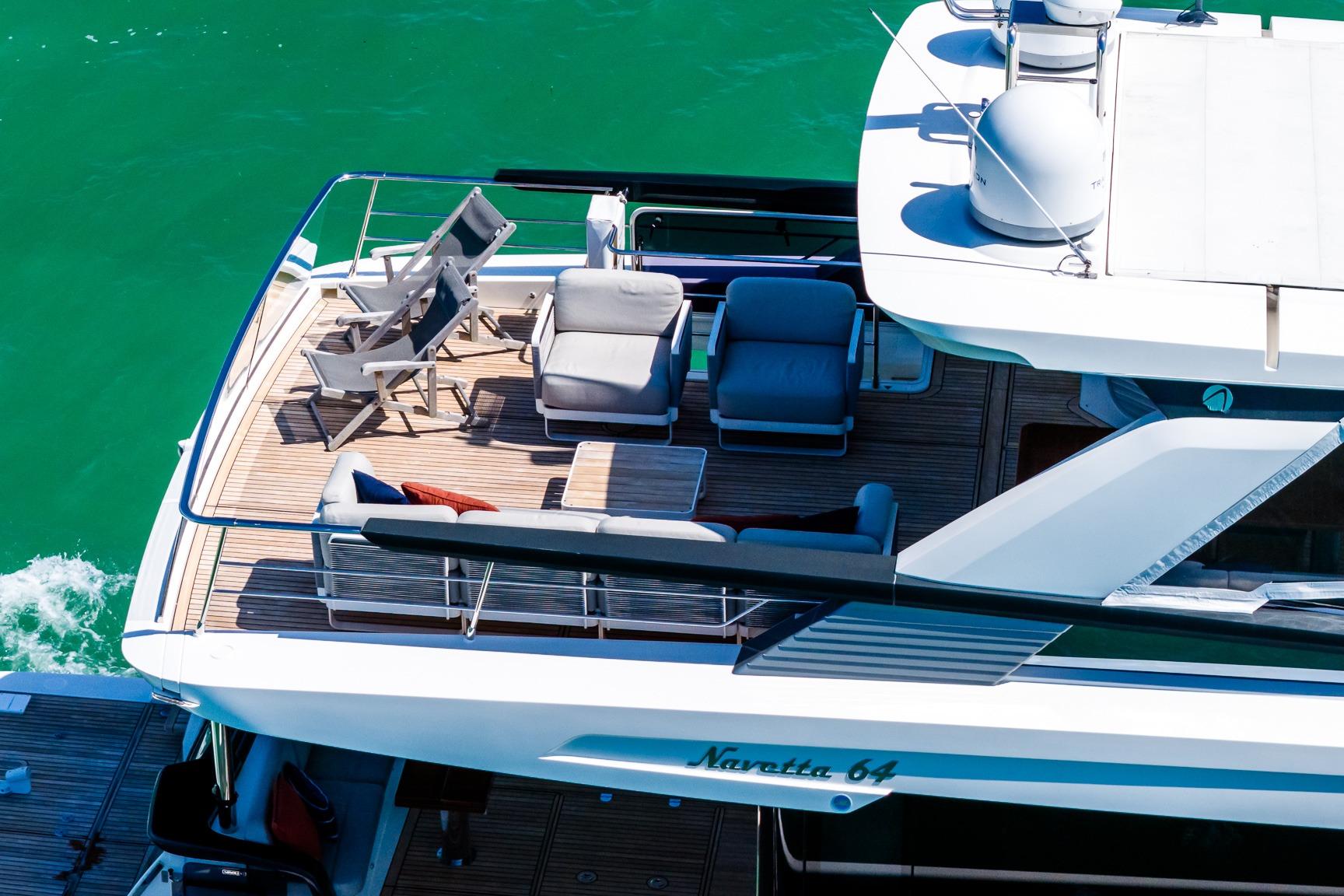 This 2022 64 Navetta blends long-range capability with elevated onboard living, offering a refined cruising platform designed for comfort, entertaining, and extended time aboard. Powered by twin Volvo D13 IPS 1350 HP engines, she delivers smooth, confident performance with the ease of joystick maneuvering, while Seakeeper 16 stabilization ensures exceptional comfort underway and at anchor.