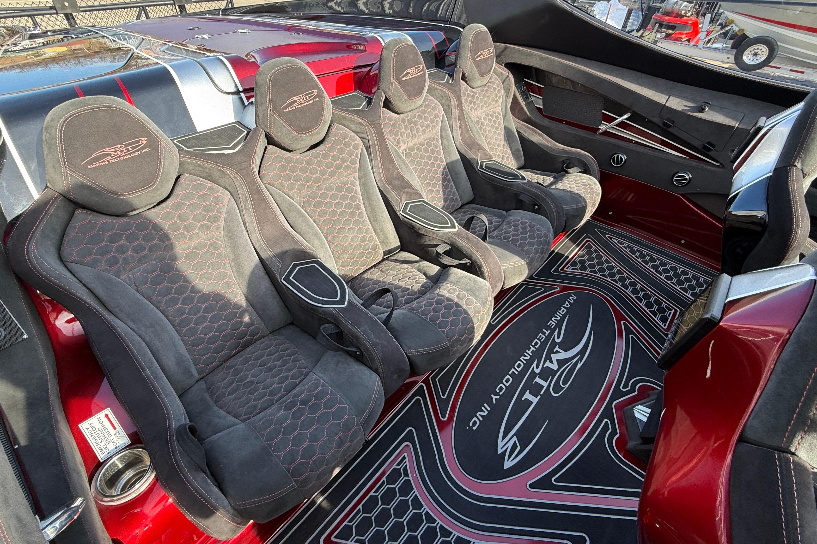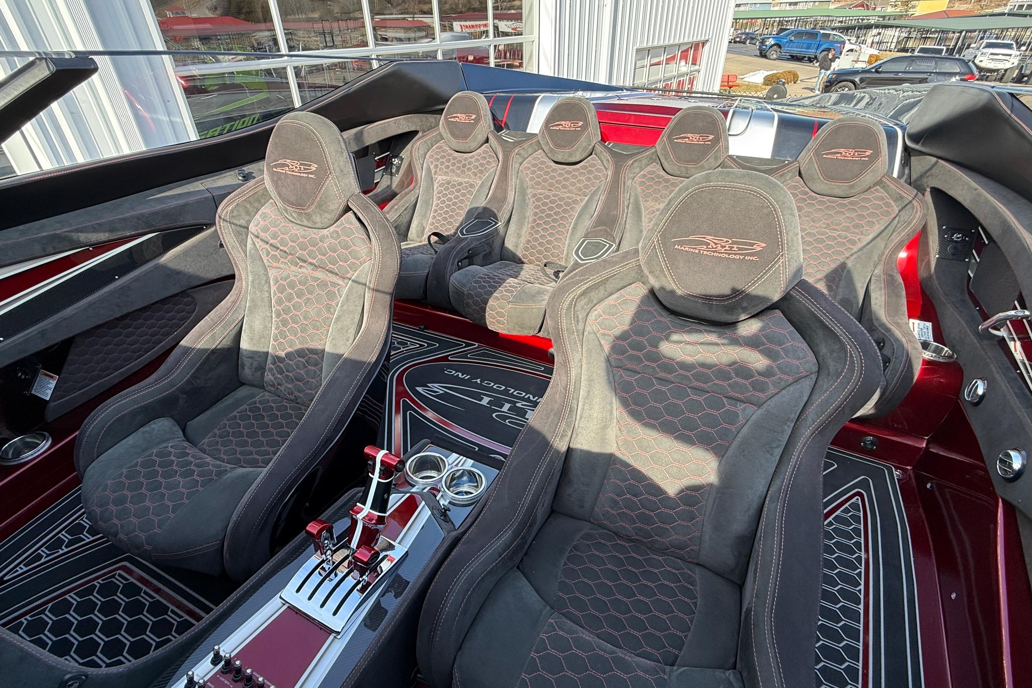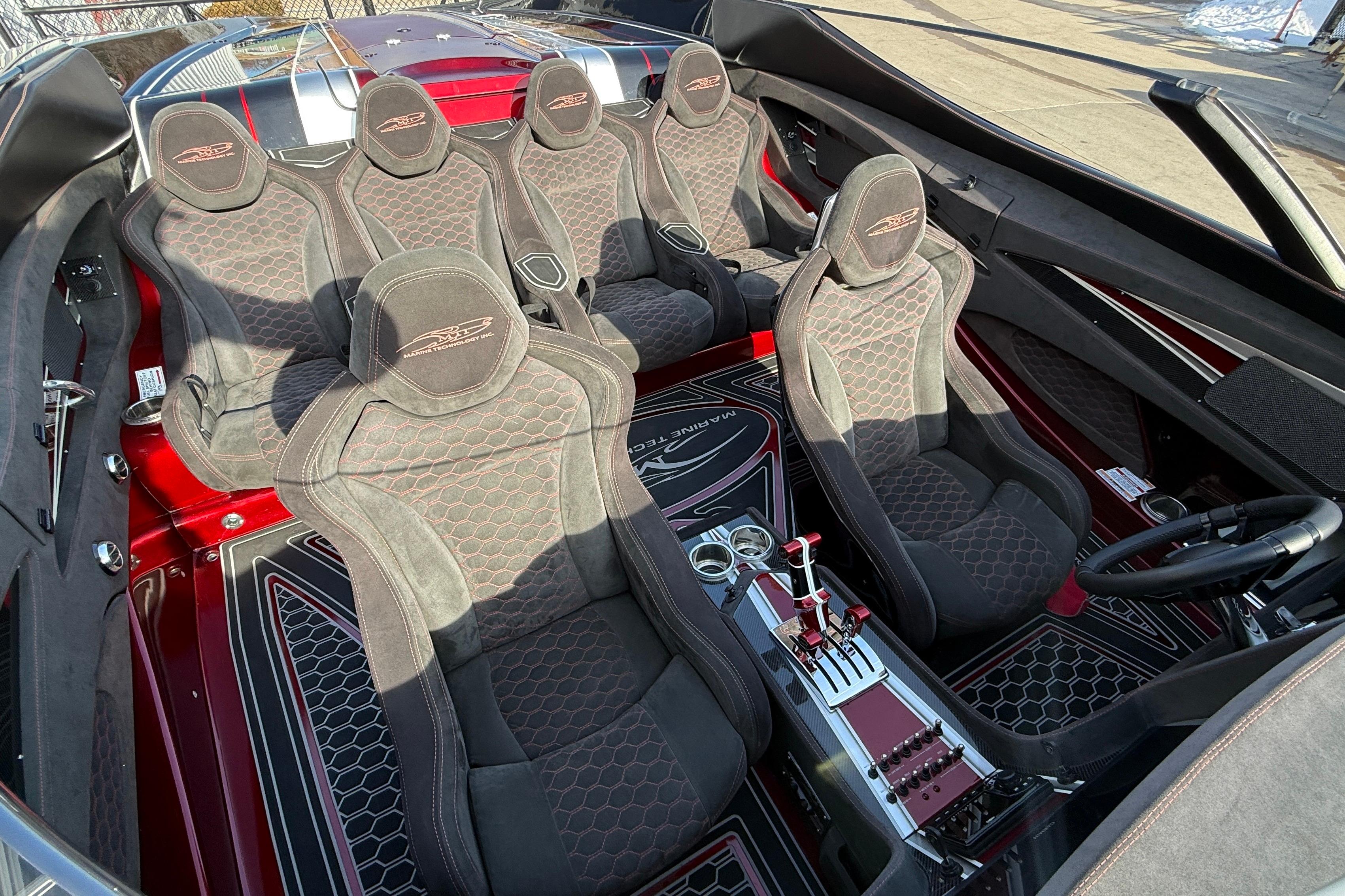 2018 MTI 43 R/P powered by Twin Mercury Racing QC4V 1100/1350 paired with M8 drives, Garmin GPS, Dual Mercury Vessel view, Garmin rear seat displays, dash blowers, rear seat blowers, sea deck flooring, painted dash panels, Alcantara interior, Heritage Tilt trailer included