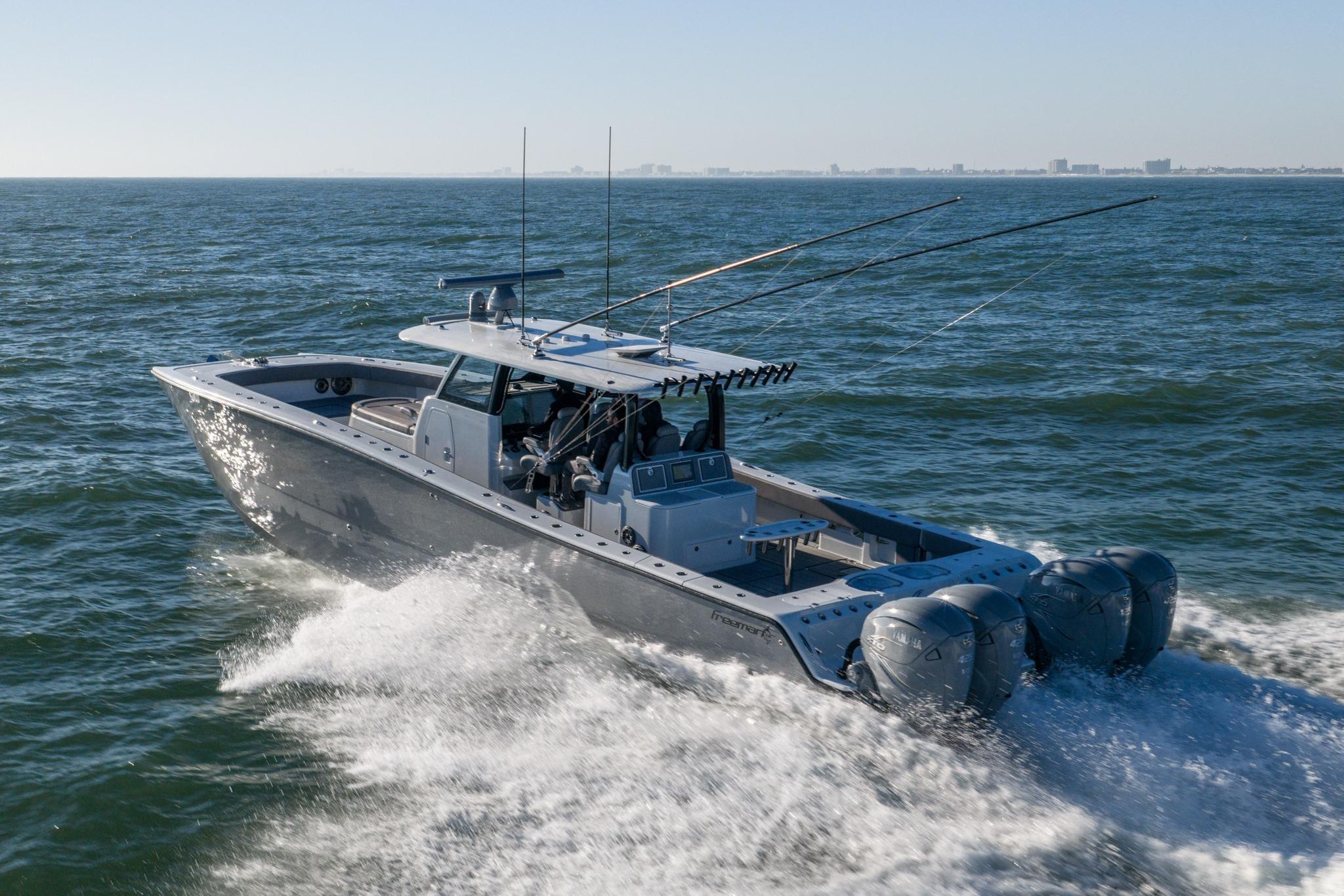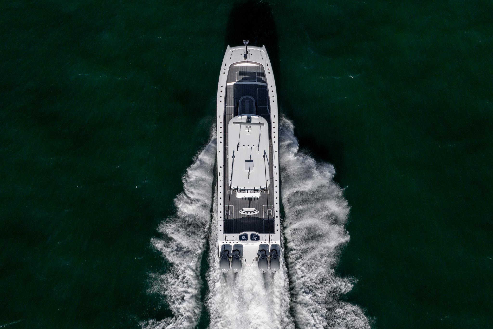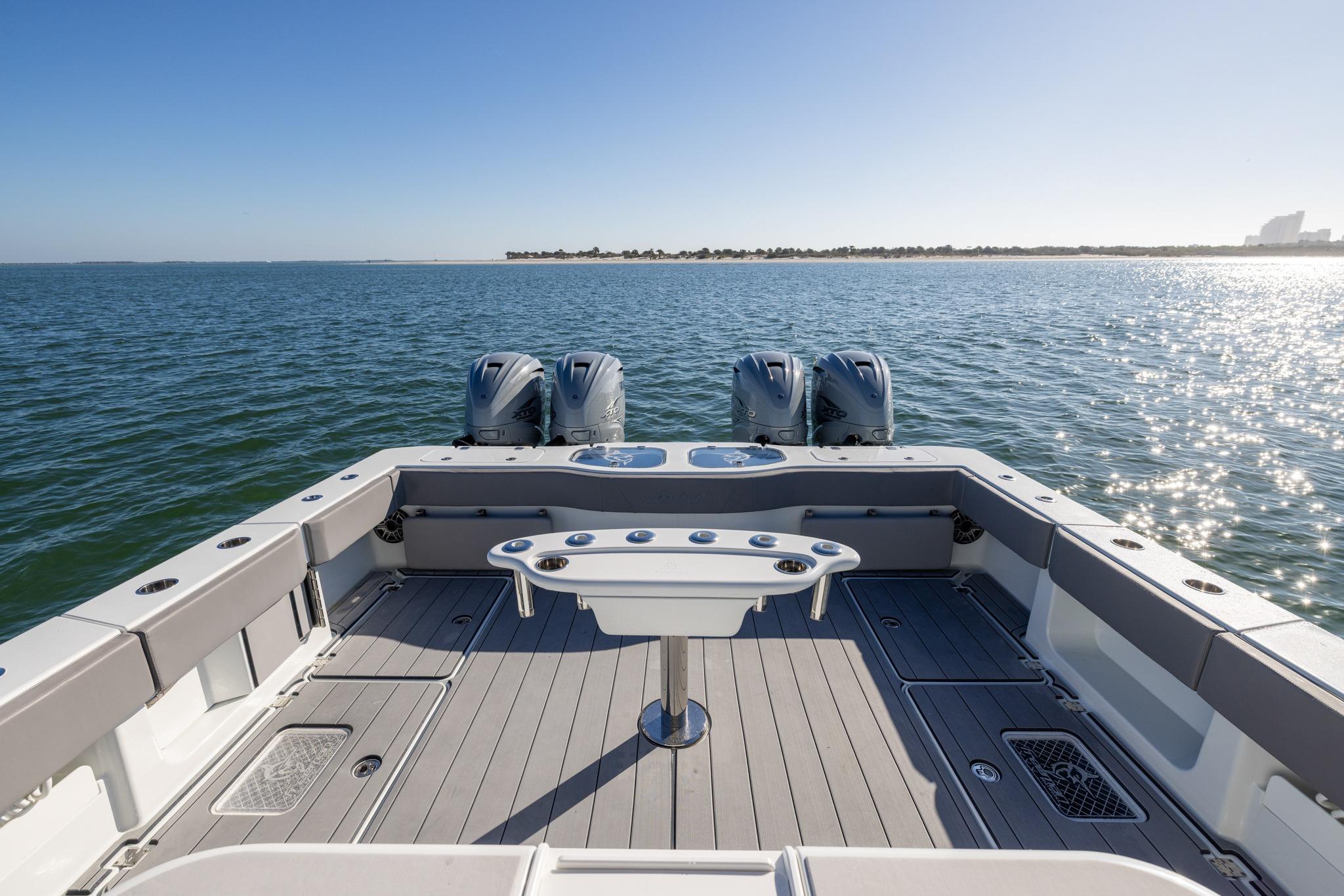Freeman 47 “JACKIE B” is powered by quad Yamaha 425 HP XTO outboards with approximately 900 hours and Yamaha Helm Master joystick control. Featuring a striking Haze Gray color scheme and heavily customized throughout, this vessel was designed with two priorities in mind: comfort and fishing. Captain maintained since new, she shows in exceptional condition and is fully dialed-in for her next owner. If preferred, Silver King can install factory rear mezzanine seating.