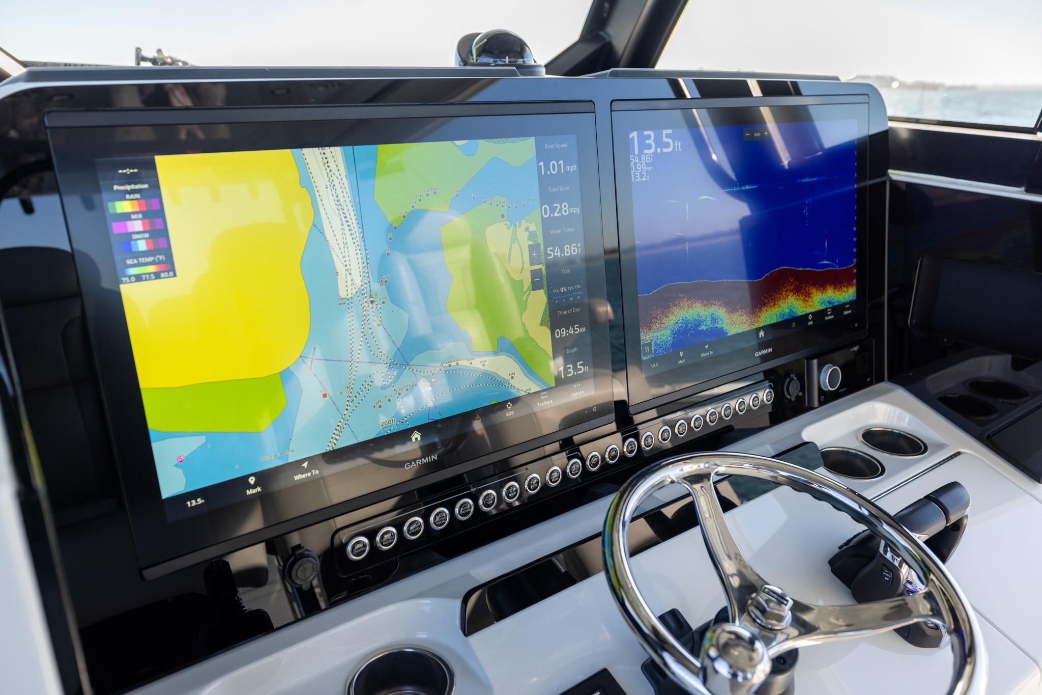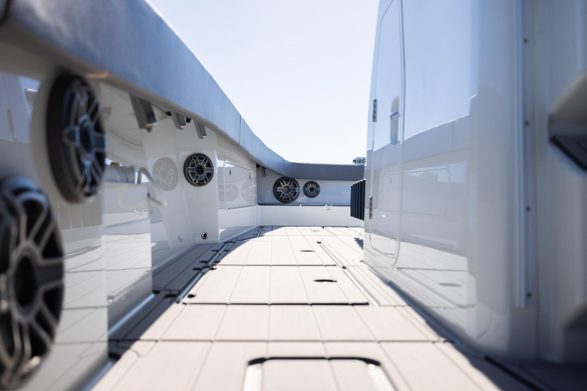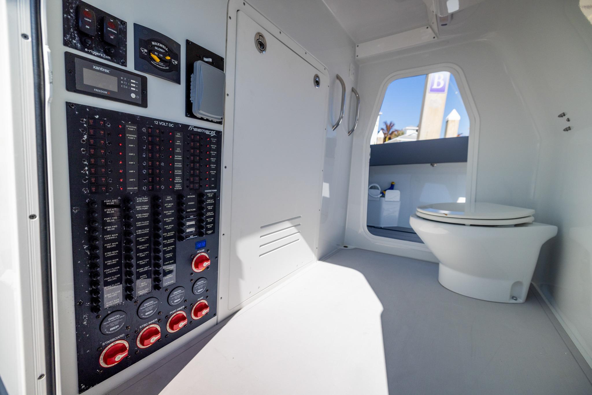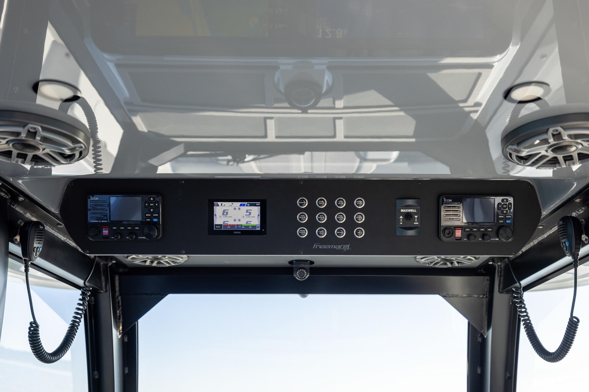 Freeman 47 “JACKIE B” is powered by quad Yamaha 425 HP XTO outboards with approximately 900 hours and Yamaha Helm Master joystick control. Featuring a striking Haze Gray color scheme and heavily customized throughout, this vessel was designed with two priorities in mind: comfort and fishing. Captain maintained since new, she shows in exceptional condition and is fully dialed-in for her next owner. If preferred, Silver King can install factory rear mezzanine seating.