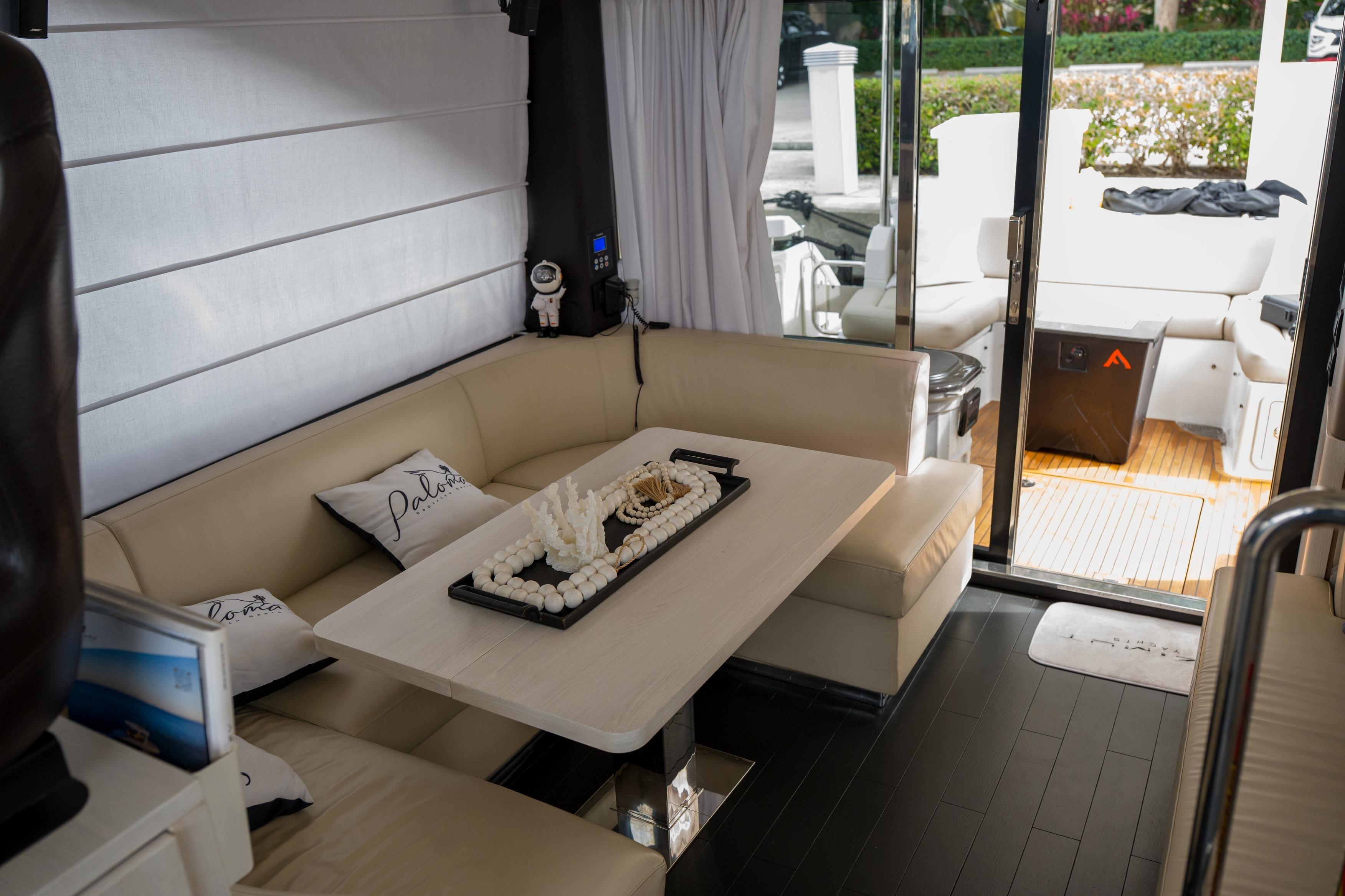 - U-Shape sofa forward to starboard side with wood table with stainless steel base