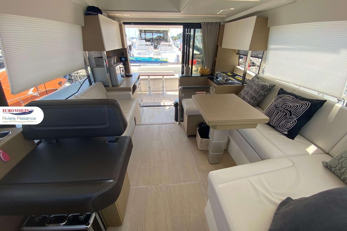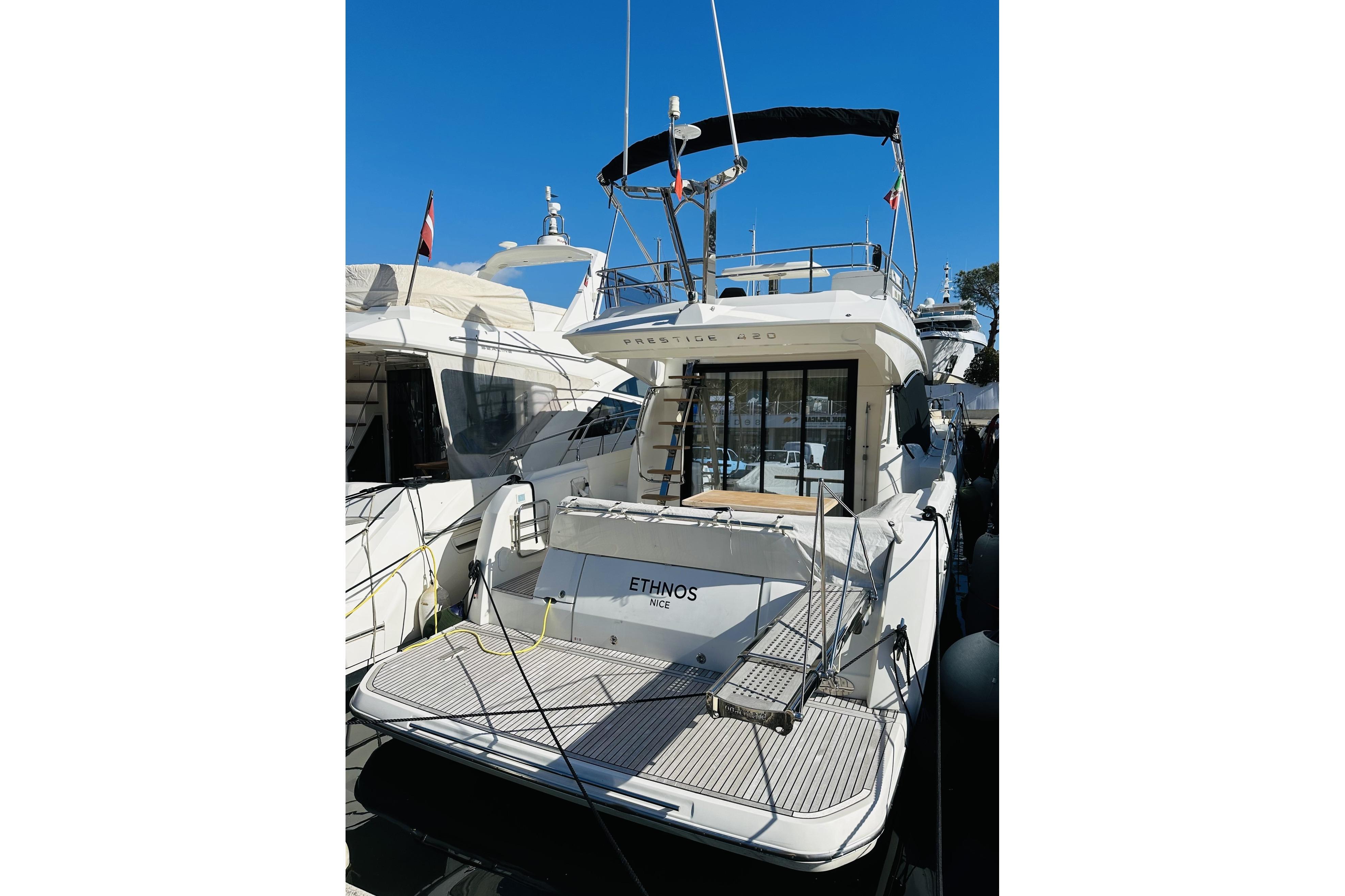 Superbe PRESTIGE 420 FLY de 2022, motorisée en Cummins 2 x 425 chevaux, disponible immédiatement ! Ce yacht, équipé de tout le nécessaire pour un confort optimal, inclut la climatisation, un groupe électrogène, une plateforme et une passerelle hydraulique. Elle promet une expérience de navigation exceptionnelle et est prête pour votre saison 2026.