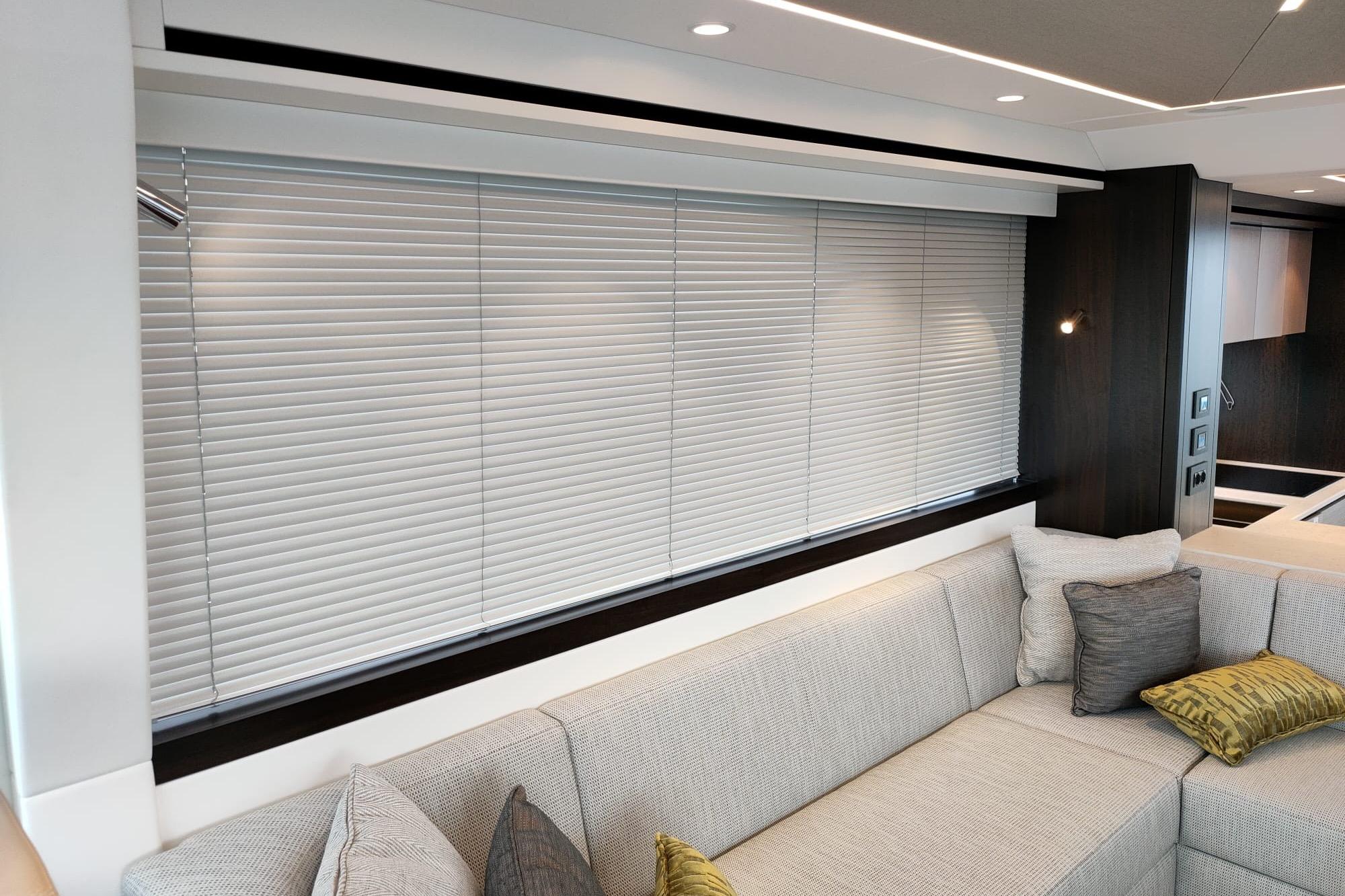 Electric venetians in main deck saloon and galley