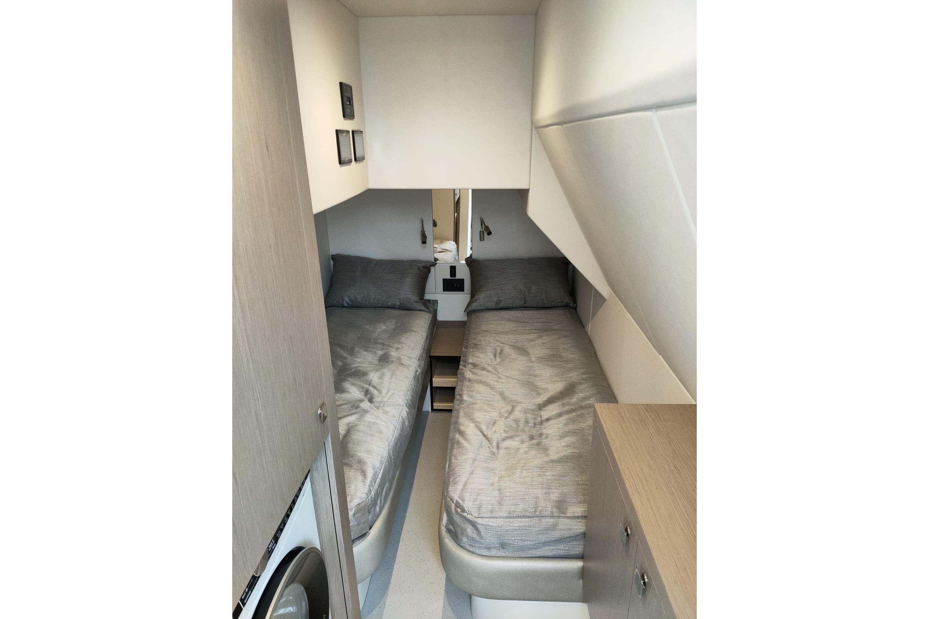 Access to the generous guest cabins is provided via the lower helm and elevated companion seating, giving visitors a smooth and welcoming transition to their quarters.
