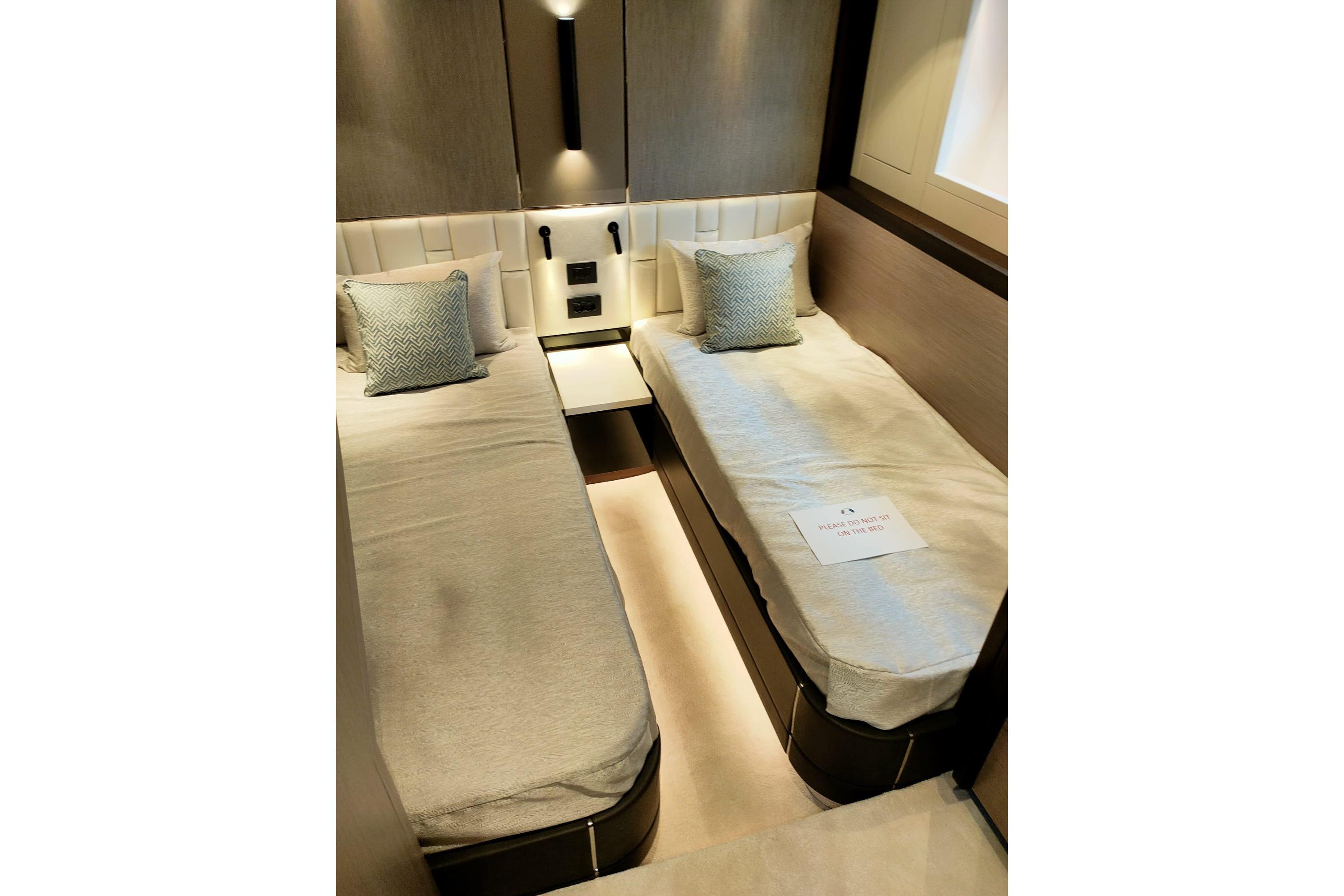 The sumptuous full-beam master cabin amidships benefits from its own dedicated staircase to port, offering outstanding privacy and a true suite-like feel.