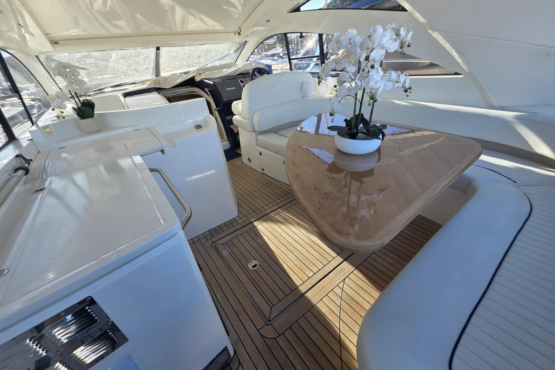 - Cockpit bar with refrigerator, sink, hot and cold water, insulated coolbox