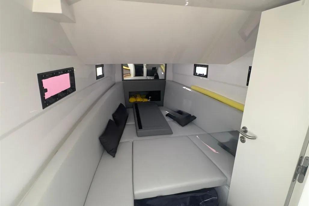 - Cabins / Berths: Day boat configuration with convertible bow and aft sunpad areas (no enclosed cabins)