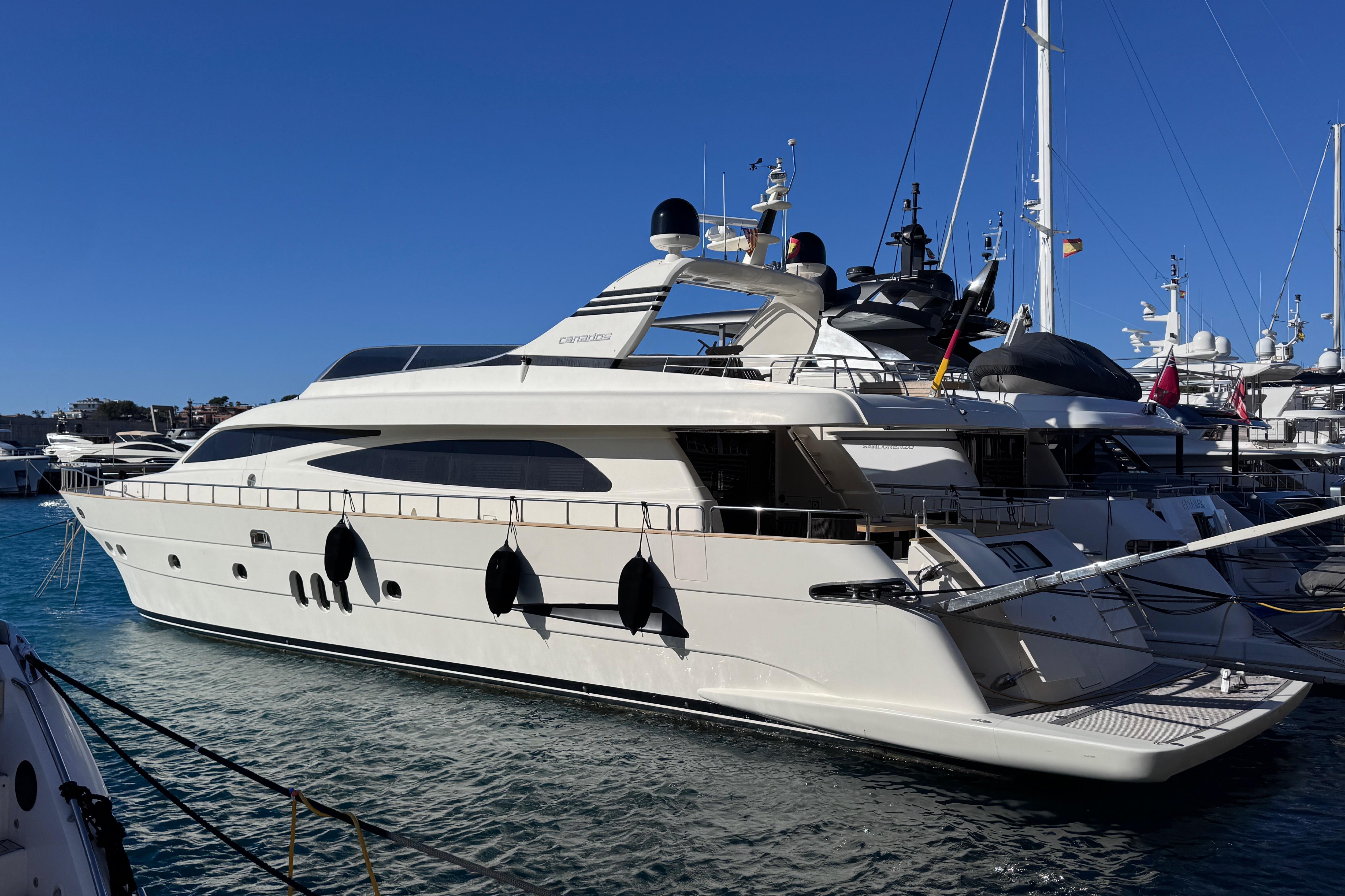 Originally built to MCA standard (with an upgraded fire extinguishing system, double pumps for bilges, service and sewage, double generators etc) and had a commercial registration as a demonstration vessel for Canados factory.