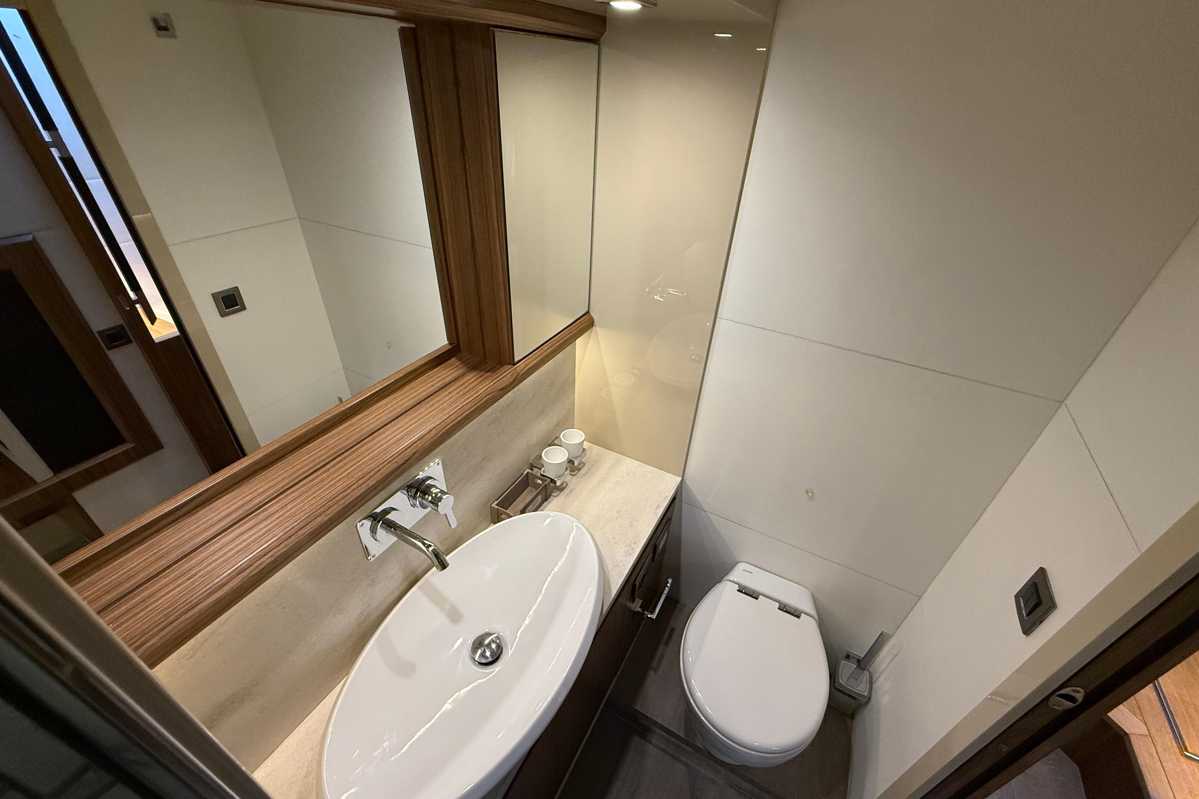 Full-beam owner’s suite amidships with large hull windows