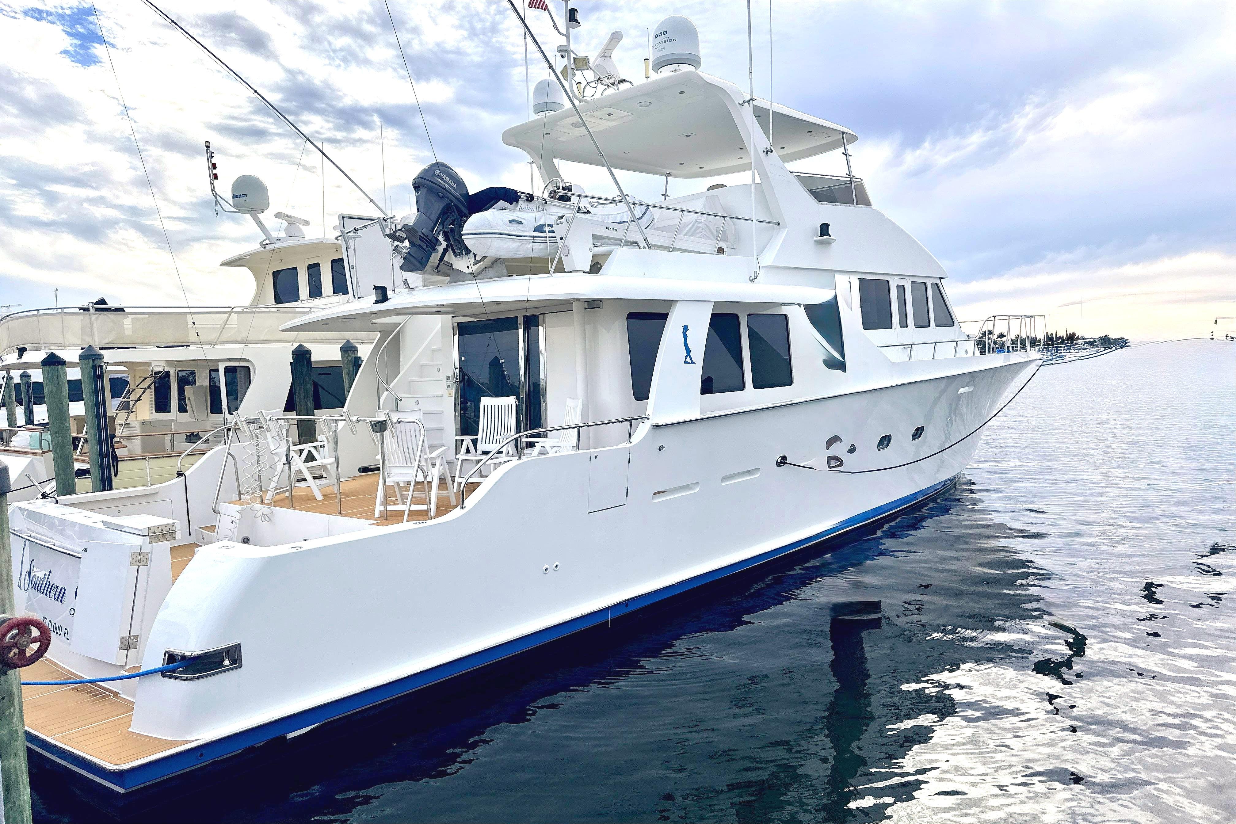 "Southern Lady" is a luxury motor yacht and fishing machine - she's a notable example of an owner/operator who doesn't spare a dime spared. Any yacht enthusiast must come aboard to get a sense for what "like new" feels like for her vintage. The yacht offers outdoor comfort & enjoyment, featuring a generous mezzanine seating area, and flybridge complete with grill, wet bar, and ample seating for guests.