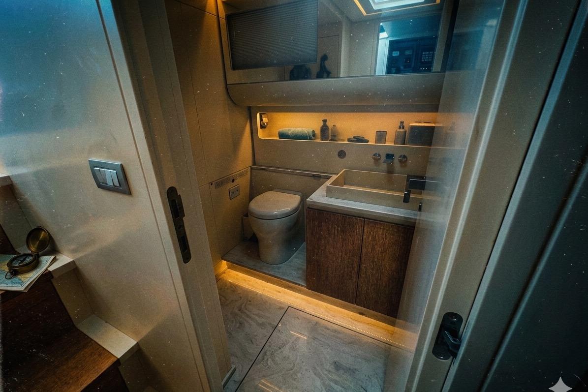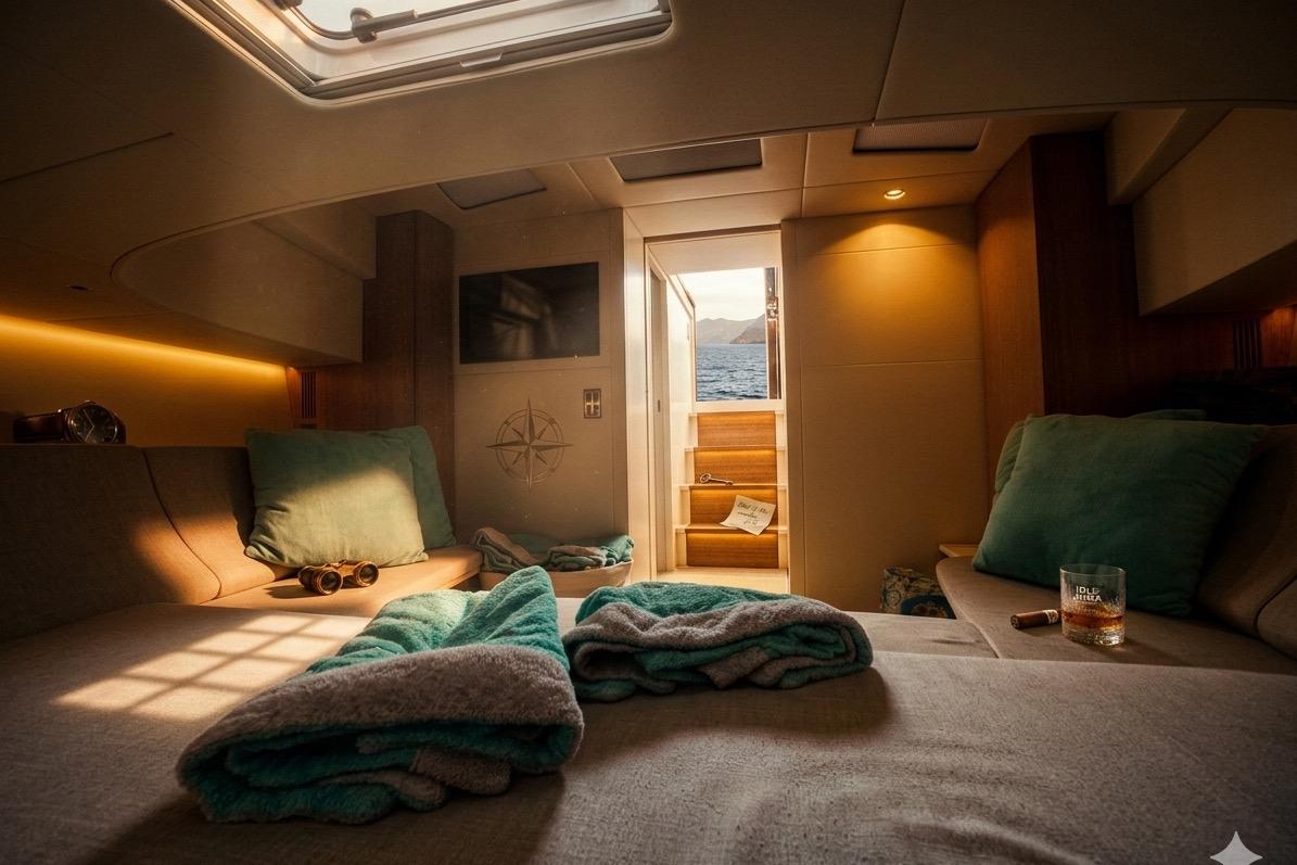 • The yacht’s open plan can include optional interior layouts, with premium materials and finishes available to custom order.