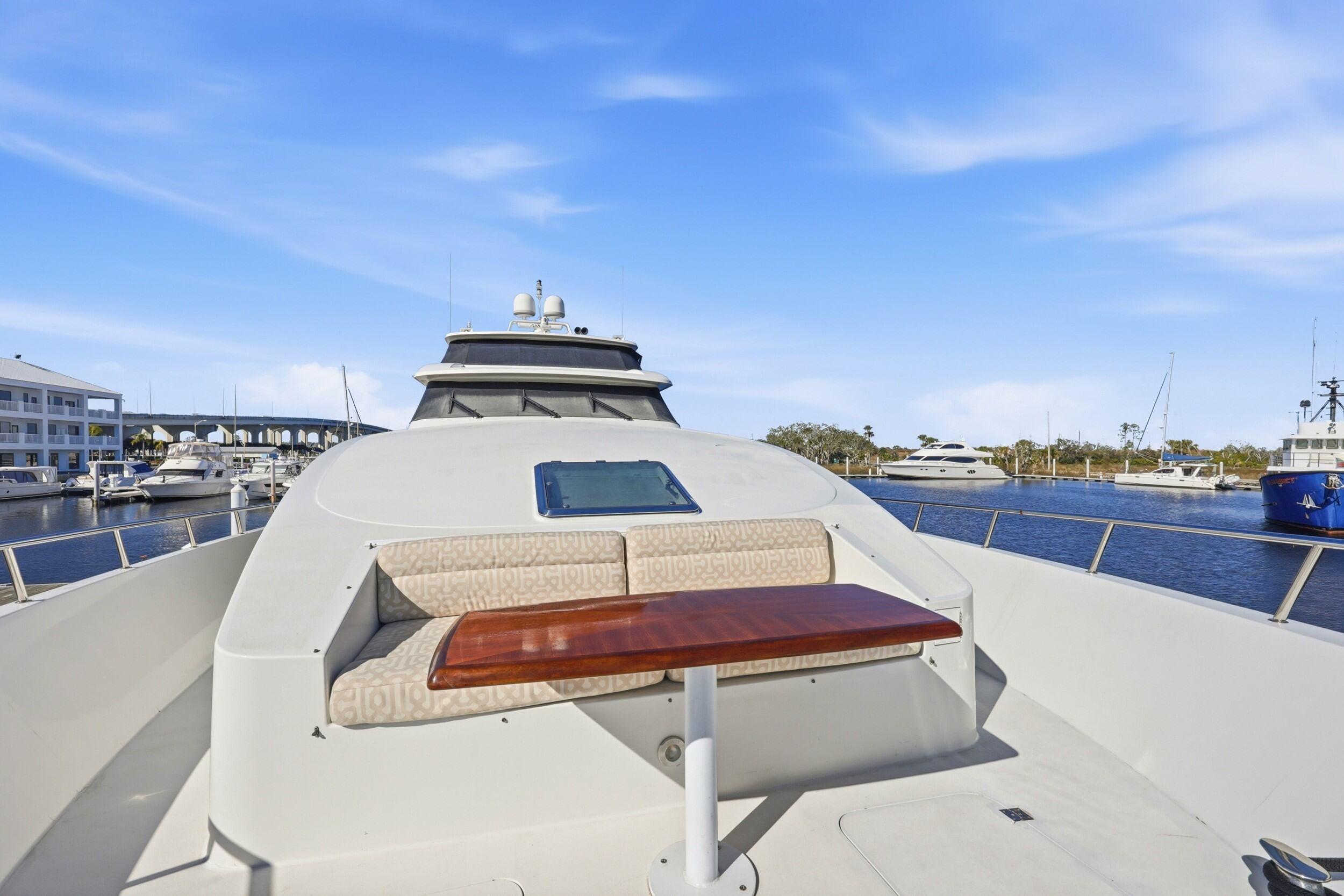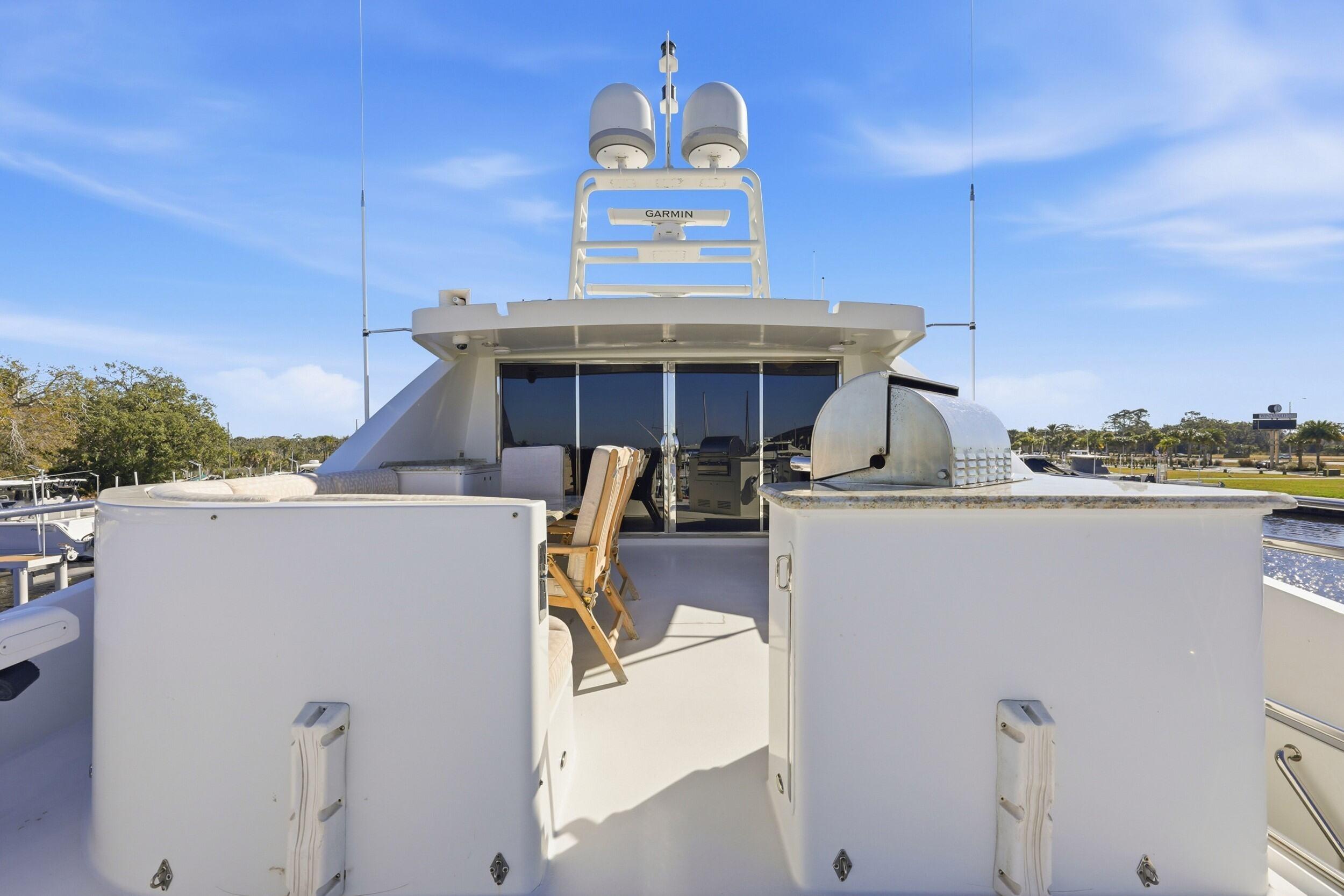 Introducing FOOTLOOSE, the epitome of Cheoy Lee's Bravo Series craftsmanship and one of only three 95-foot Raised Pilothouse models ever built. Launched in 2008 from Hong Kong's legendary yard, this 96' 6" fiberglass masterpiece combines classic lines with cutting-edge seaworthiness, designed by Michael G. Burvenich and Lisa Pirofsky. At 156 GT, with a 22' (6.7m) beam and ultra-shallow 5'1" (1.55m) draft, she accesses hidden gems while delivering superyacht luxury for the modern explorer. Propulsion & Range: Built to Conquer Horizons Twin Caterpillar C32 diesels (1,652 HP each, total 3,304 HP) power FOOTLOOSE to a thrilling 26-knot top speed and efficient 18-knot cruise. Her 5,300-gallon fuel tanks yield a 1,267-nm range, ideal for transoceanic runs or island-hopping. Quantum zero-speed stabilizers ensure silky rides and reliability. Upgraded Garmin electronics suite includes Four Garmin 8617's, radar, autopilot, and AIS for effortless command from the raised pilothouse or flybridge helm. Accommodations: Intimate Elegance for 8