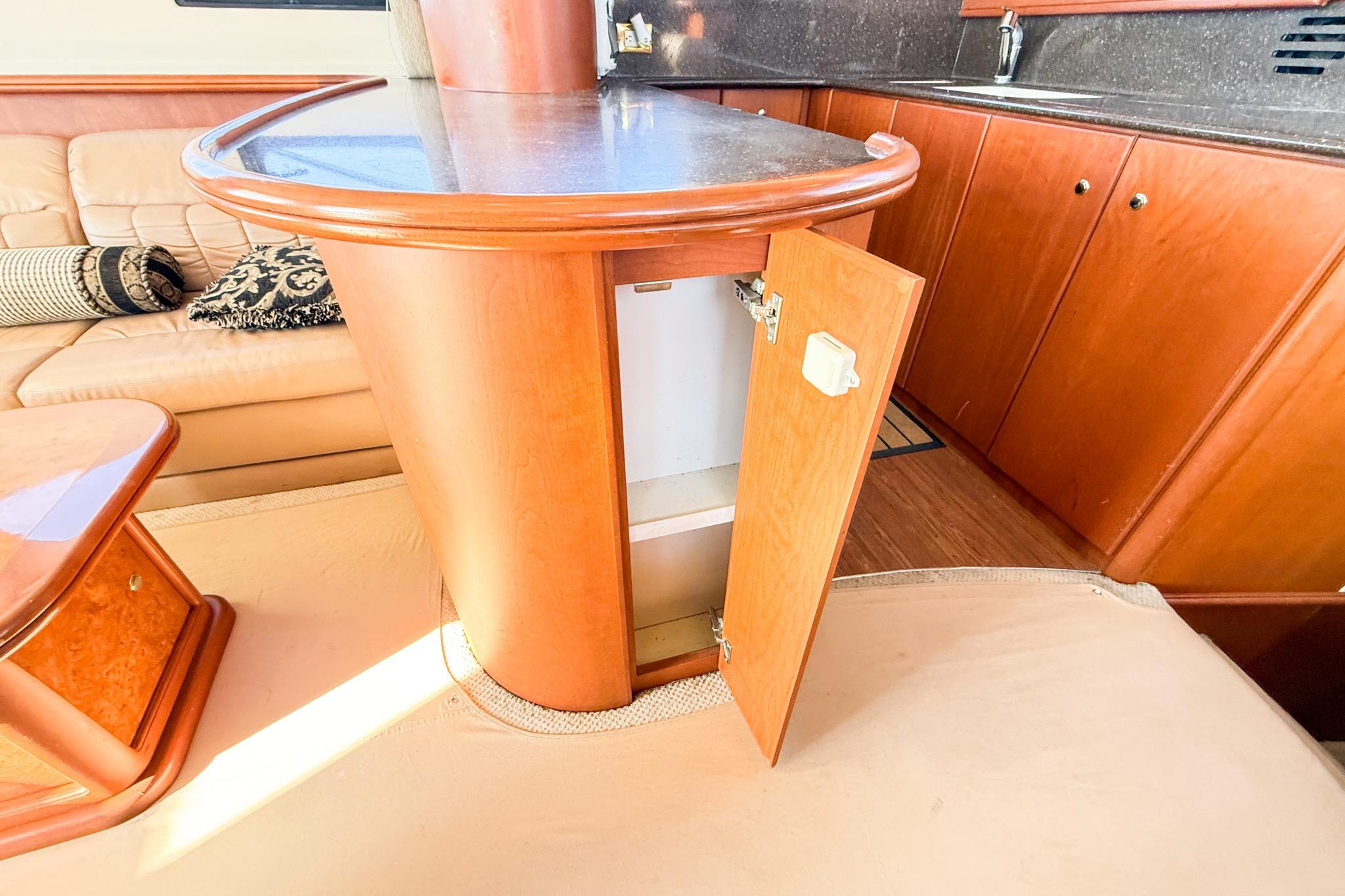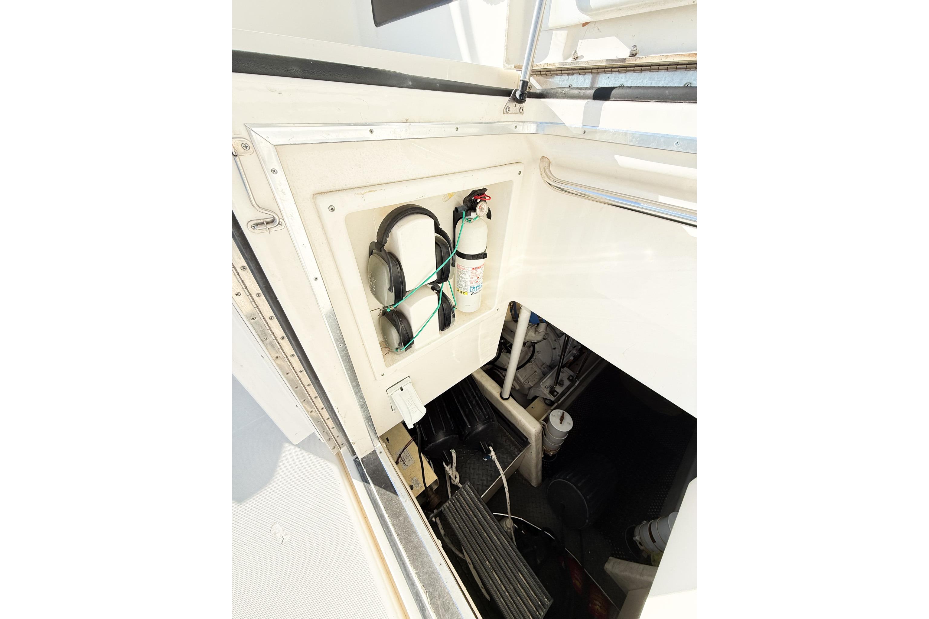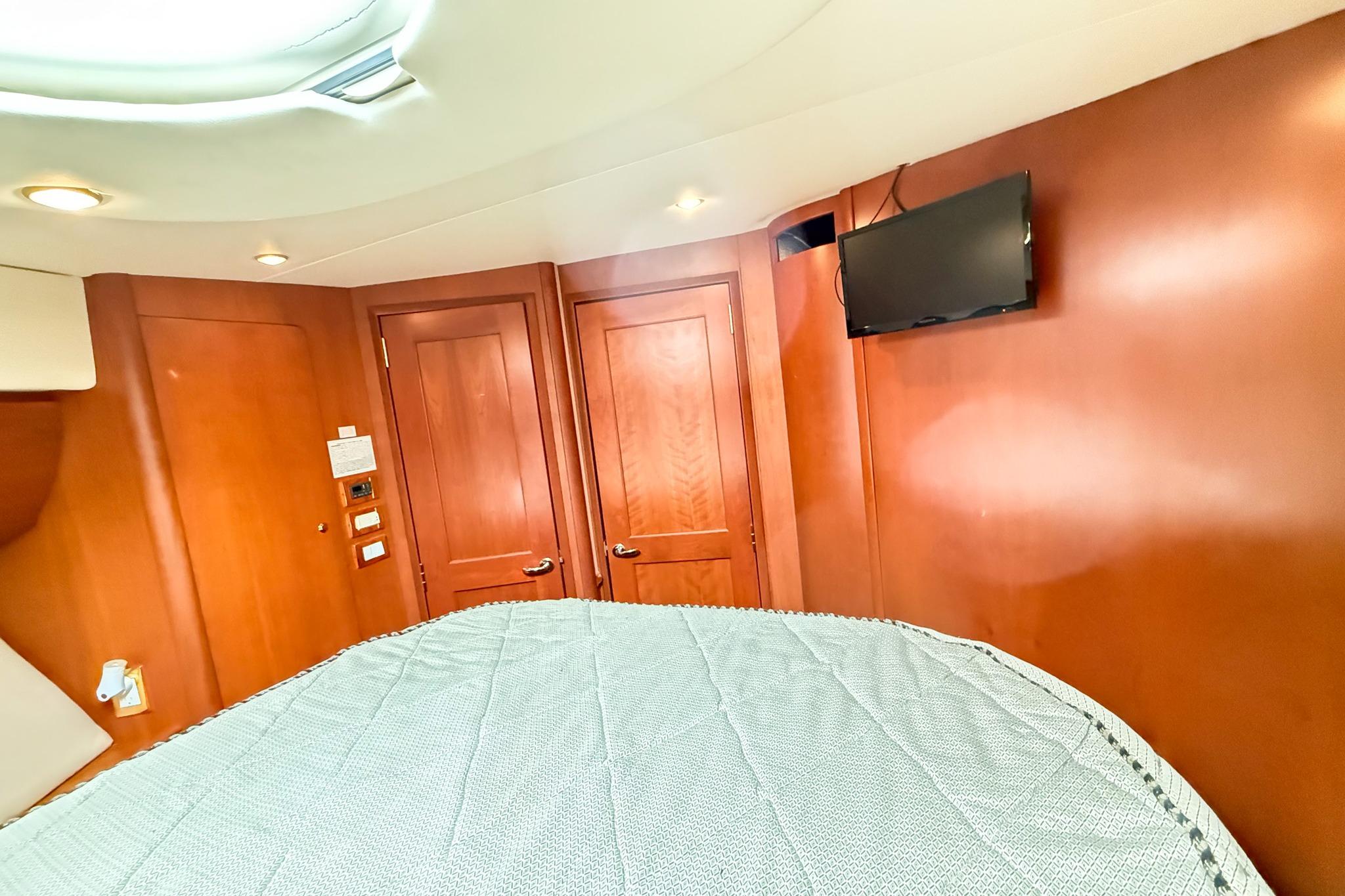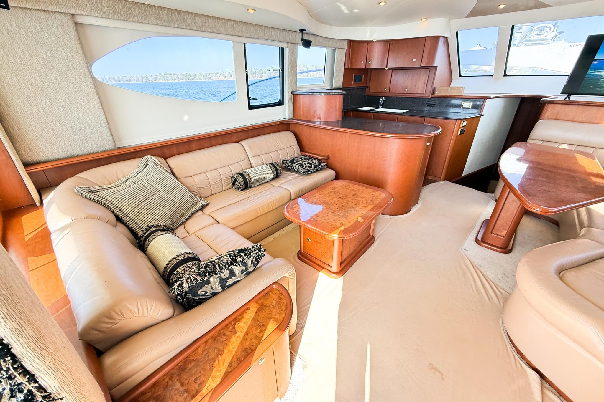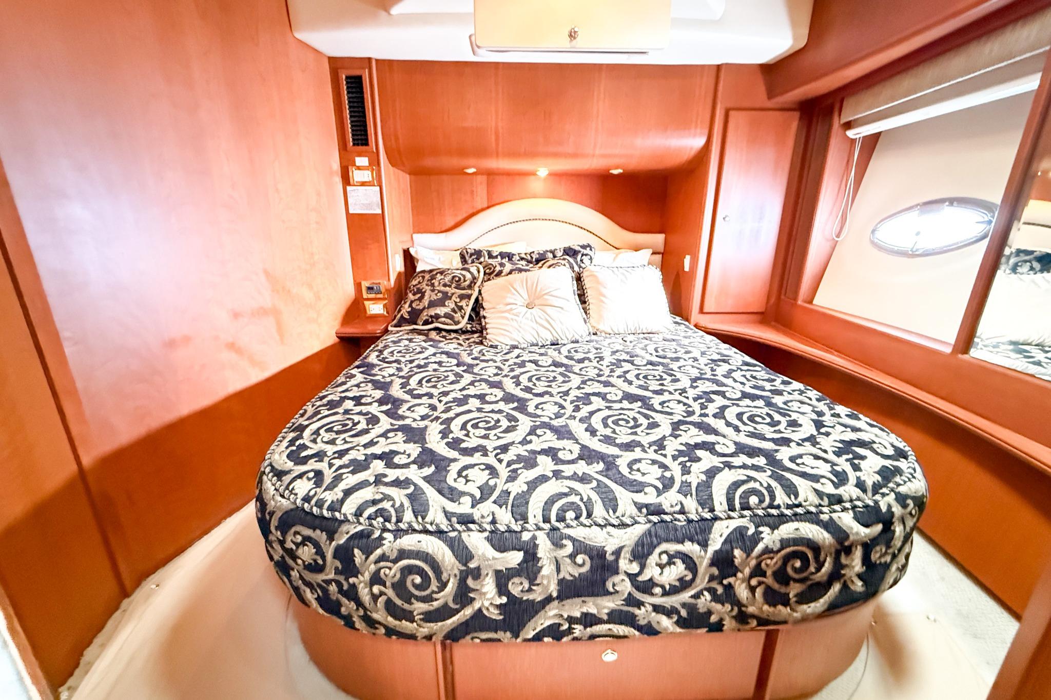 Powered by twin Volvo Penta D12-715 turbo diesel engines paired with ZF transmissions and supported by a 19kW Kohler generator, she delivers smooth, reliable performance. Her five-zone air conditioning and heat system keeps all three staterooms and living spaces comfortable year-round.