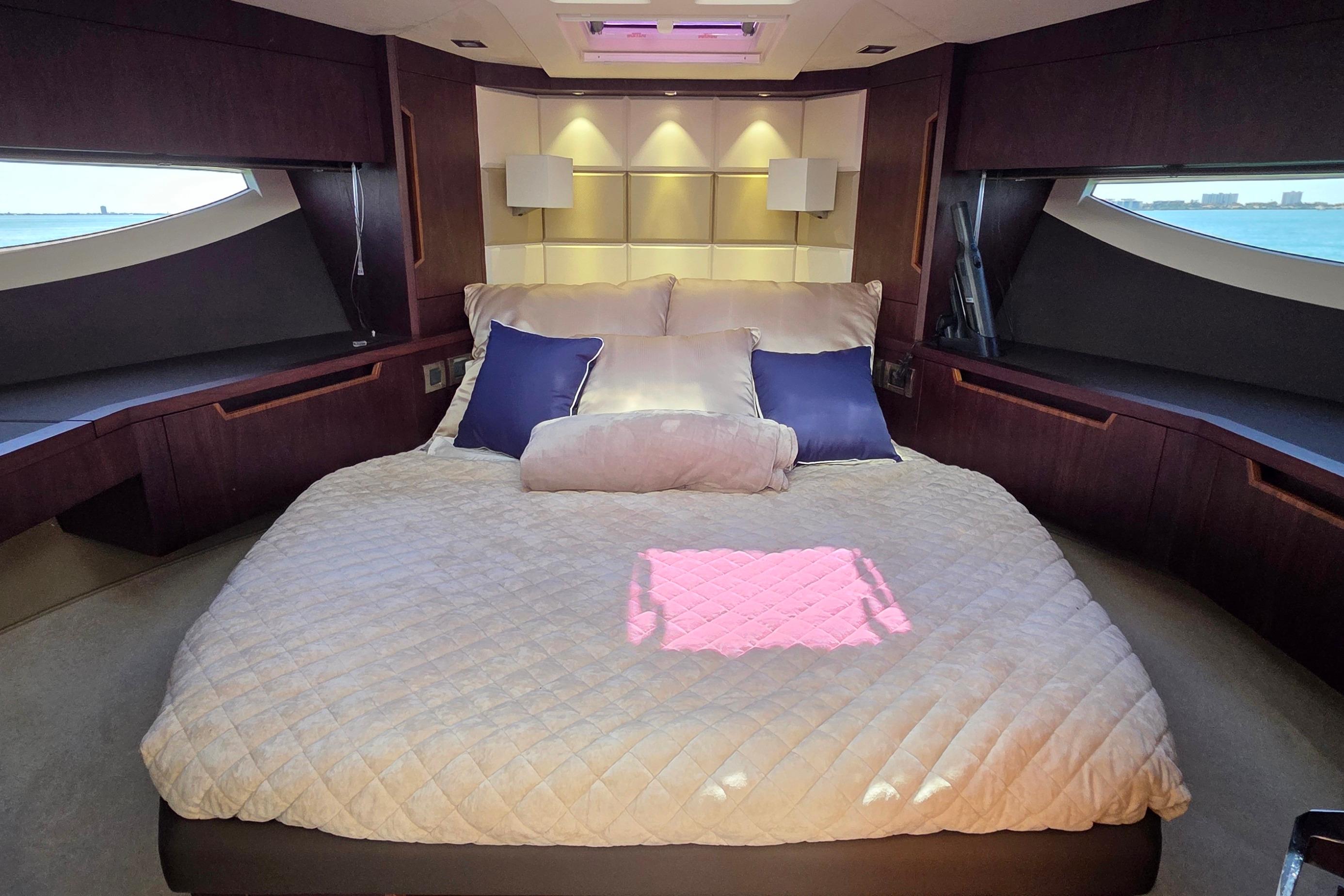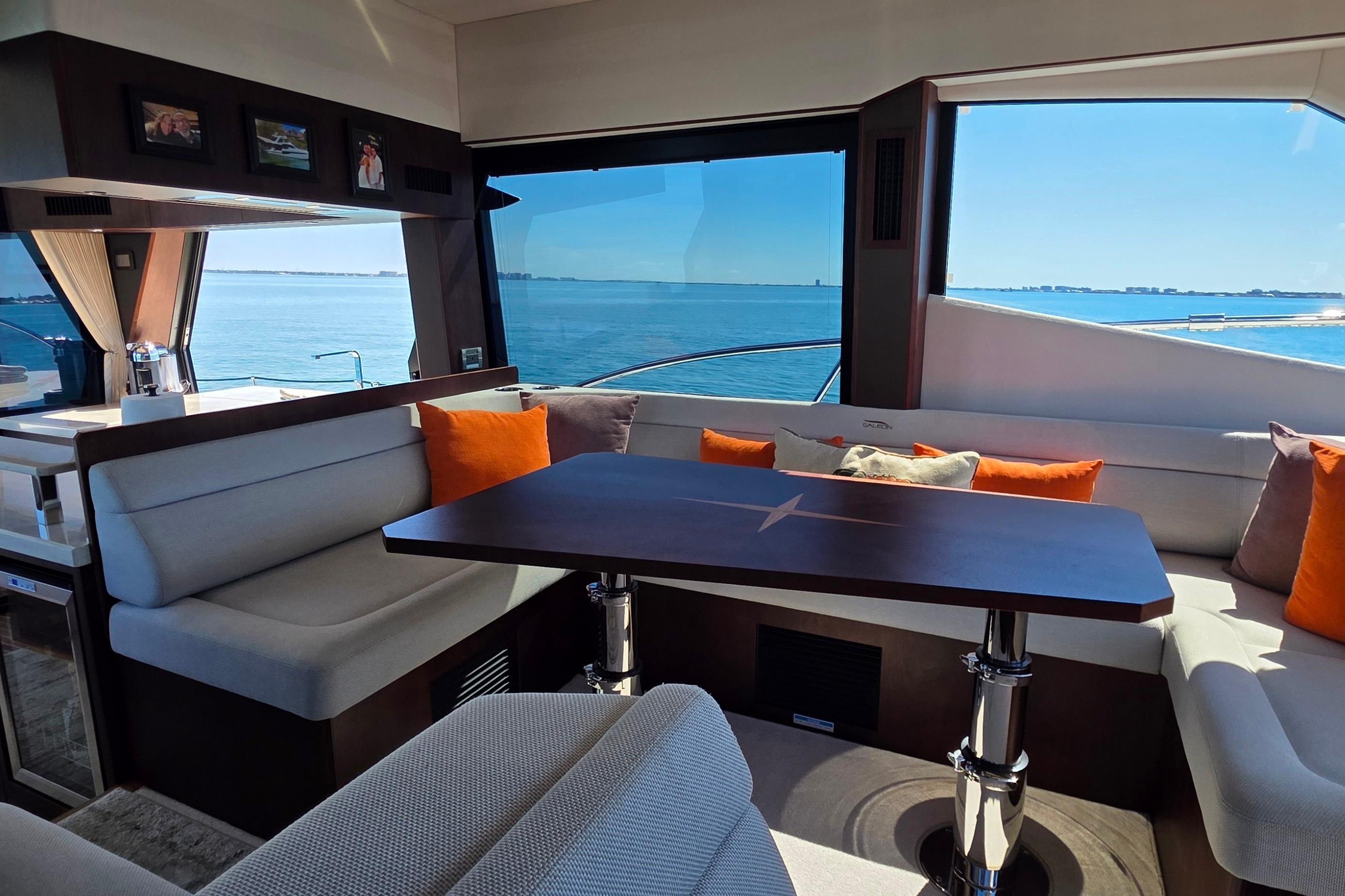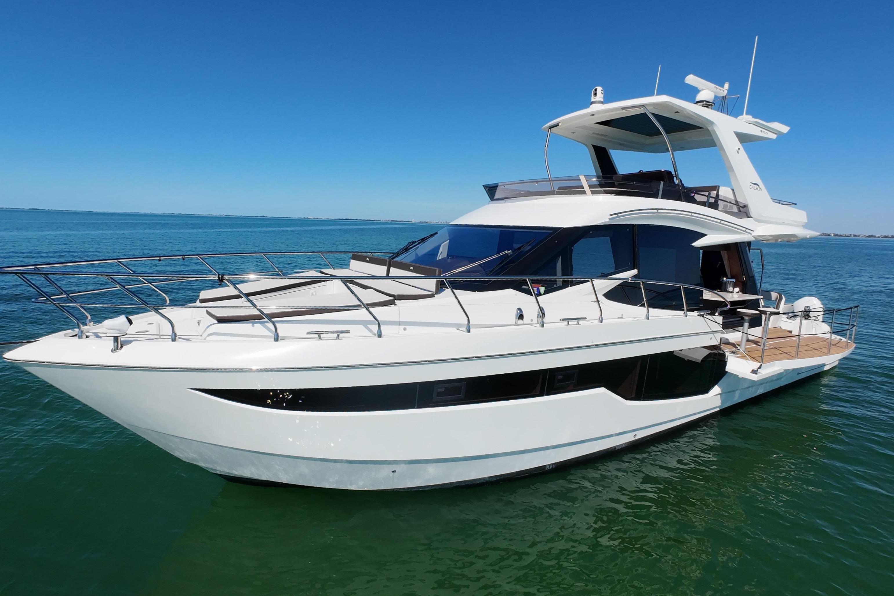 • Fresh Water Yacht for much of its life • Meticulously Maintained • Twin 670hp Volvo Penta D11 approximately 405 hrs • Seakeeper 6 Stabilizer • Bow and Stern Thrusters • Yacht Controller with Two Remotes • FLIR M64C Stabilized Thermal Night Vision Camera Linked to Raymarine Augmented Reality • Raymarine Twin 12” Axiom MFD’s Main Helm • Raymarine Twin 12” Axiom MFD’s on Flybridge • Raymarine Autopilot • Raymarine Satellite Weather • Raymarine VHF RAY91 AIS VHF Transmitting System • Raymarine Magnum 4kw 48”Open Array Radar • Raymarine Axiom+ 12” Chartplotter • Starlink For Maritime internet • Beach Mode Foldout Port and Starboard Balconies • Hydraulic Swim Platform • Cockpit Settee on 360 Degree Swivel • Aft Facing Camera • Two Engine Room Cameras • Wine Chiller in Salon • 43" LED TV on Televator in Salon • Electric Grill on Flybridge • Electric Grill Behind Rotating Settee • Hydraulic Tender Garage Hatch • Dometic Fidge/Freezer in Tender Garage • Kenyan 4 Burner Cooktop in Galley • Dual Refrigerators in Galley • 32" LED TV in Master • Washer / Dryer Combo in Master • Cablemaster • Captain's fridge drawer on Flybridge • Wet Bar and Grill on Flybridge • Ice Maker on Flybridge • Blue Accent and Underwater LED Lighting • Canvas Flybridge Seating Covers • Canvas Flybridge Helm Covers • Full Exterior Sunshades Front and Side Windows