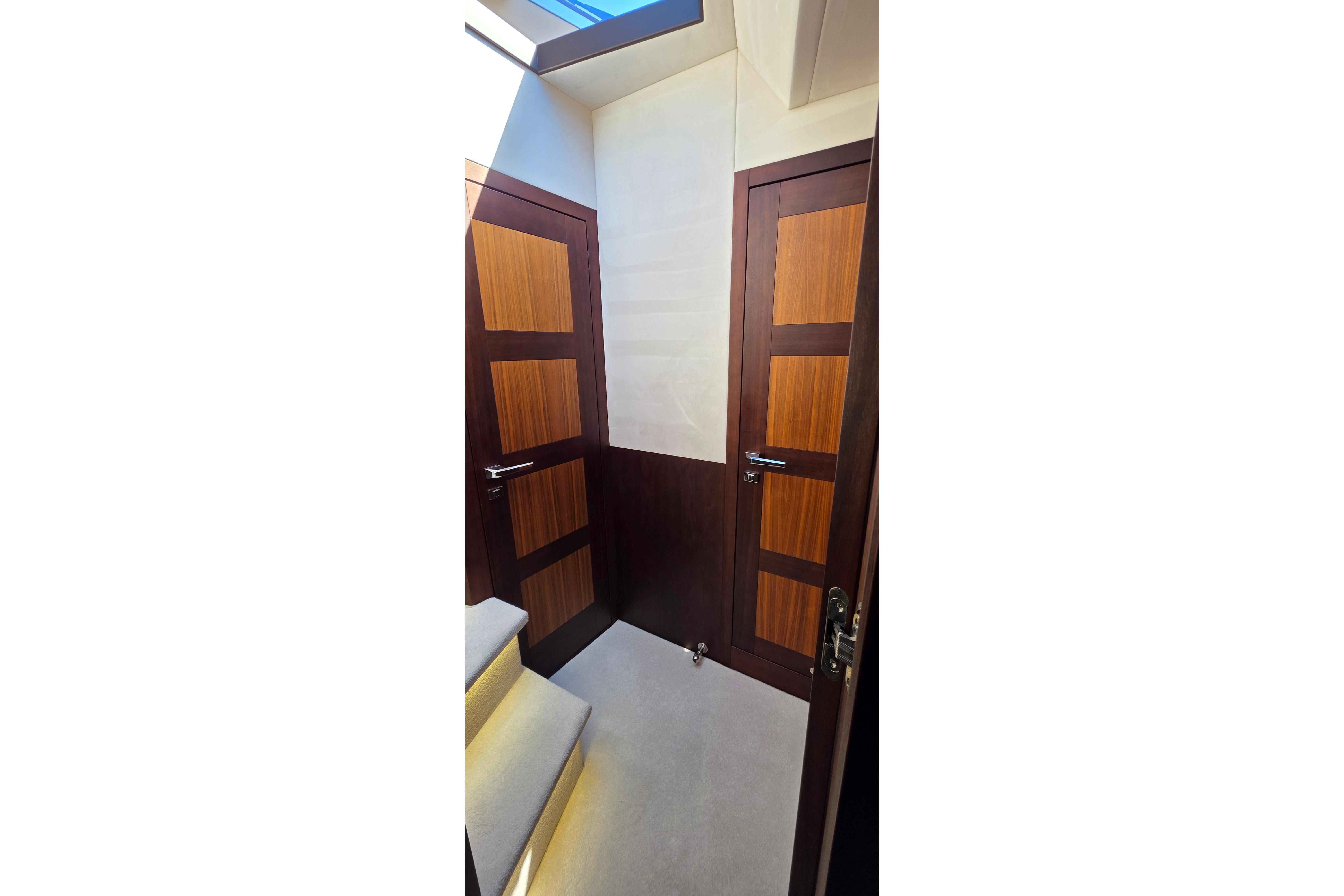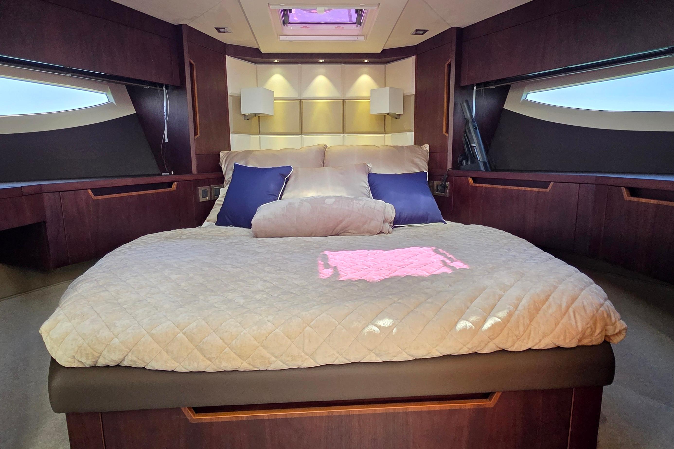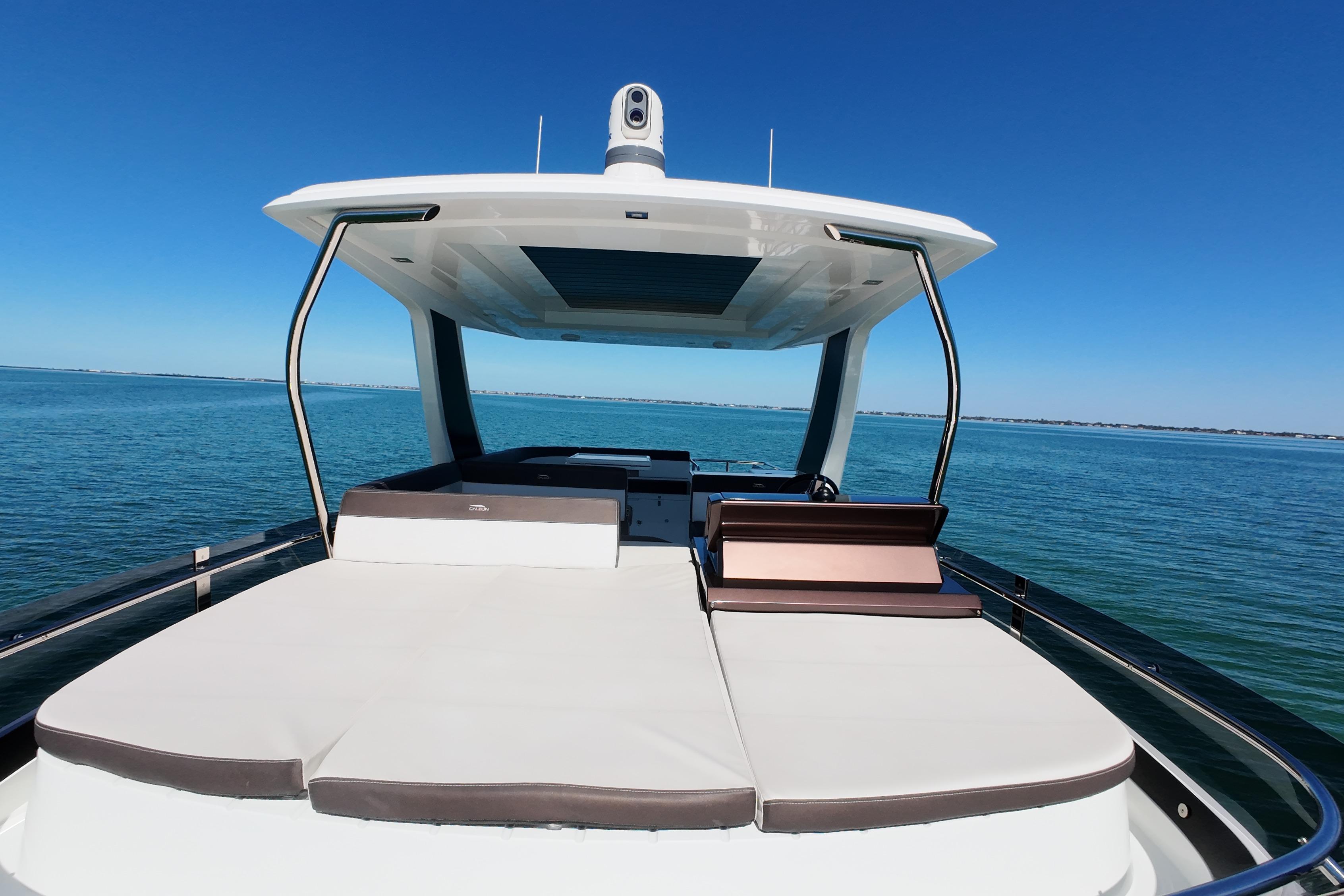 • Fresh Water Yacht for much of its life • Meticulously Maintained • Twin 670hp Volvo Penta D11 approximately 405 hrs • Seakeeper 6 Stabilizer • Bow and Stern Thrusters • Yacht Controller with Two Remotes • FLIR M64C Stabilized Thermal Night Vision Camera Linked to Raymarine Augmented Reality • Raymarine Twin 12” Axiom MFD’s Main Helm • Raymarine Twin 12” Axiom MFD’s on Flybridge • Raymarine Autopilot • Raymarine Satellite Weather • Raymarine VHF RAY91 AIS VHF Transmitting System • Raymarine Magnum 4kw 48”Open Array Radar • Raymarine Axiom+ 12” Chartplotter • Starlink For Maritime internet • Beach Mode Foldout Port and Starboard Balconies • Hydraulic Swim Platform • Cockpit Settee on 360 Degree Swivel • Aft Facing Camera • Two Engine Room Cameras • Wine Chiller in Salon • 43" LED TV on Televator in Salon • Electric Grill on Flybridge • Electric Grill Behind Rotating Settee • Hydraulic Tender Garage Hatch • Dometic Fidge/Freezer in Tender Garage • Kenyan 4 Burner Cooktop in Galley • Dual Refrigerators in Galley • 32" LED TV in Master • Washer / Dryer Combo in Master • Cablemaster • Captain's fridge drawer on Flybridge • Wet Bar and Grill on Flybridge • Ice Maker on Flybridge • Blue Accent and Underwater LED Lighting • Canvas Flybridge Seating Covers • Canvas Flybridge Helm Covers • Full Exterior Sunshades Front and Side Windows