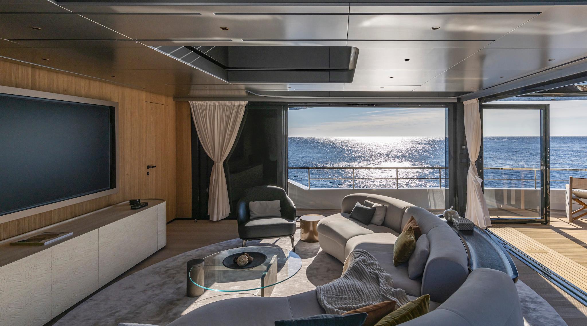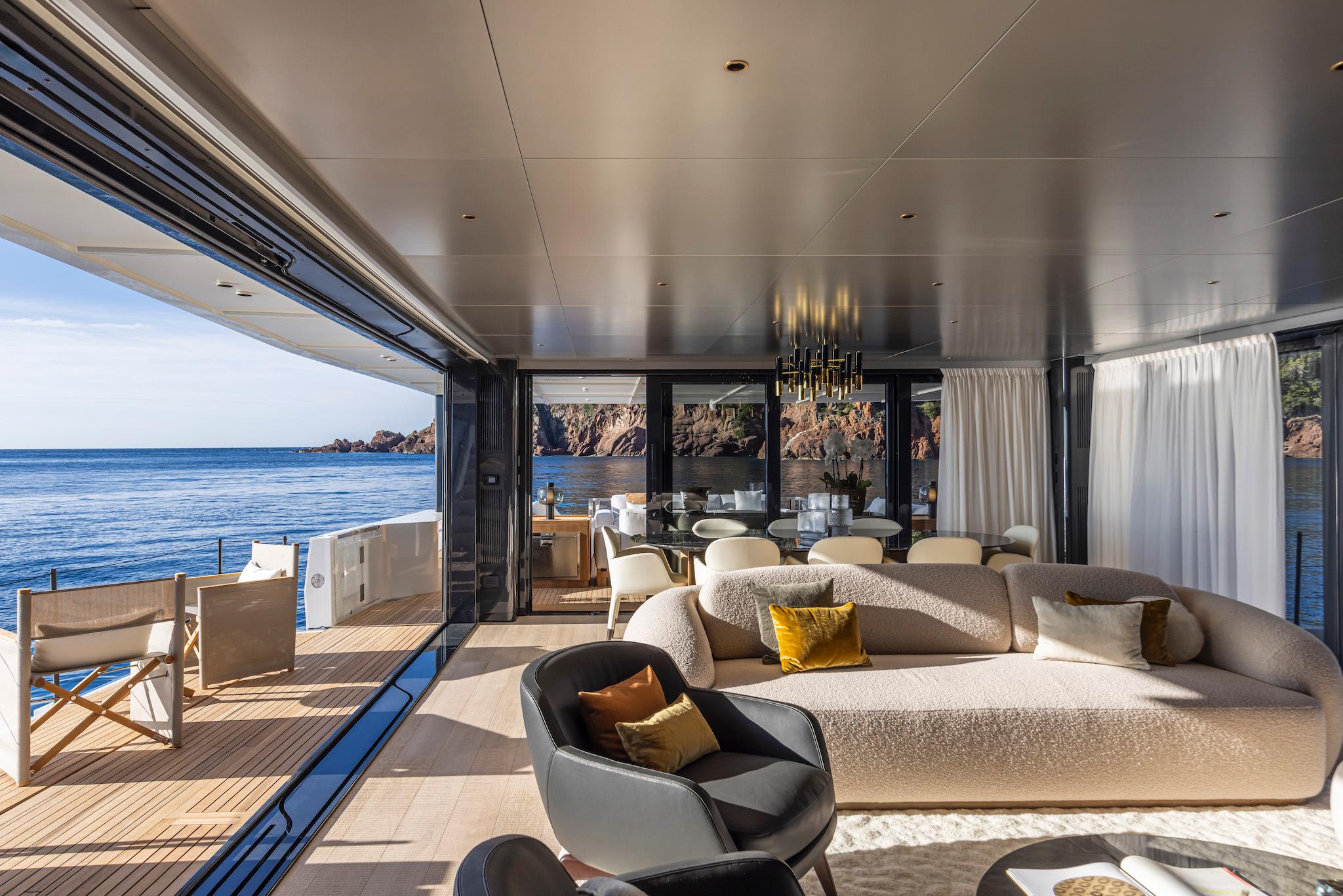 MAIN DECK SALON - FULLY RETRACTABLE SLIDING GLAZING WINDOWS ON BOTH SIDES