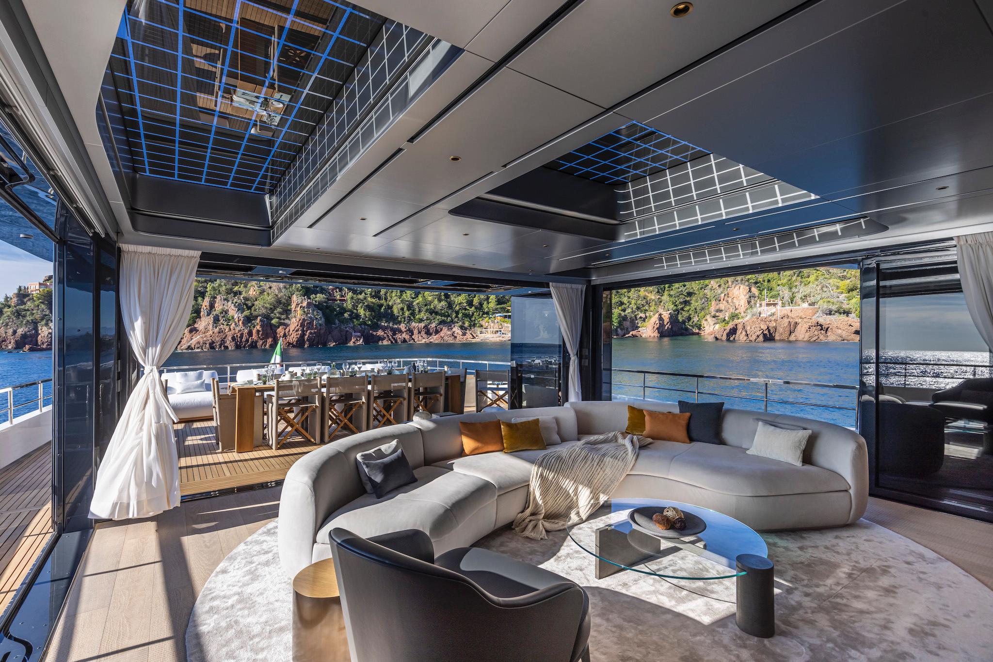 UPPERDECK SALON - FULLY RETRACTABLE SLIDING GLAZING WINDOWS ON BOTH SIDES