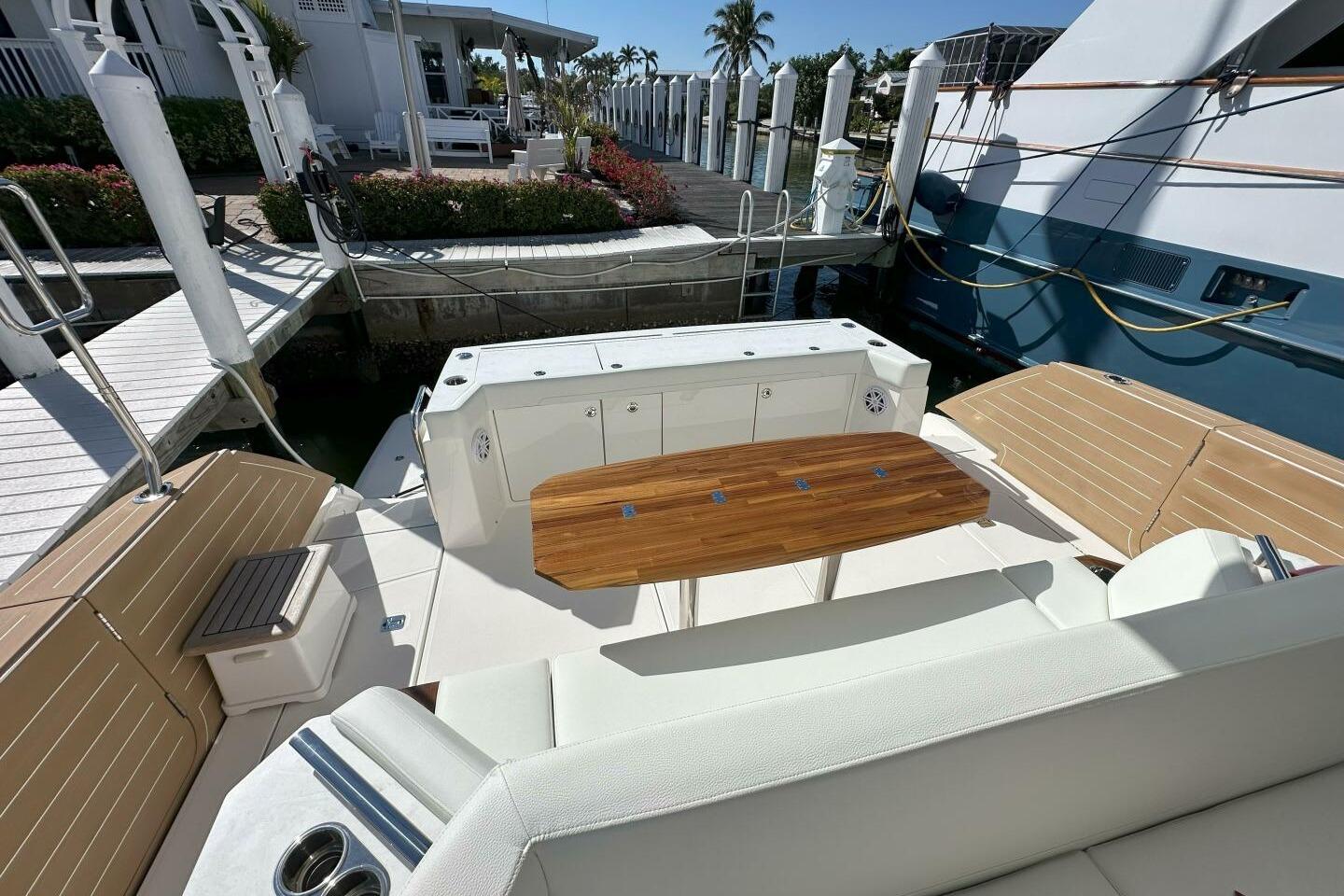 - Starboard side L-Lounge with insulated cooler