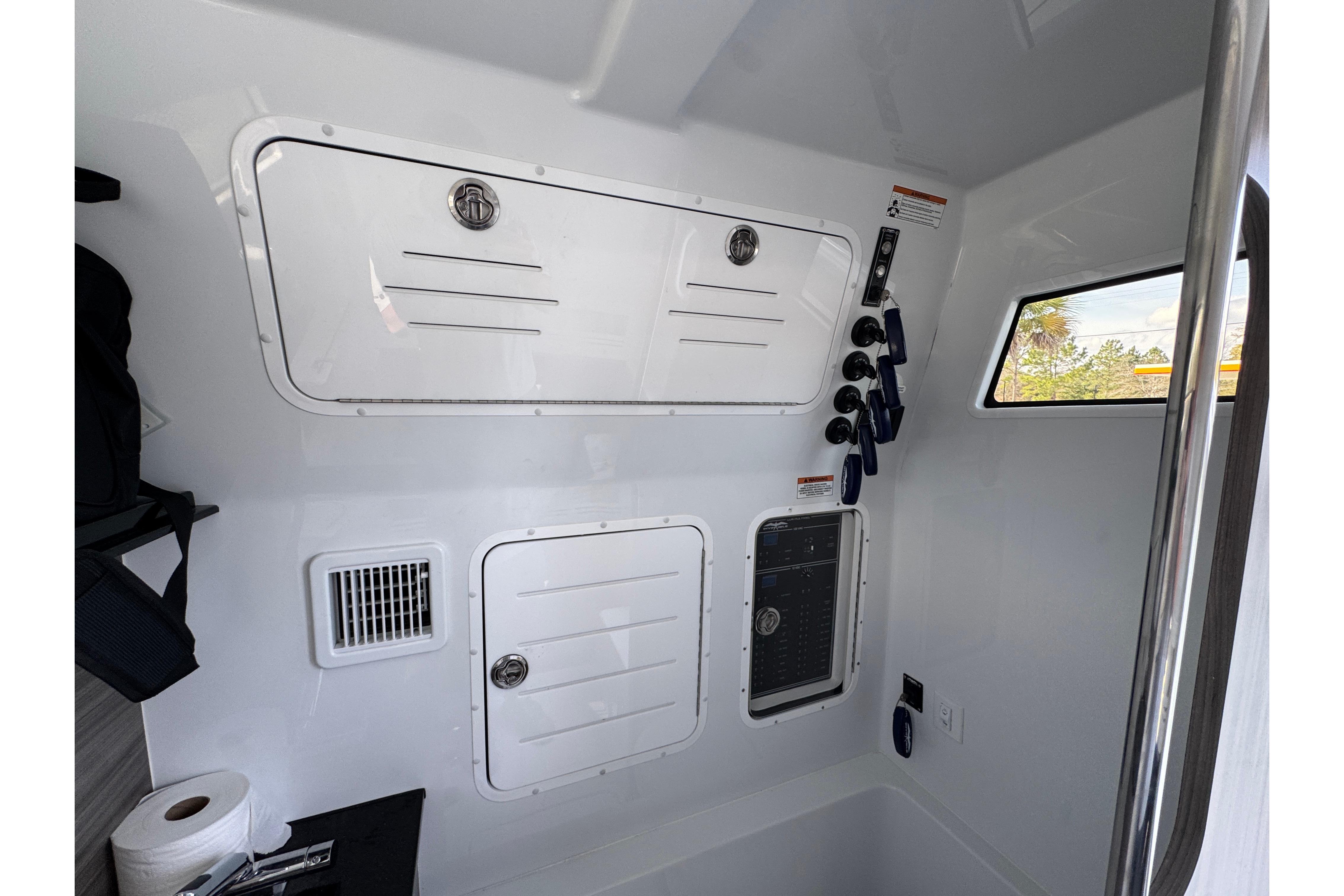 - Large Enclosed Cabin w/ Head, Sink, Rod Storage, Bed, and Air Conditioning