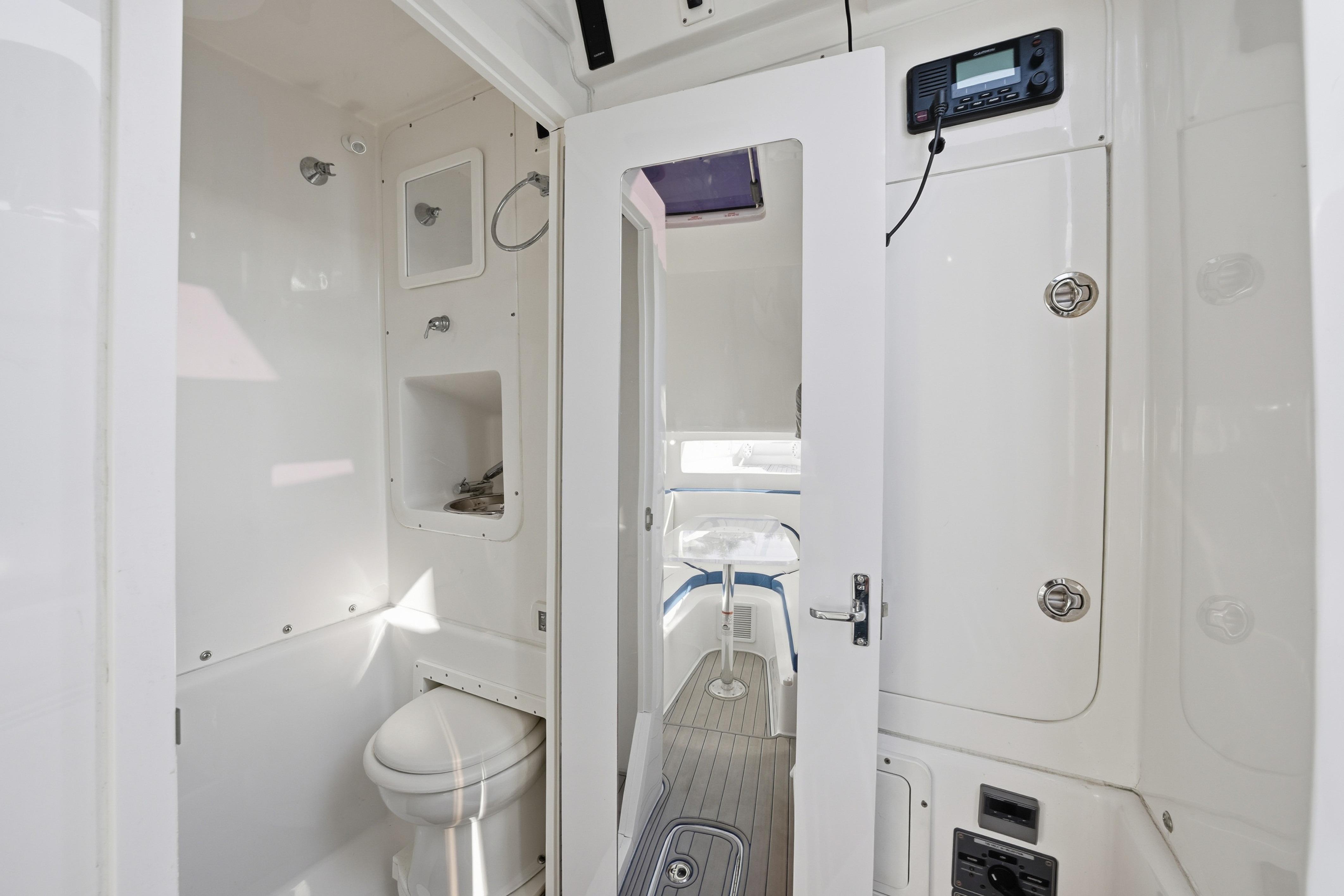 Electronics feature three NEW Garmin 22” 8600 Series displays with GPS, radar, autopilot, chartplotter, VesselView integration, night vision capability, and more. Additional equipment includes bow thruster, remote windlass, polished stainless anchor, full windshield to hardtop.