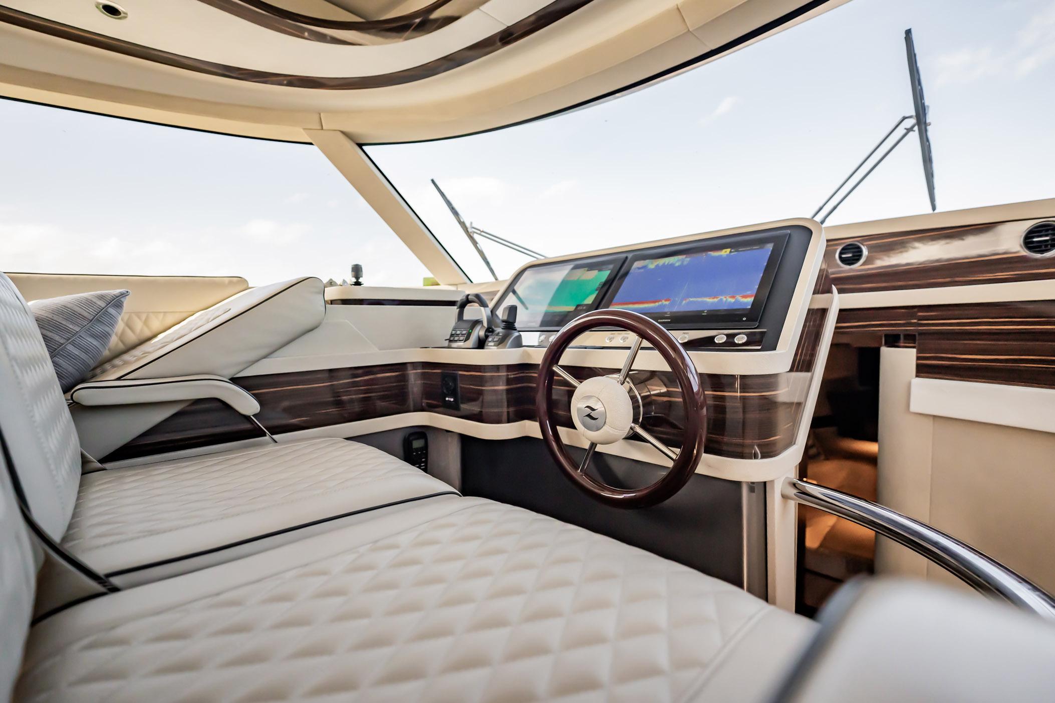 Delivered and turning heads for the first time on US shores in the Port of Palm Beach on New Years Eve, this highly-optioned 2025 version of the Z5 was spec'd by her buyer for beauty, efficiency and speed. She excels at all three. And she is now available for immediate purchase. Adorned in handsome Silver Tempest Metallic Awlgrip, and one of only two US Z5's fitted with triple 480hp Volvo D6 engines mated to IPS 650 pod drives, she has handled the Palm Beach shores and Nantucket Sound with equal grace and capability. Her owner's yachting needs have changed and she is ready for her new home.