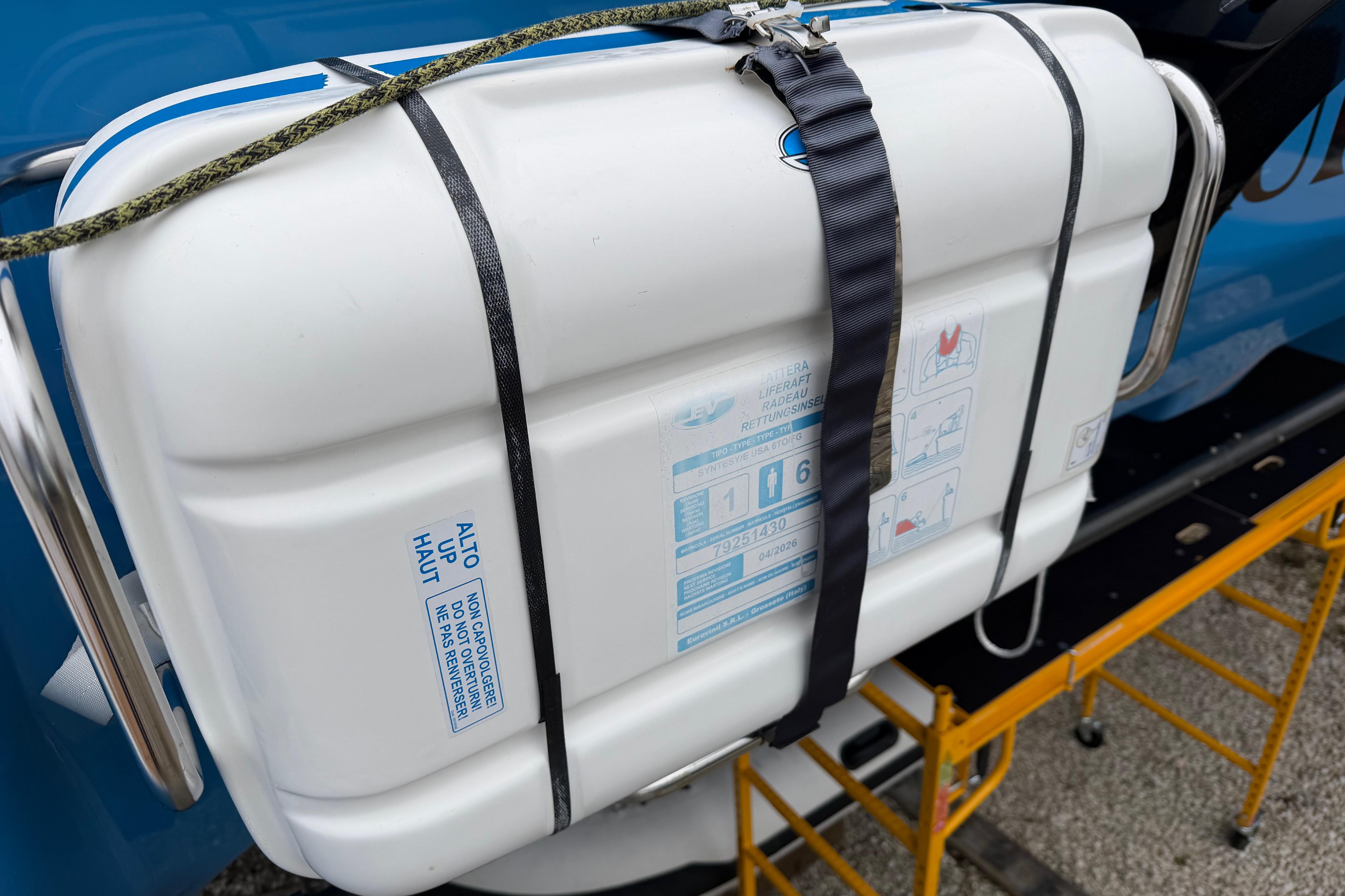- EV 6-man Life Raft mounted on transom (Inspection due 04/26)