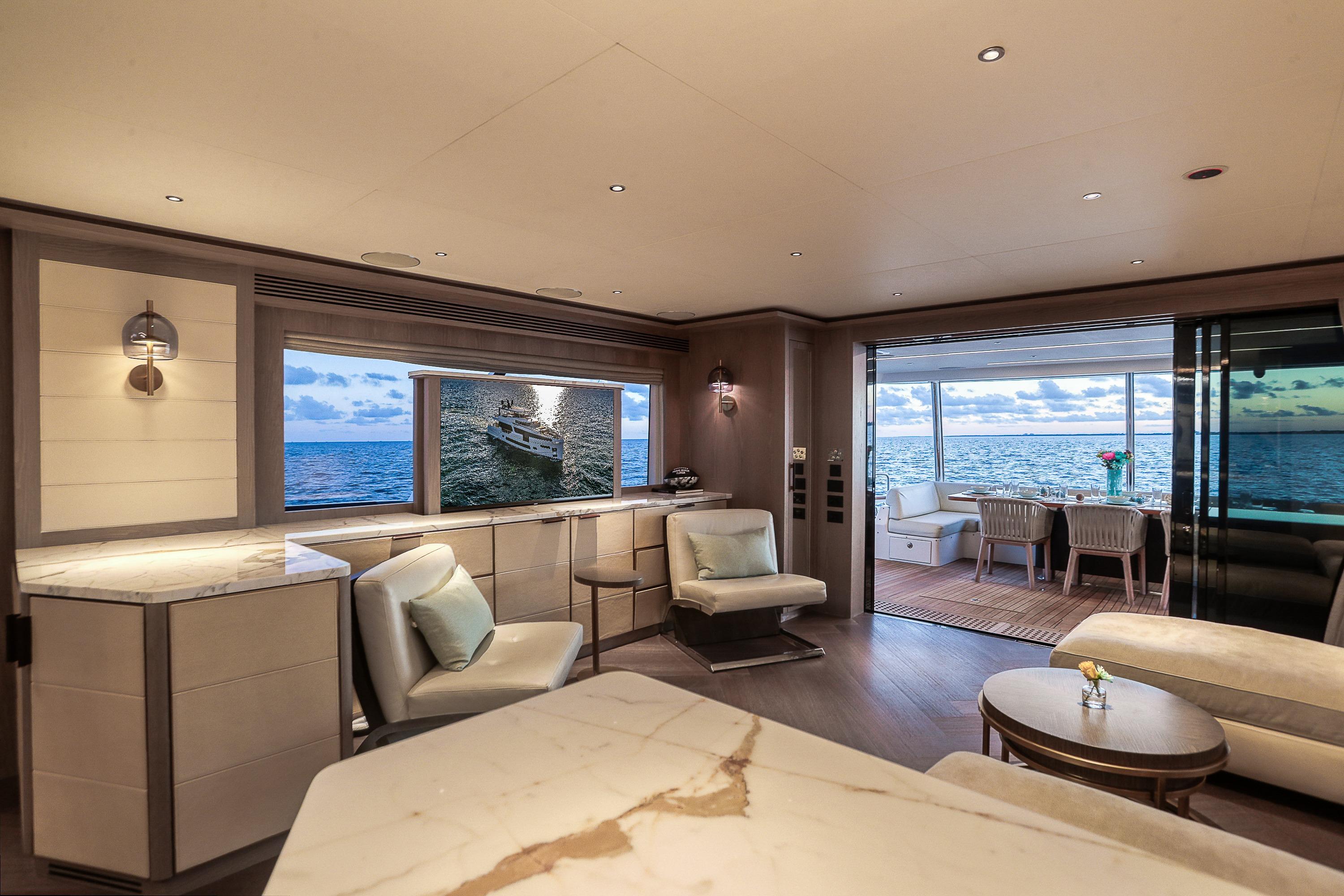 - Flybridge Bar/Grill/YETI Cooler Storage/Ice Maker/Refrigerator/TV