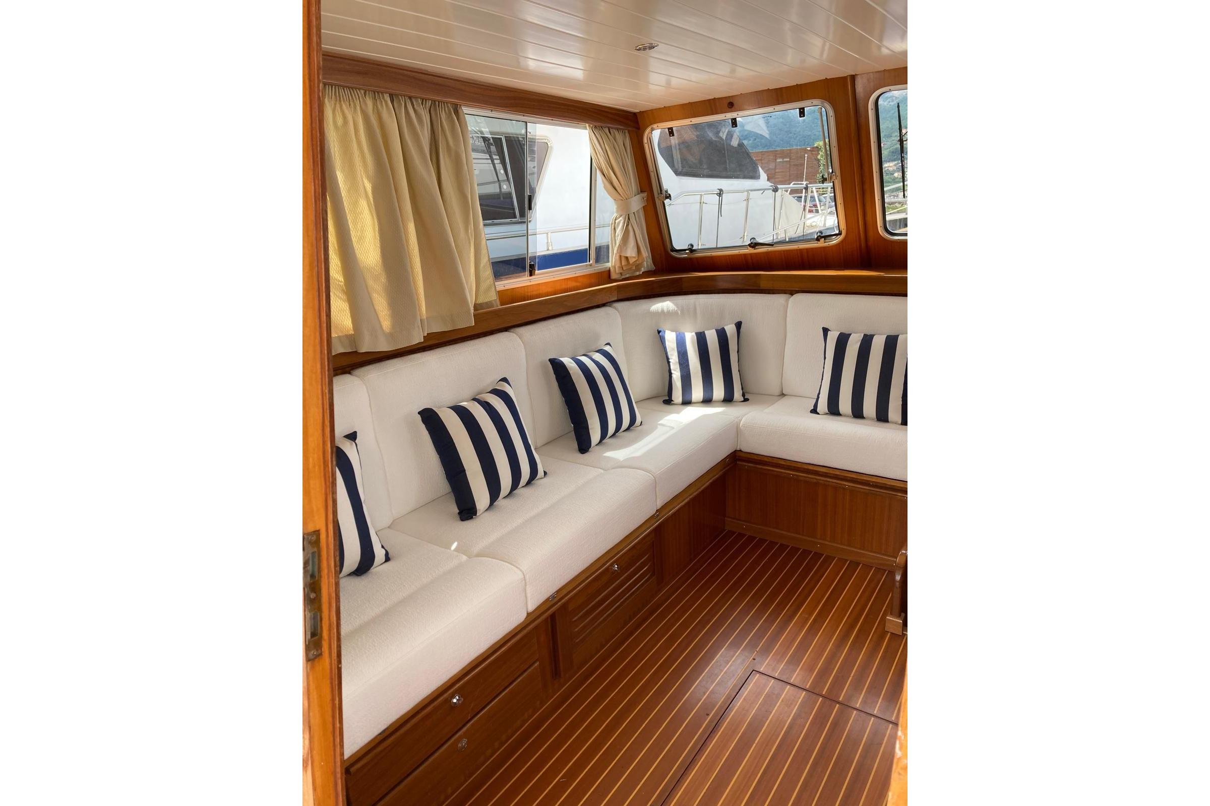 Ottima vivibilità sia in navigazione sia in rada, arricchita da tappezzerie interne ed esterne completamente nuove (2024).